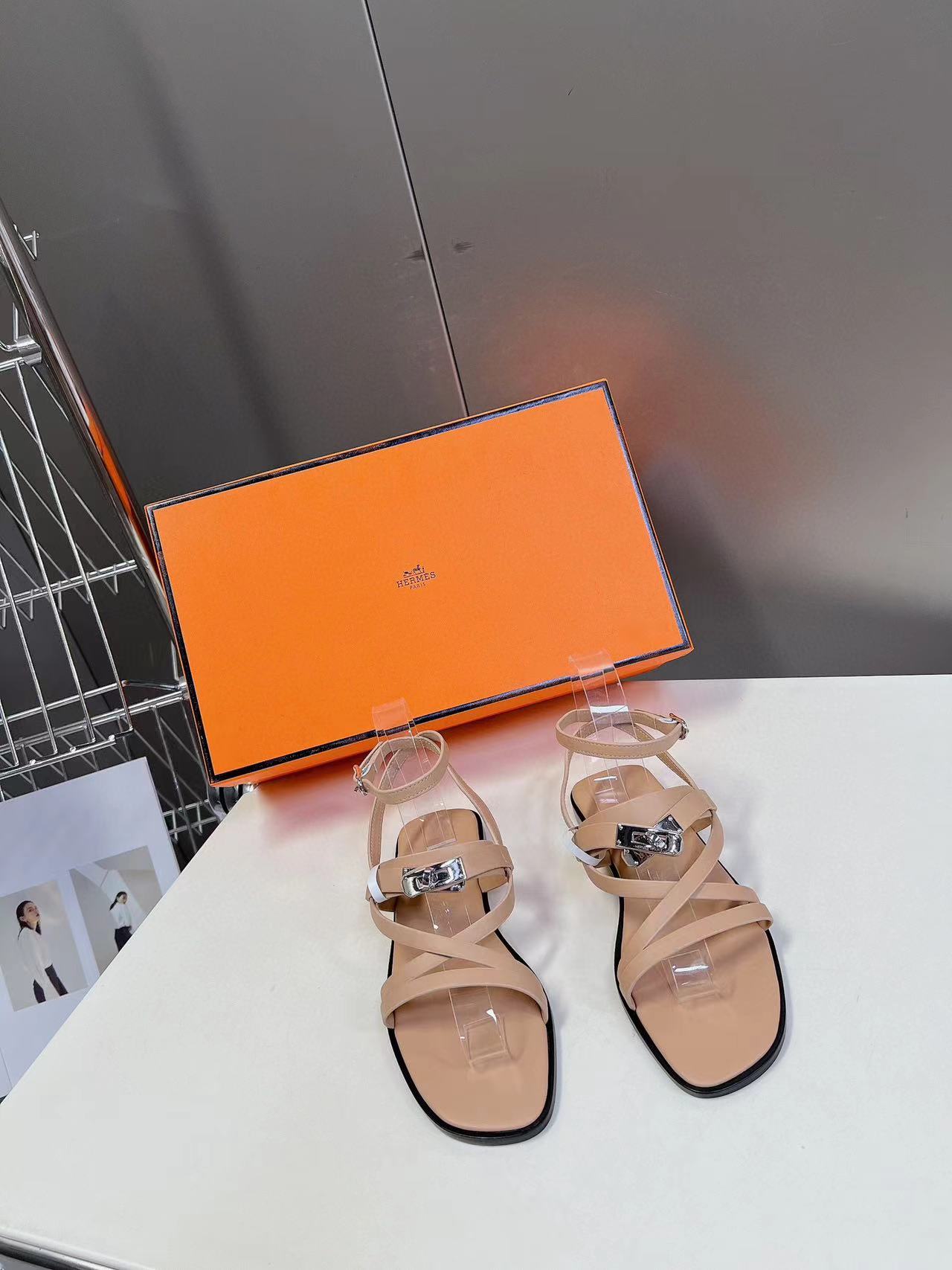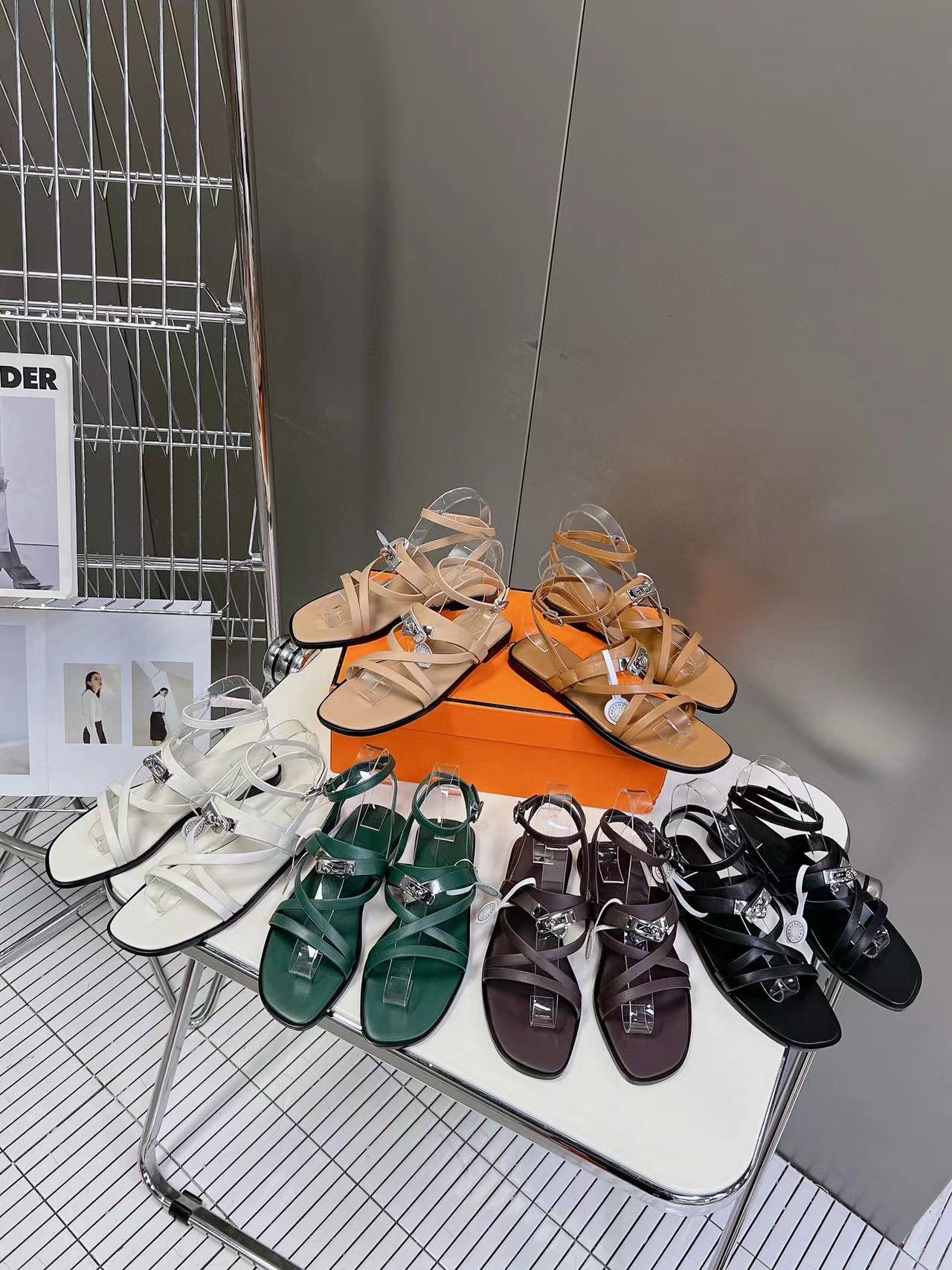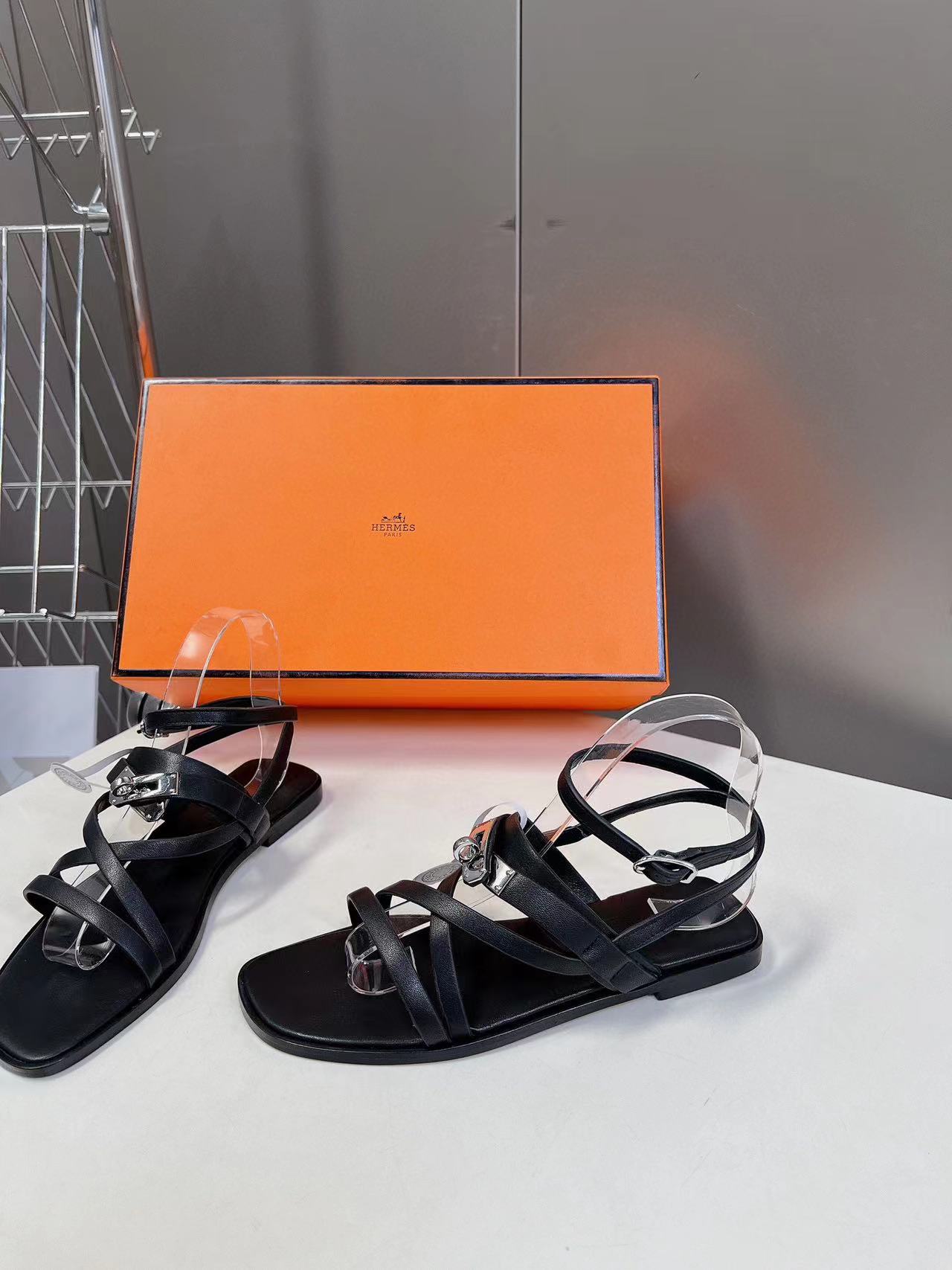 HERME5 高品質Hバックルシープスキンサンダル【50%割引+送料無料】