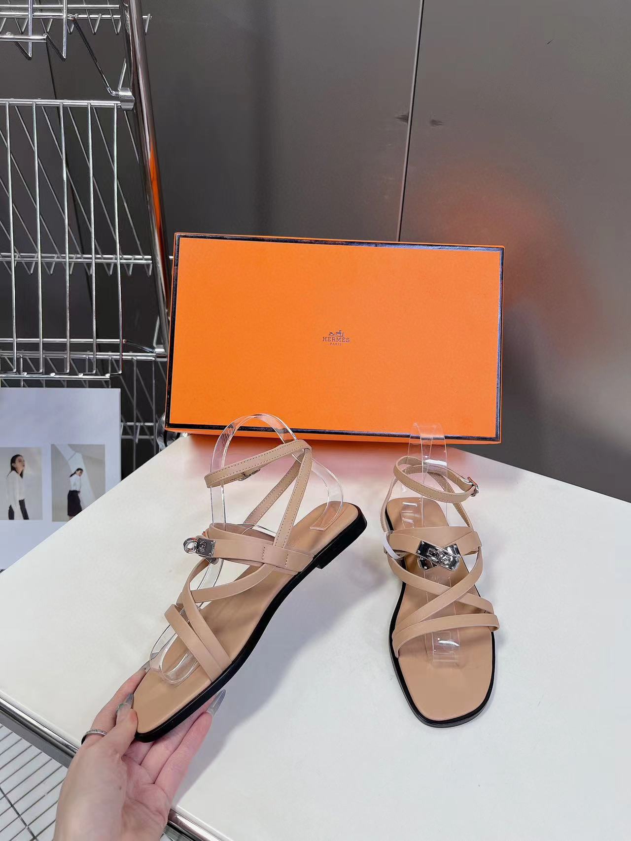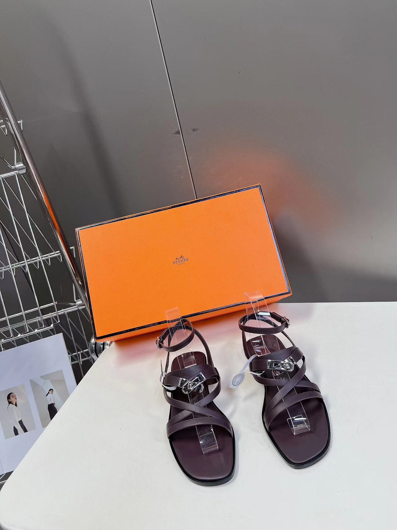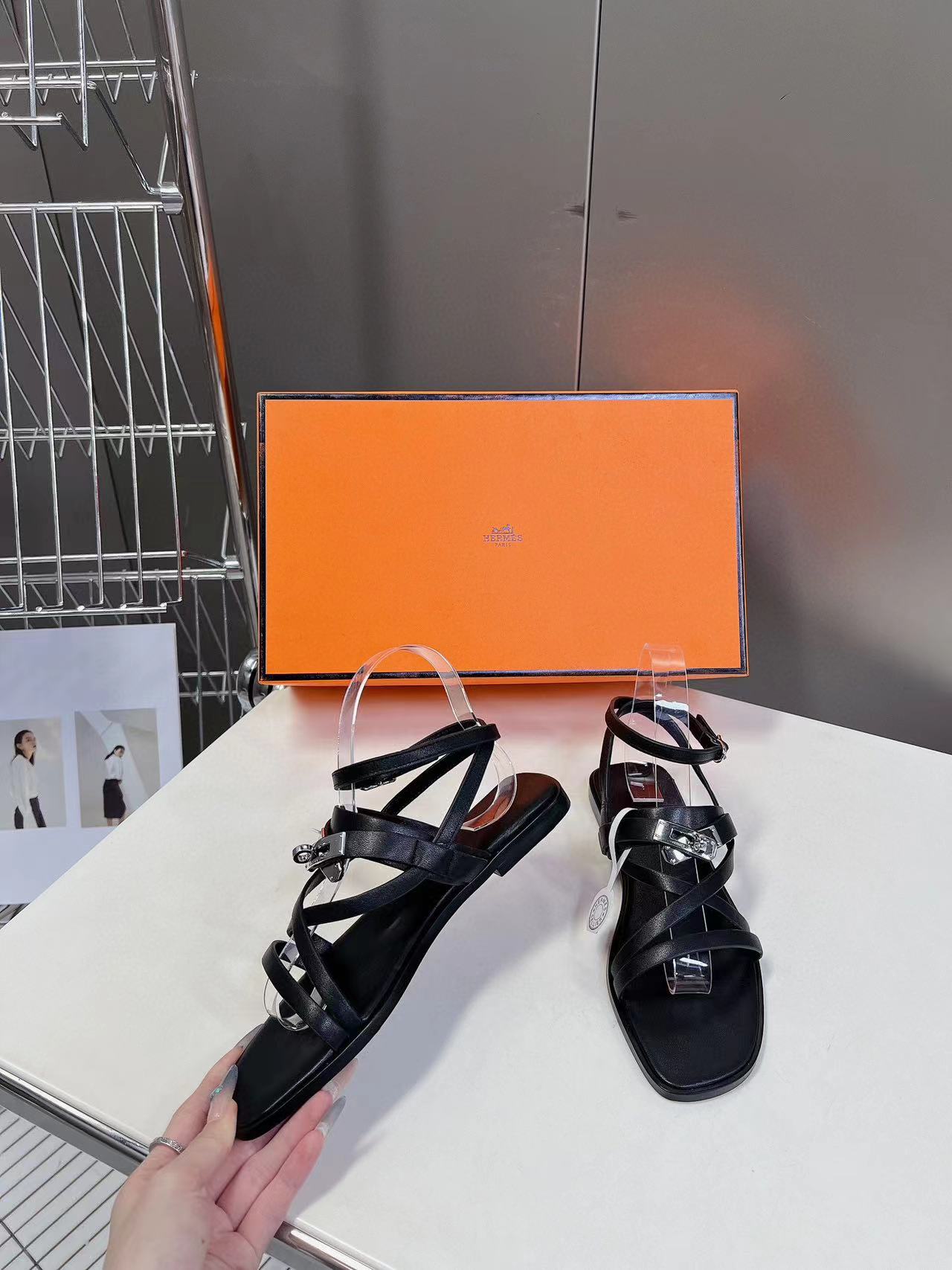 HERME5 高品質Hバックルシープスキンサンダル【50%割引+送料無料】