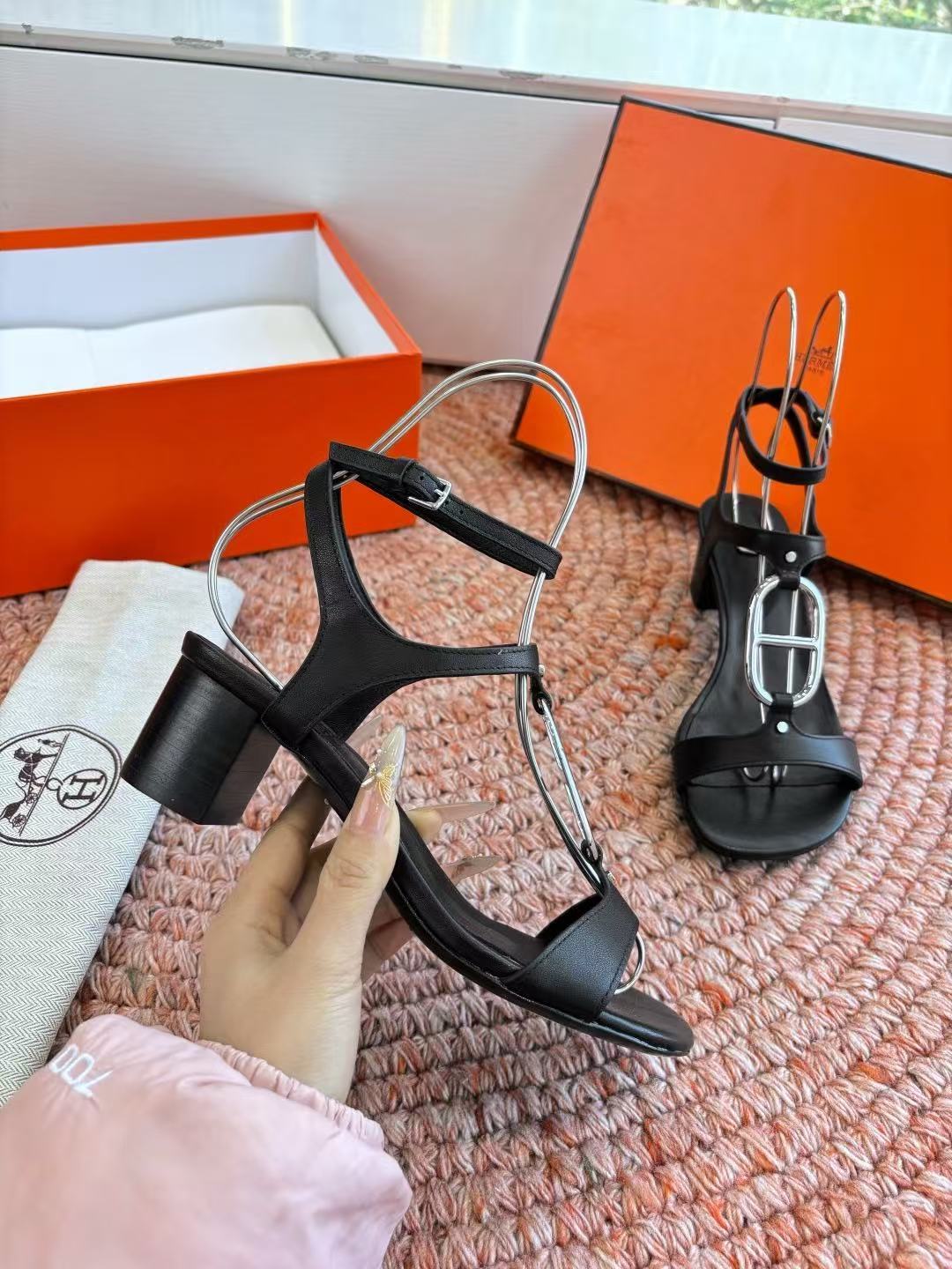 HERME5高品質kellyチャンキーヒールサンダル【50%割引+送料無料】