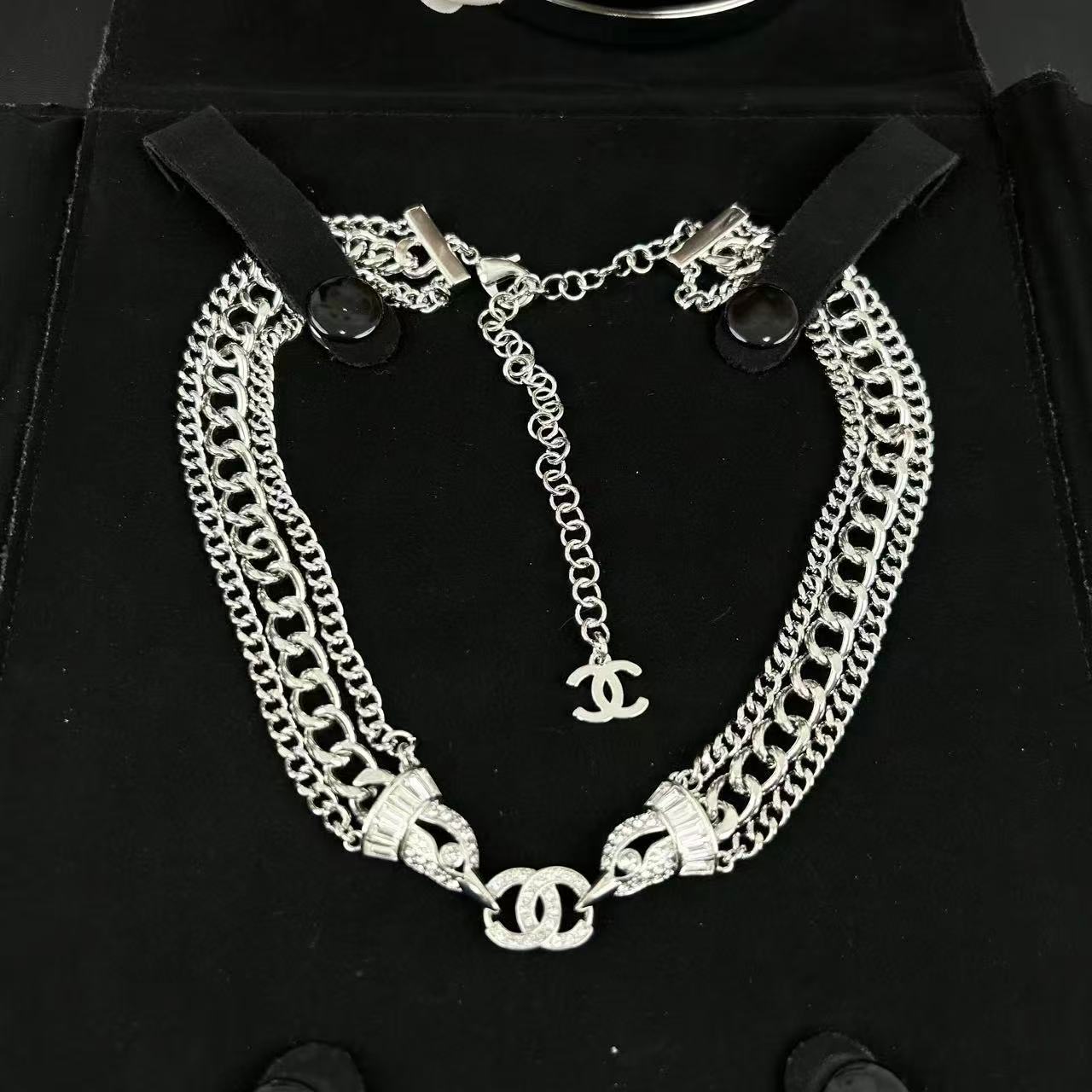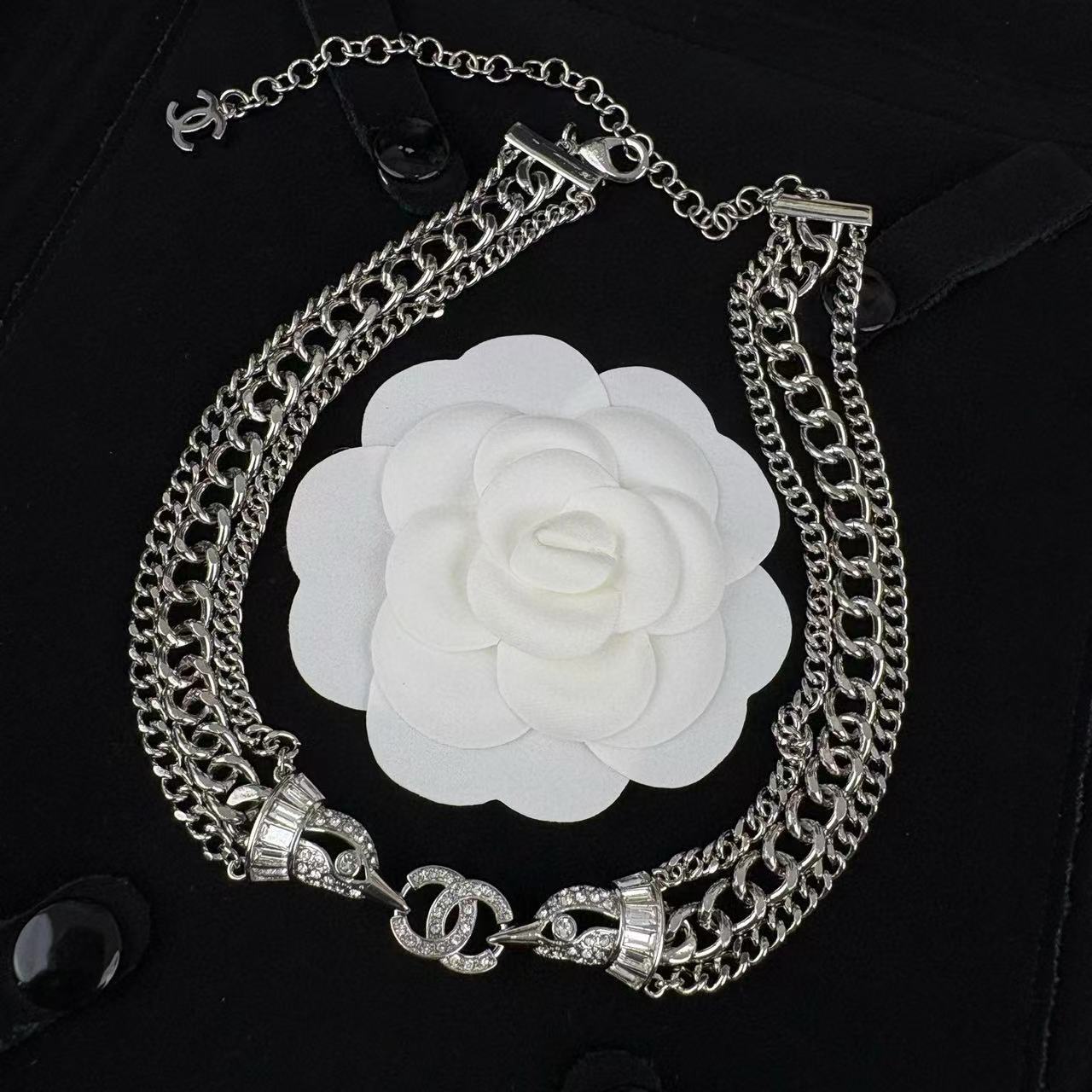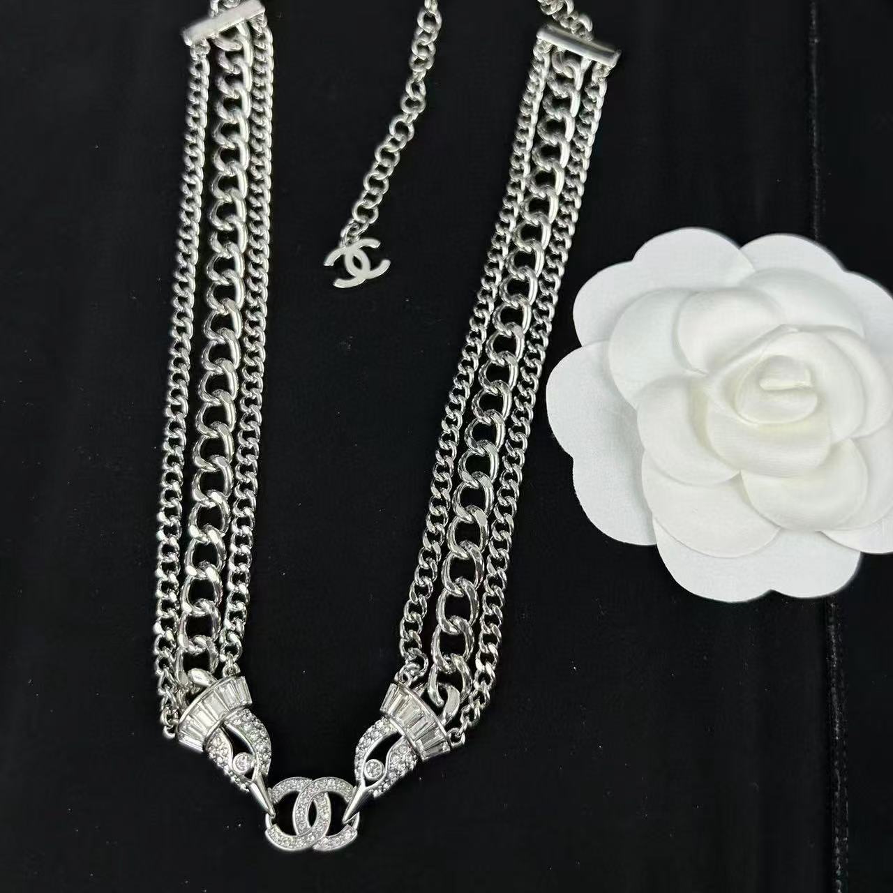 CHANE1 ダブルC フルダイヤモンド 3層ネックレス【 50%割引+送料無料】