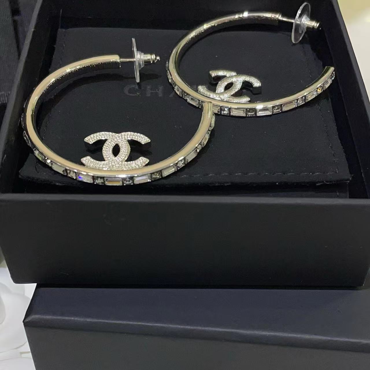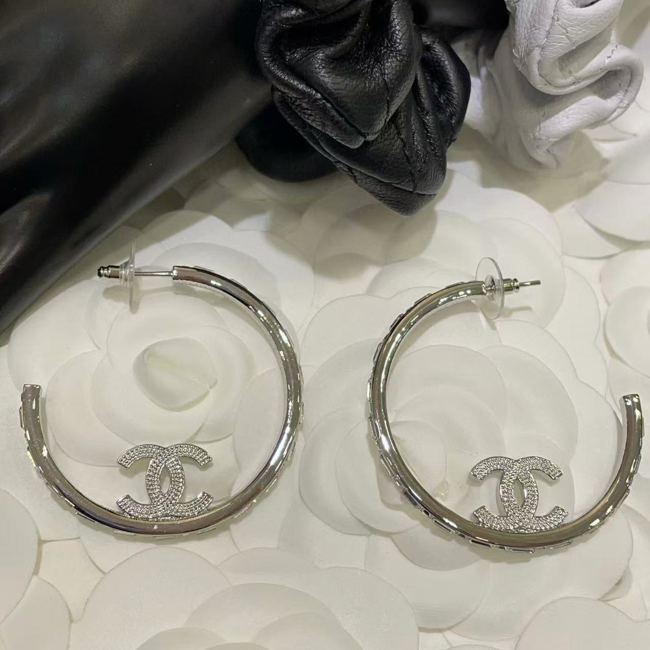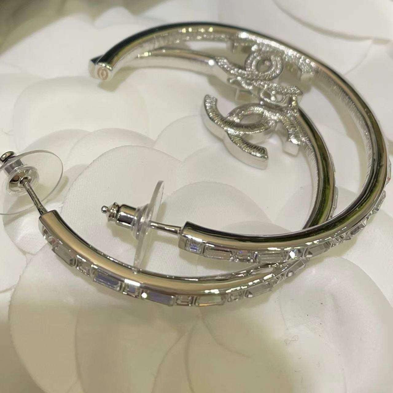 CHANE1 フープ ホロー ラインストーン ダブルC イヤリング【 50%割引+送料無料】