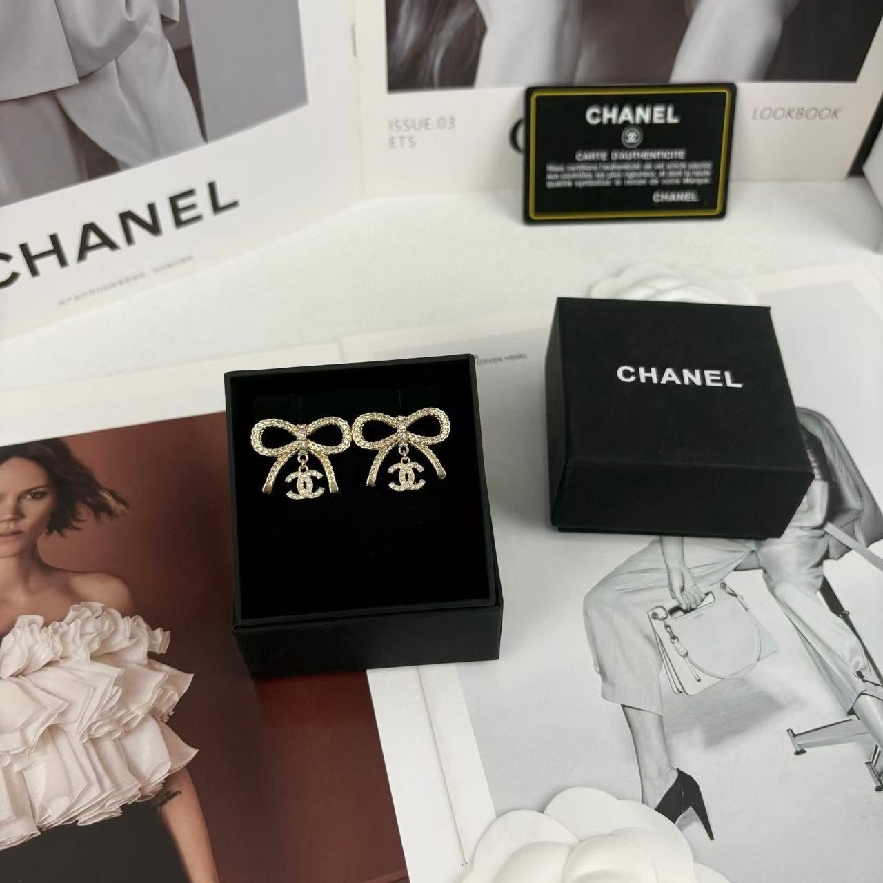 CHANE1 ボウ ライトゴールド ダブル C フル ダイヤモンド ピアス【50%割引+送料無料】