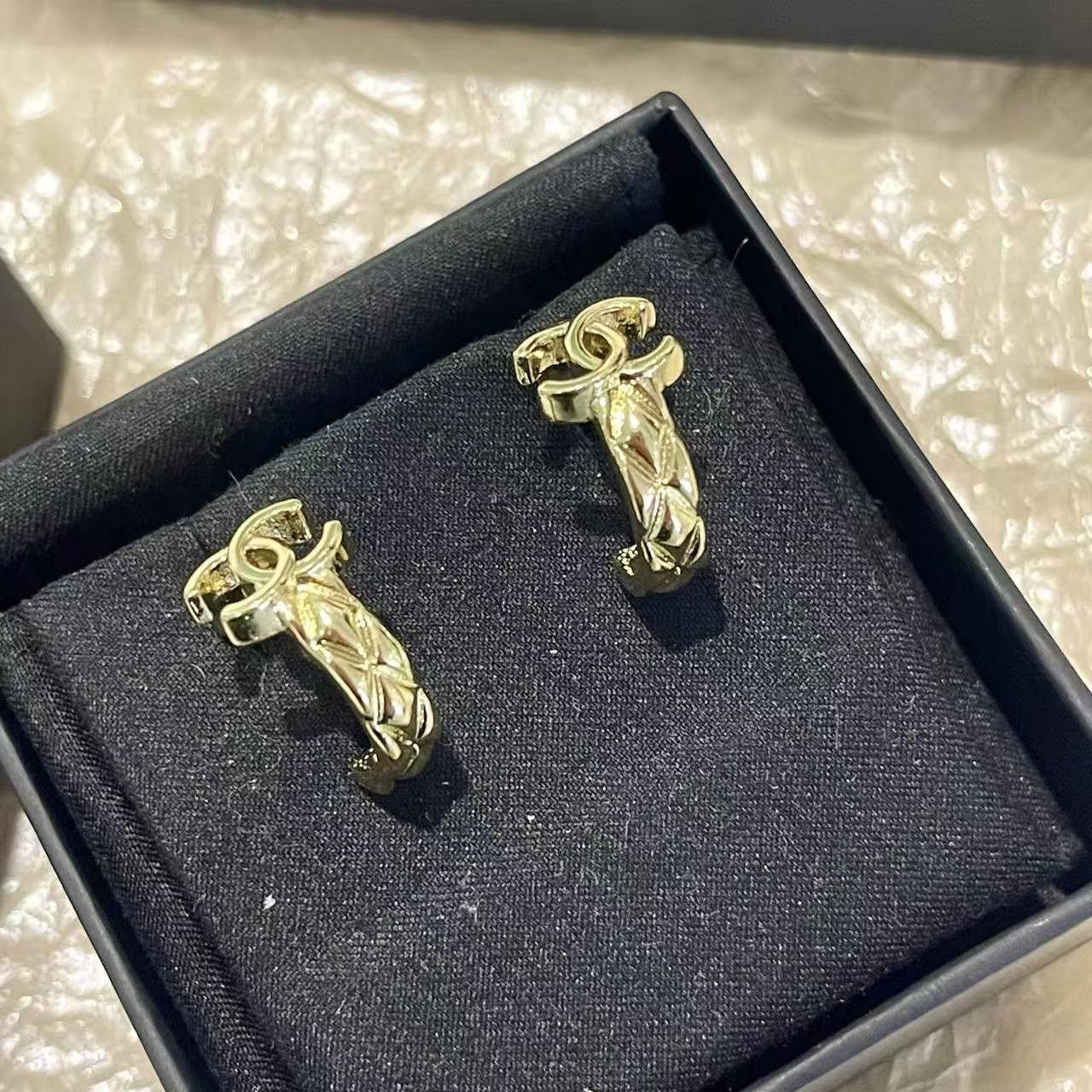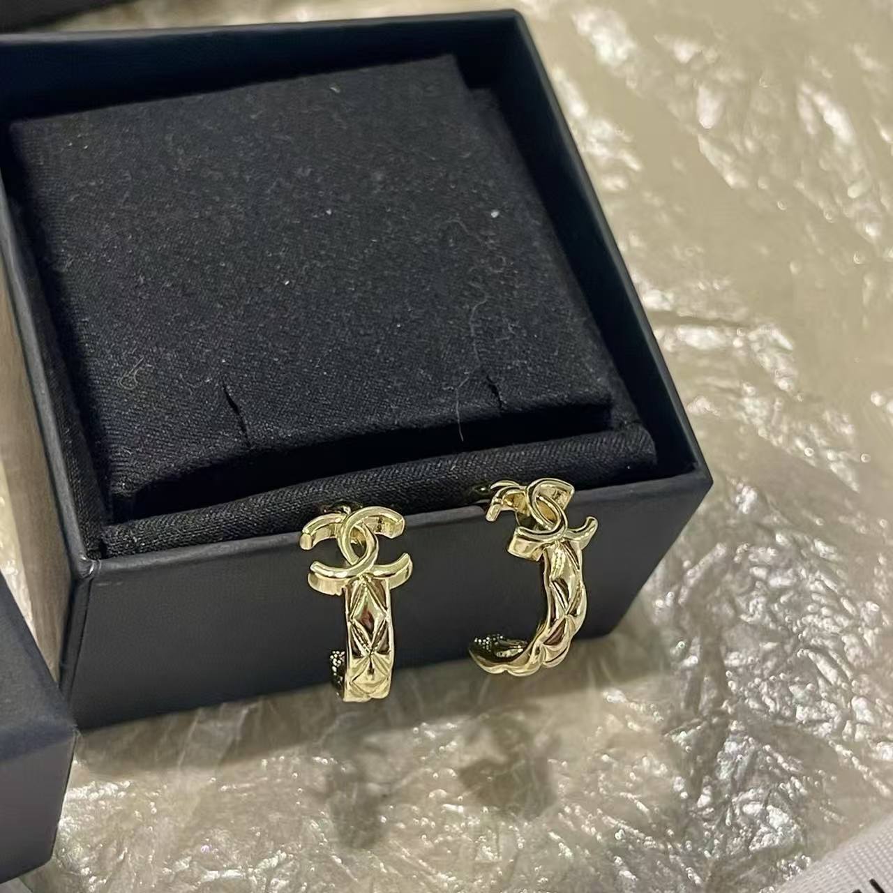 CHANE1 ダブルCチェック柄イヤリング【50%割引+送料無料】