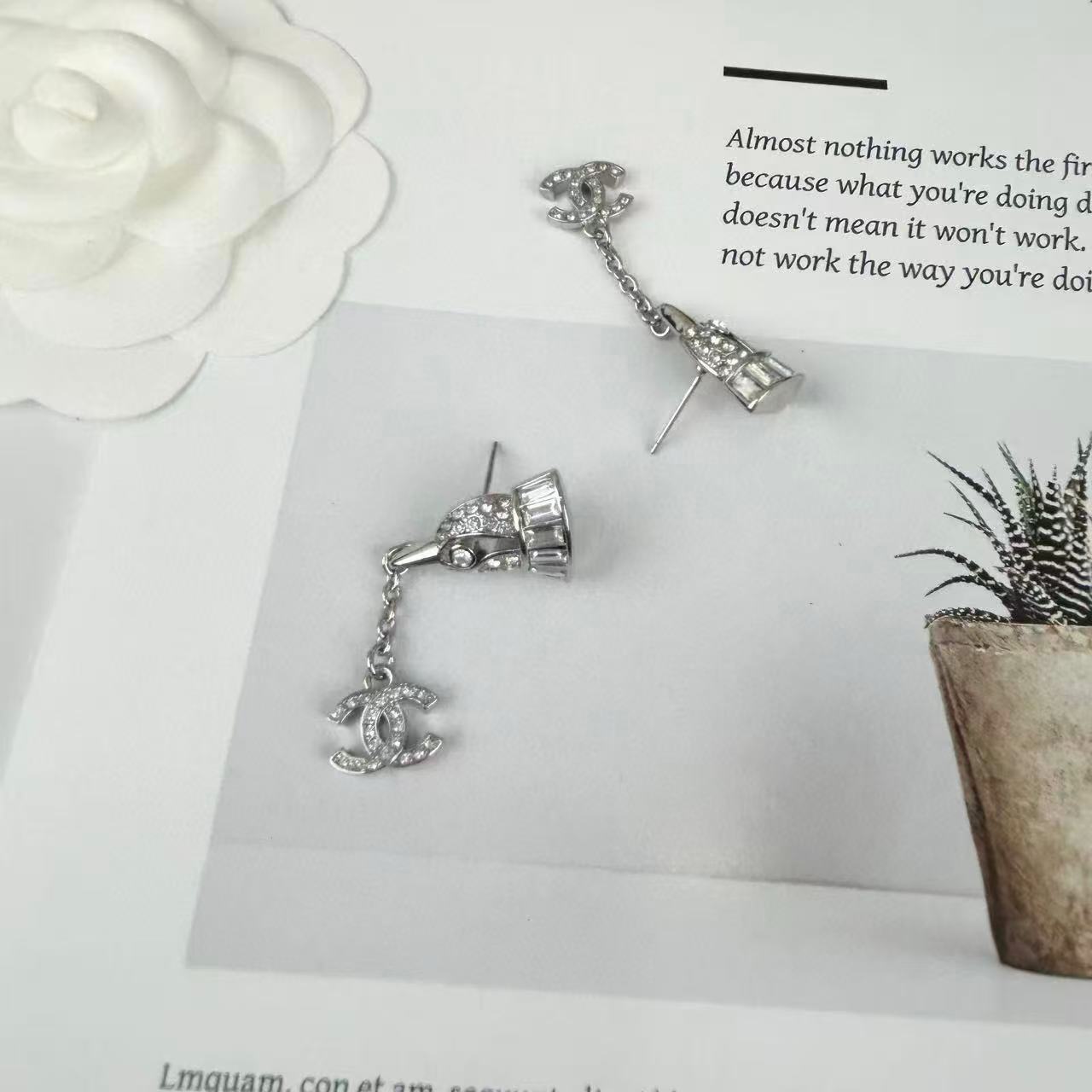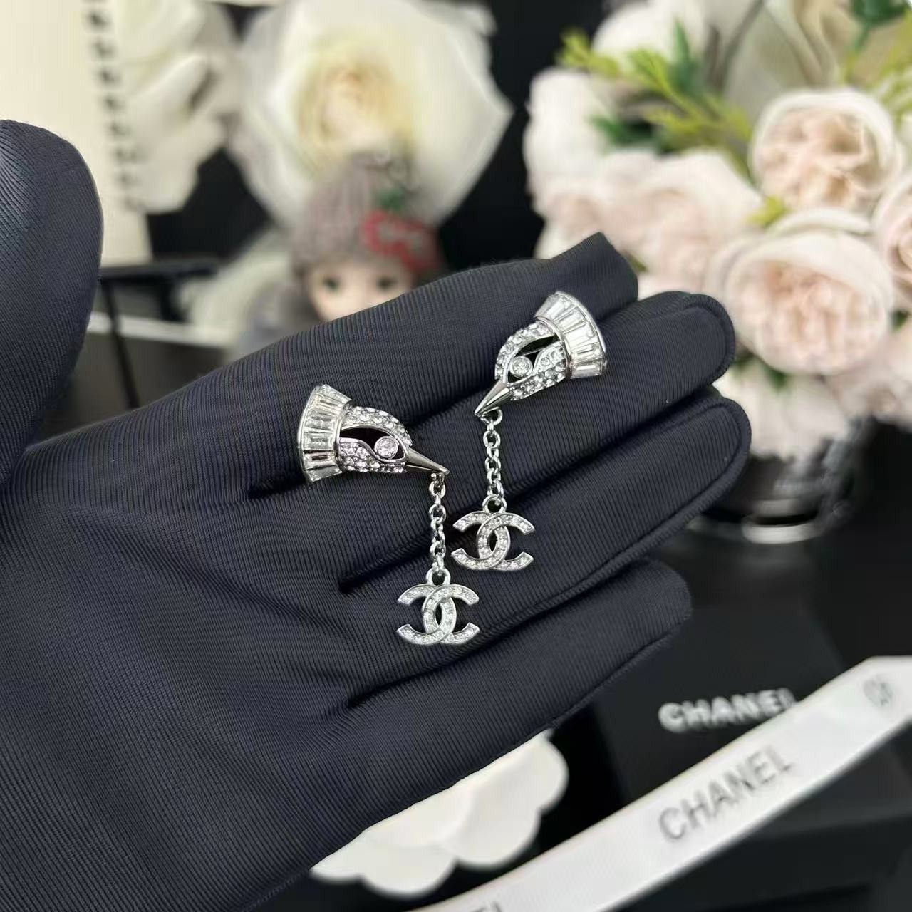 CHANE1 フルダイヤモンド ダブルC バードイヤリング【 50%割引+送料無料】