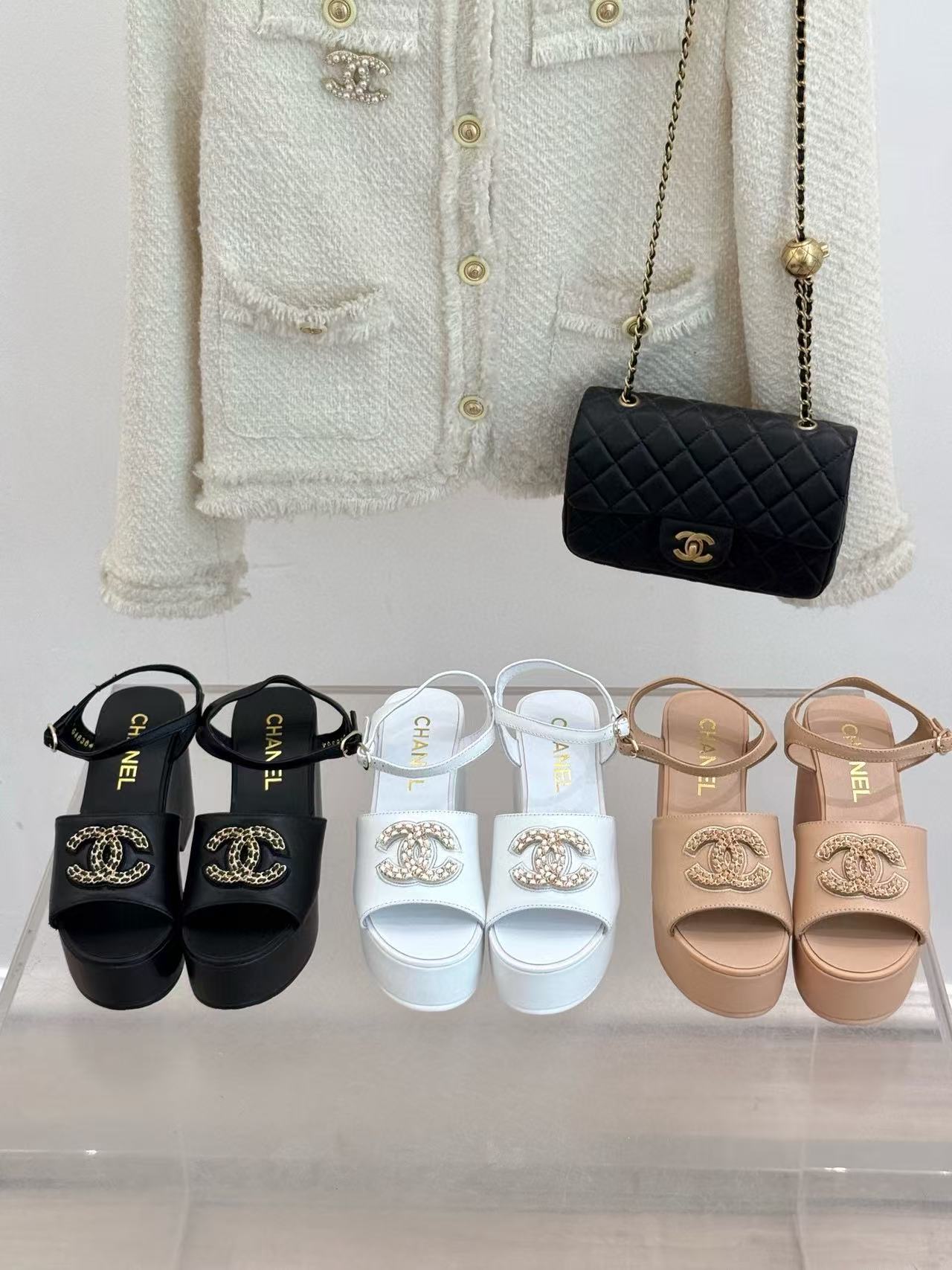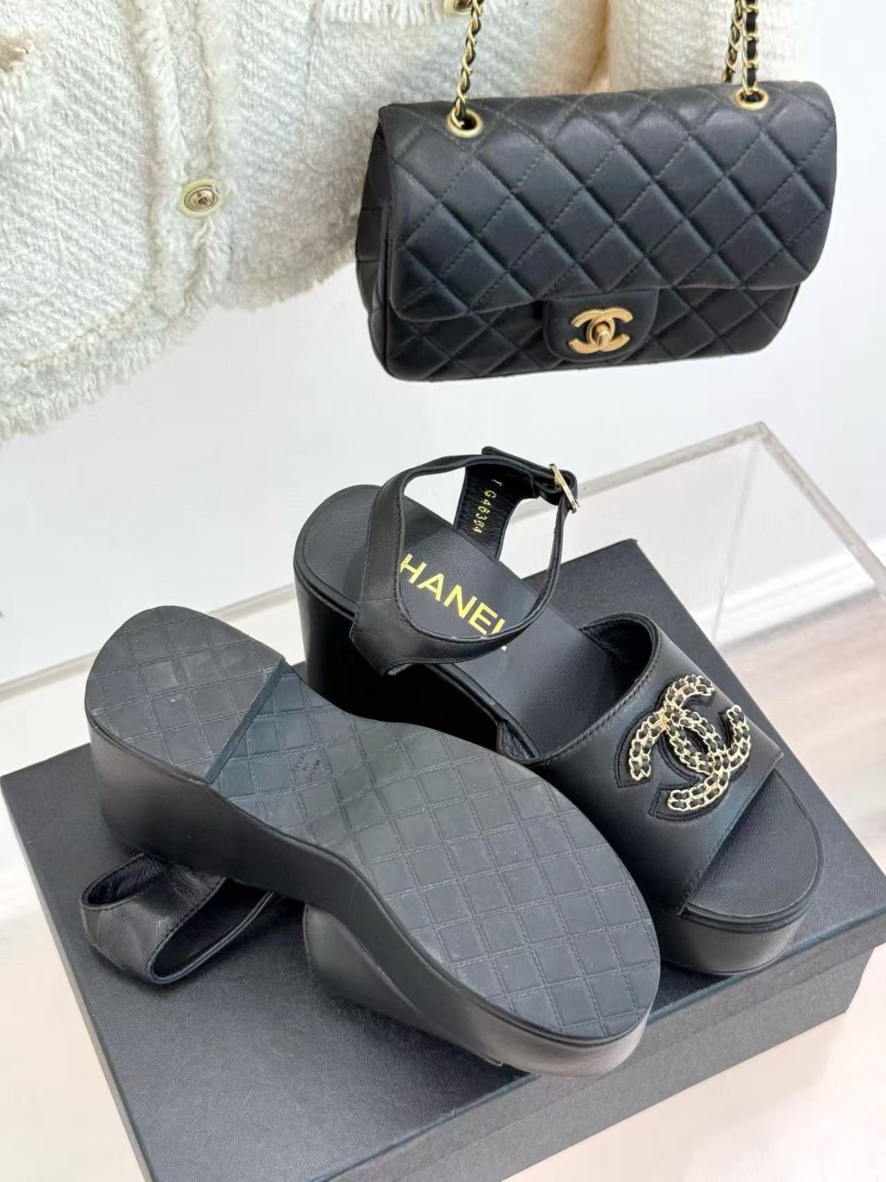 CHANE1 高品質ダブルCチェーン厚底サンダル【50%割引+送料無料】