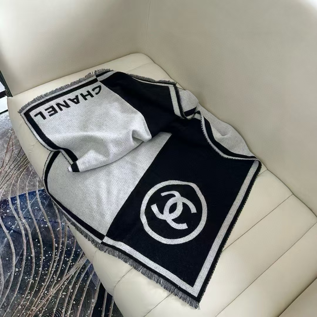 CHANE1 高品質黒と白の配色カシミヤ スカーフ【50%割引+送料無料】