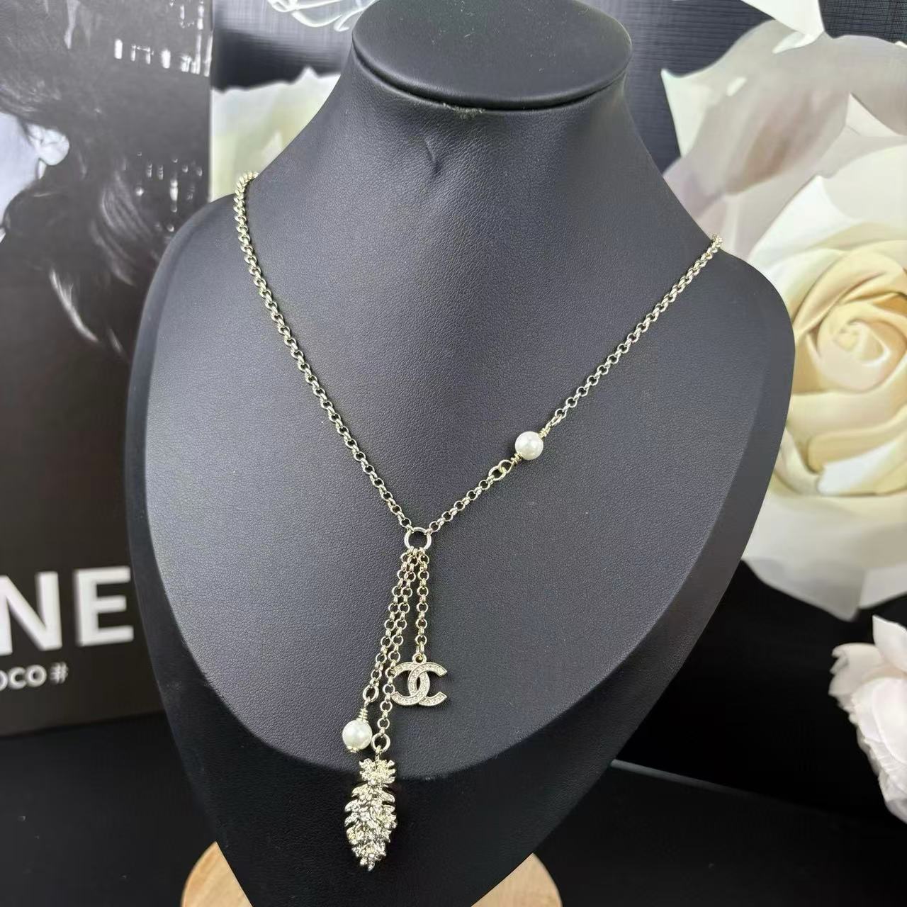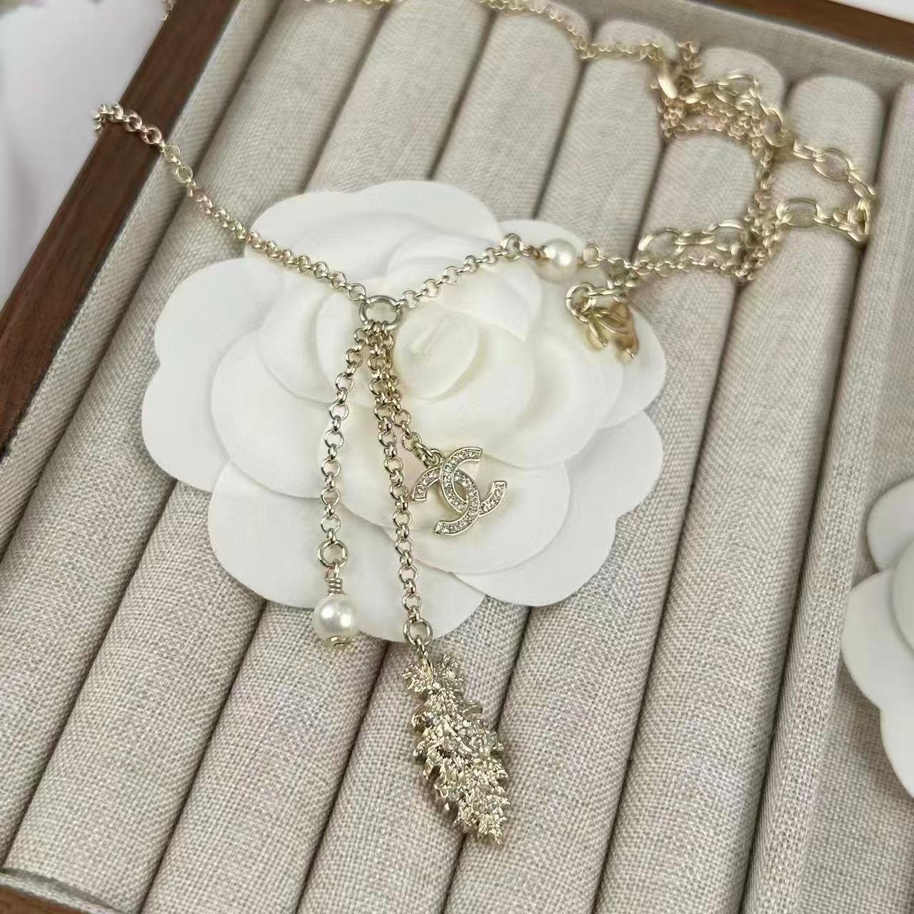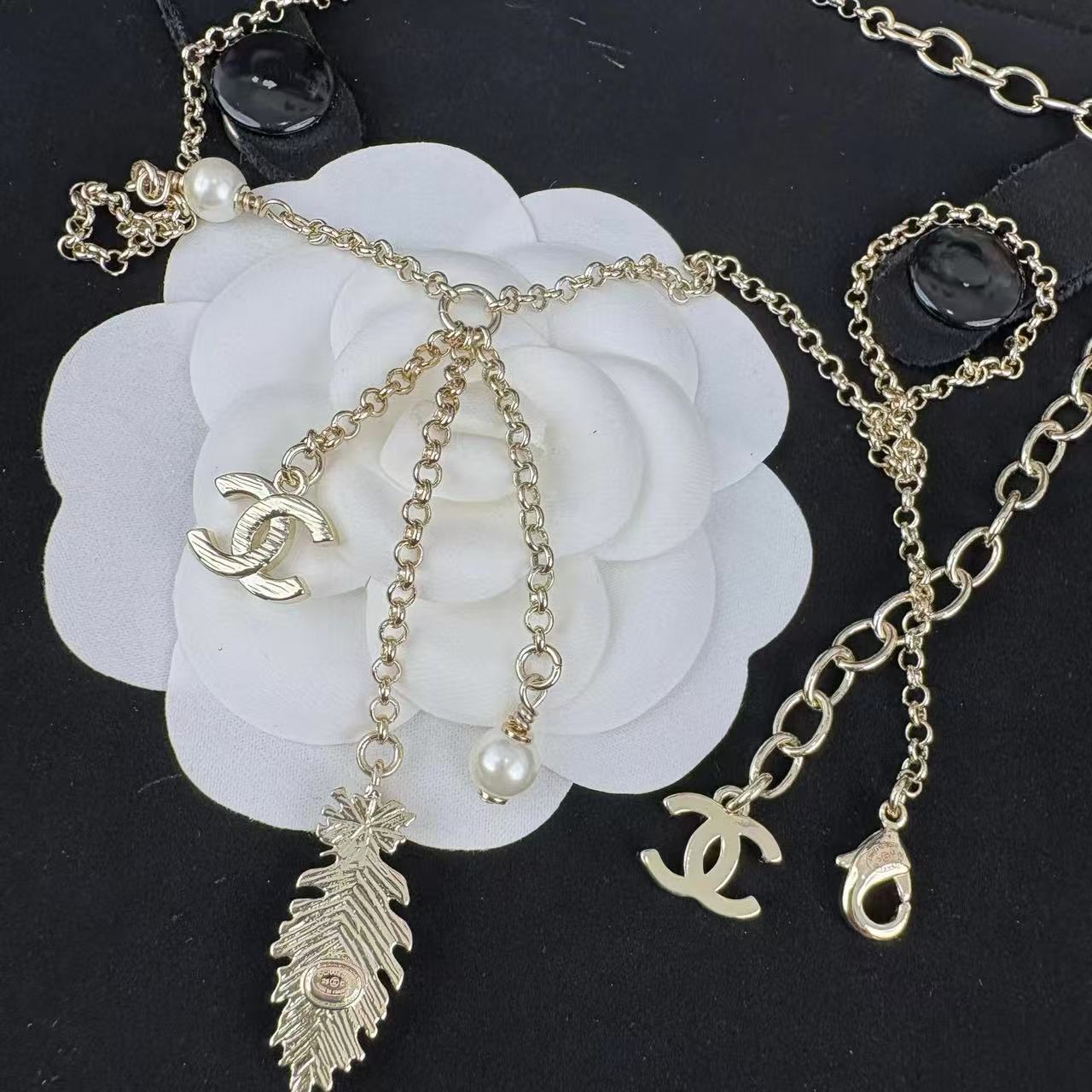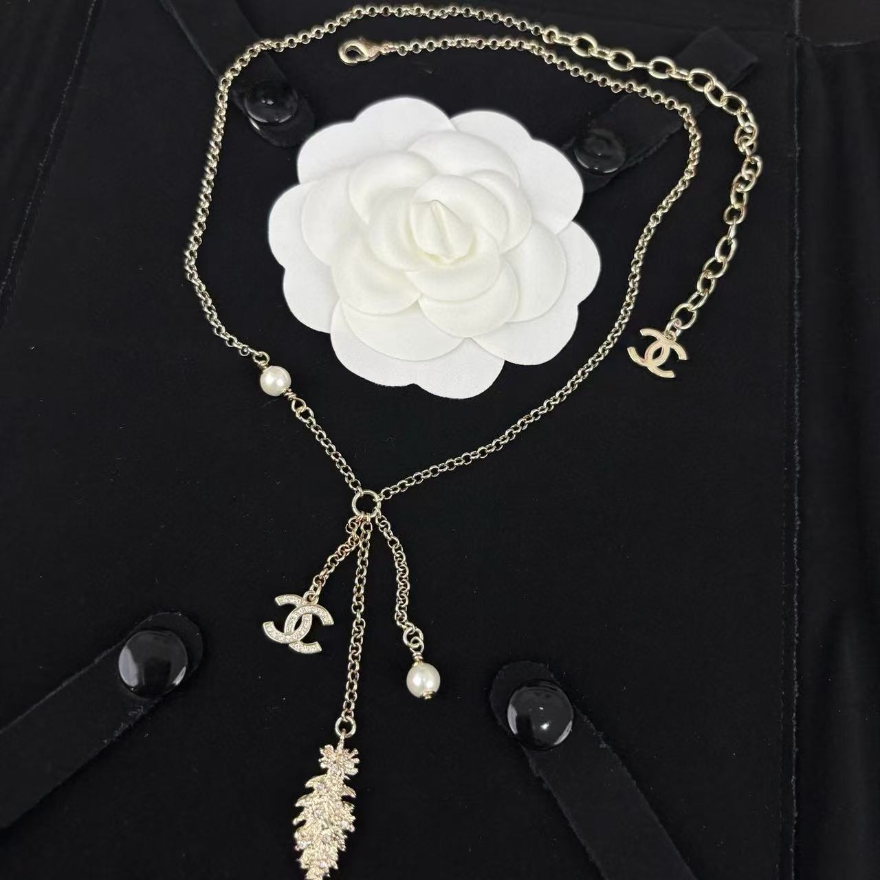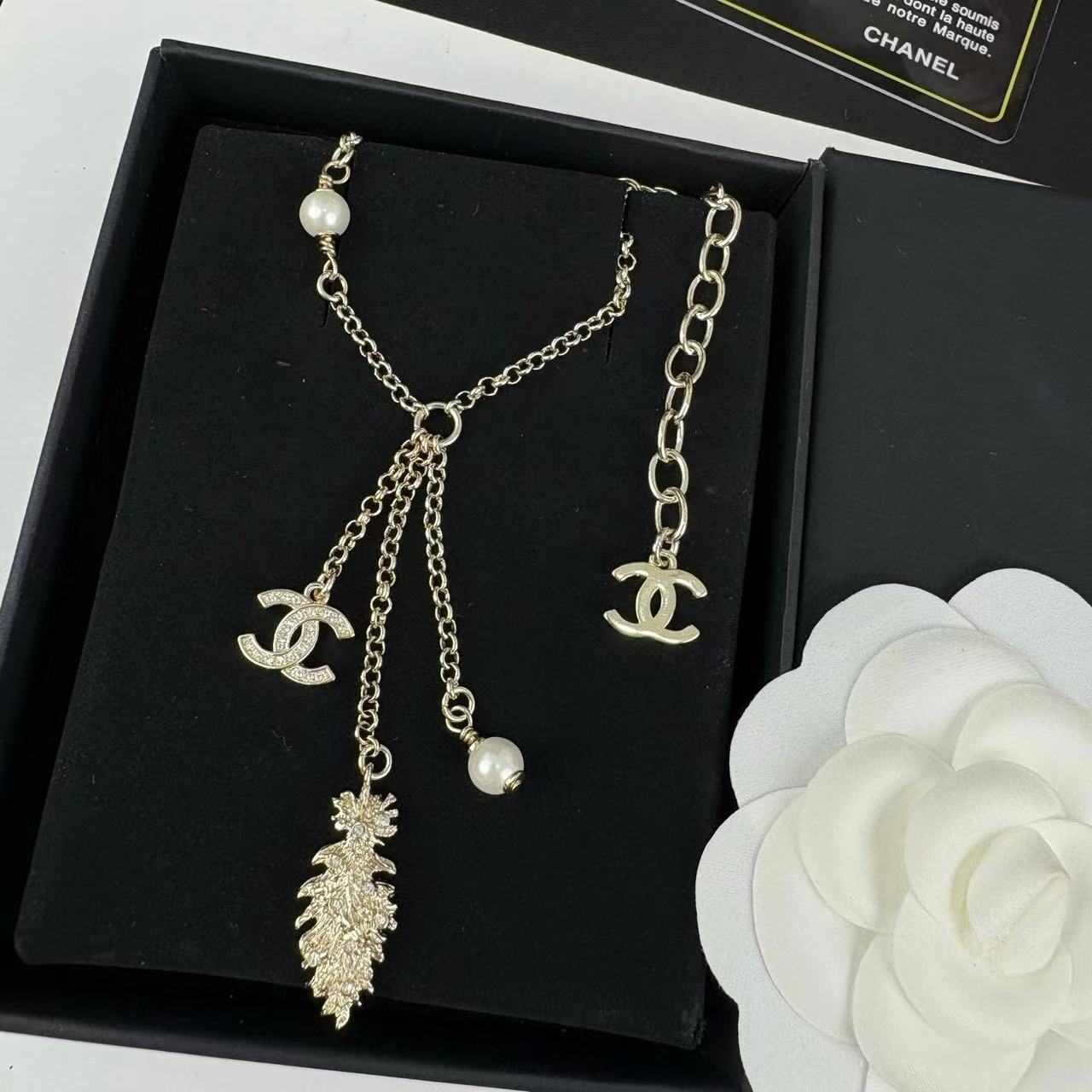 CHANE1 ダブルCパールフェザーウィートイヤーネックレス【 50%割引+送料無料】