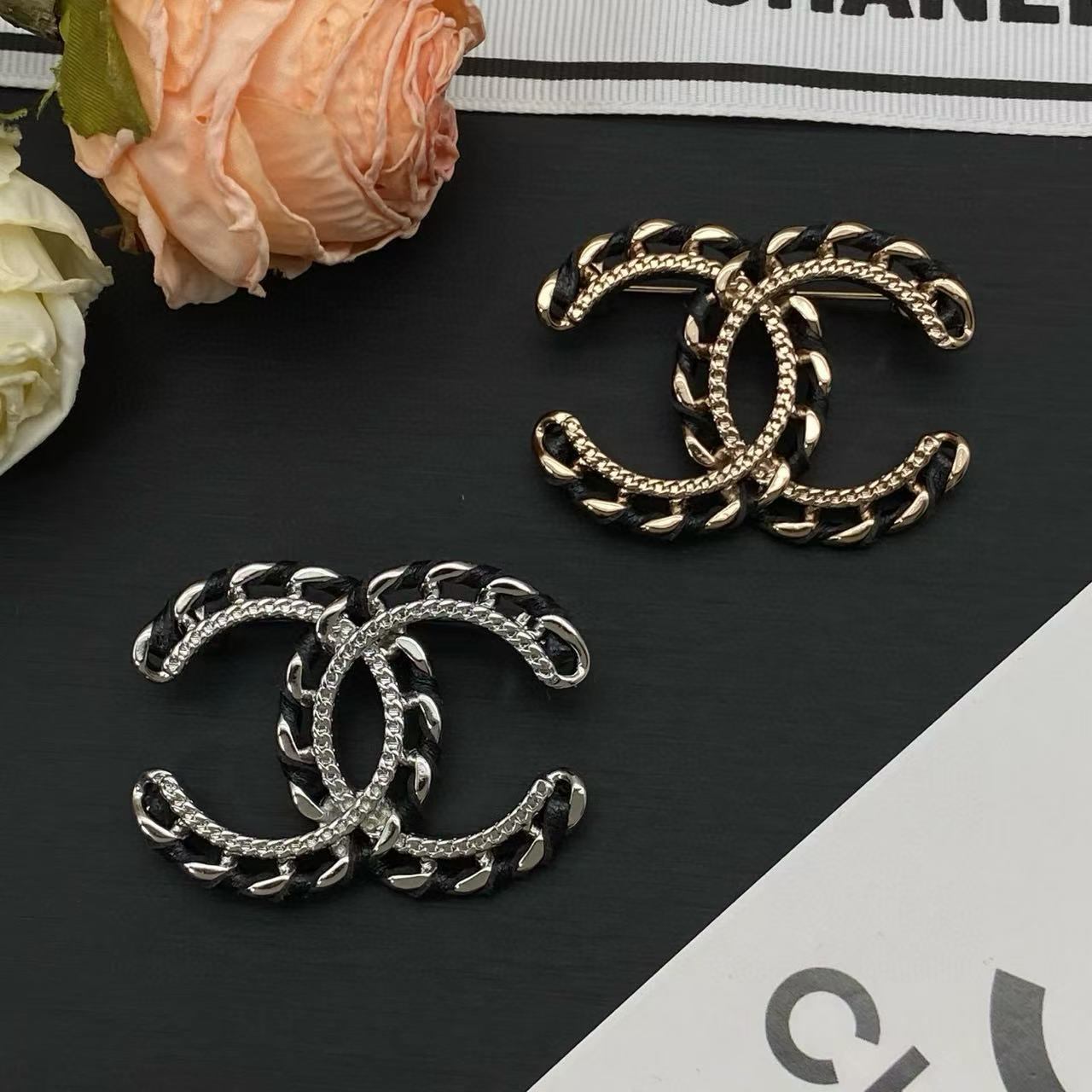 CHANE1 ダブルC 透かし彫りレザーブローチ【50%割引+送料無料】
