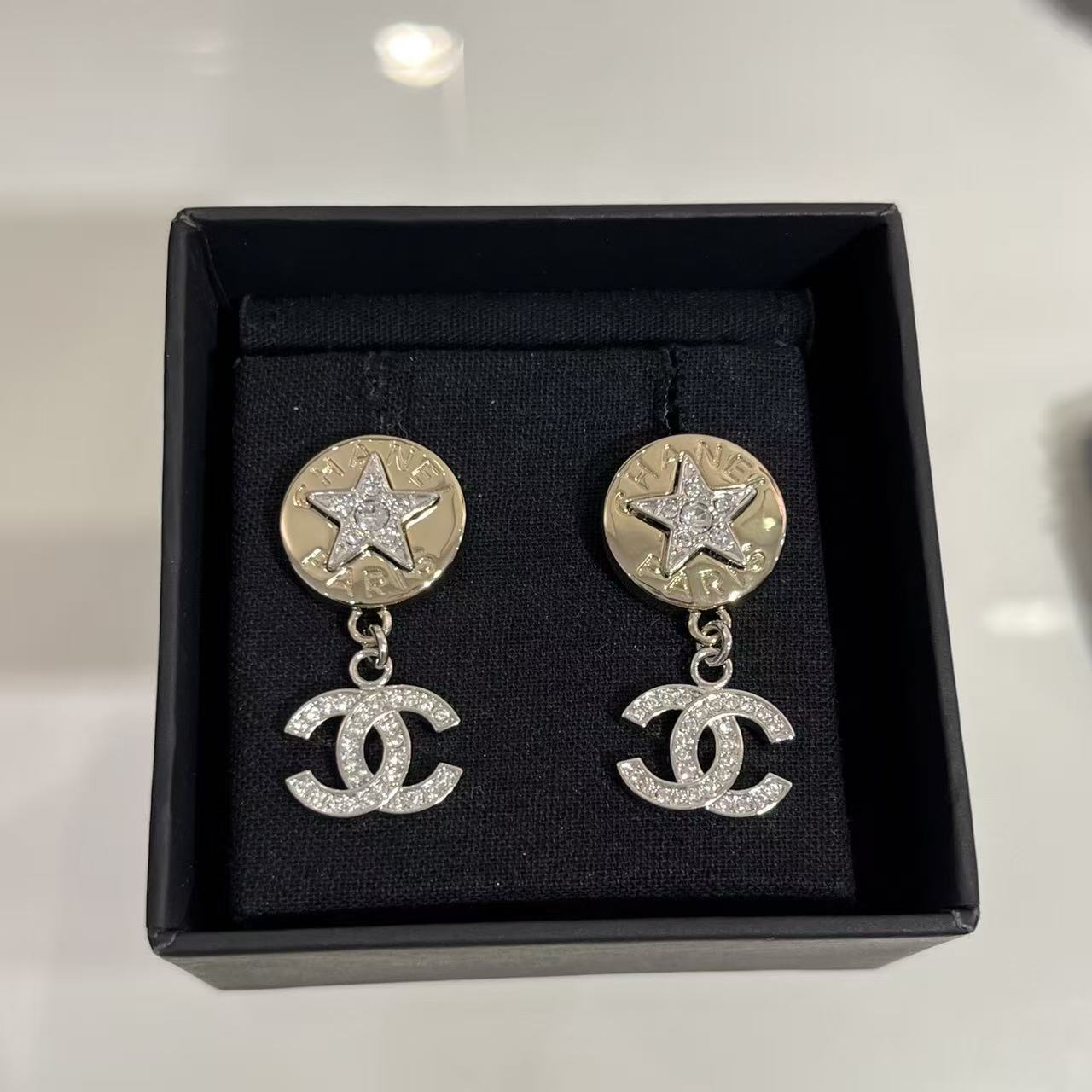 CHANE1 ダブルC ダイヤモンド ファイブポインテッドスター イヤリング【50%割引+送料無料】