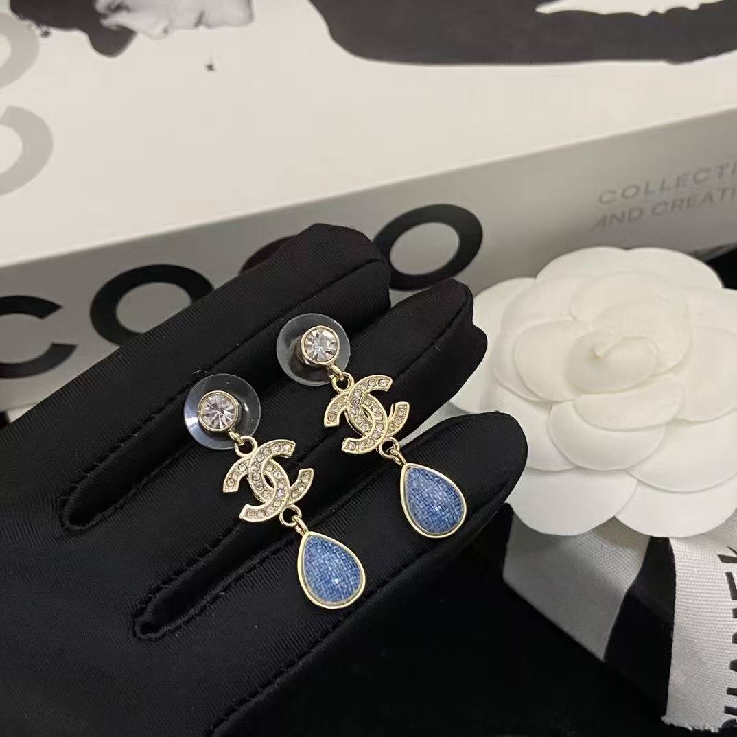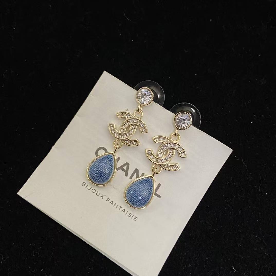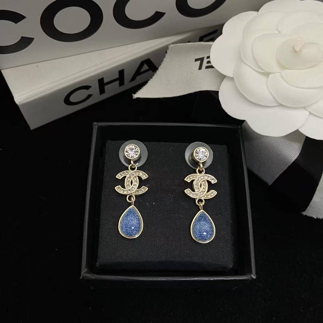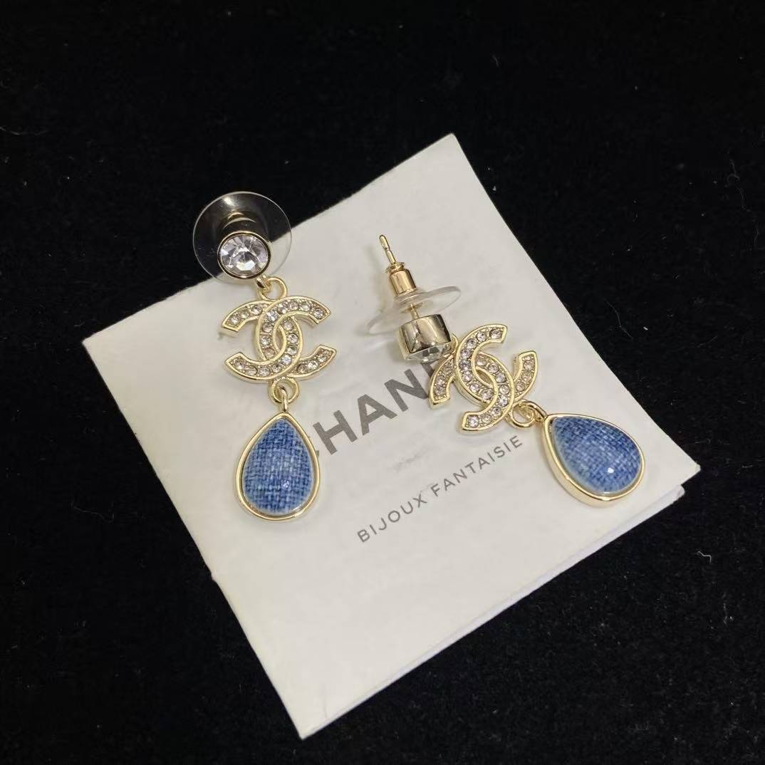 CHANE1 ダブルC ブルーダイヤモンドスタッドピアス【50%割引+送料無料】