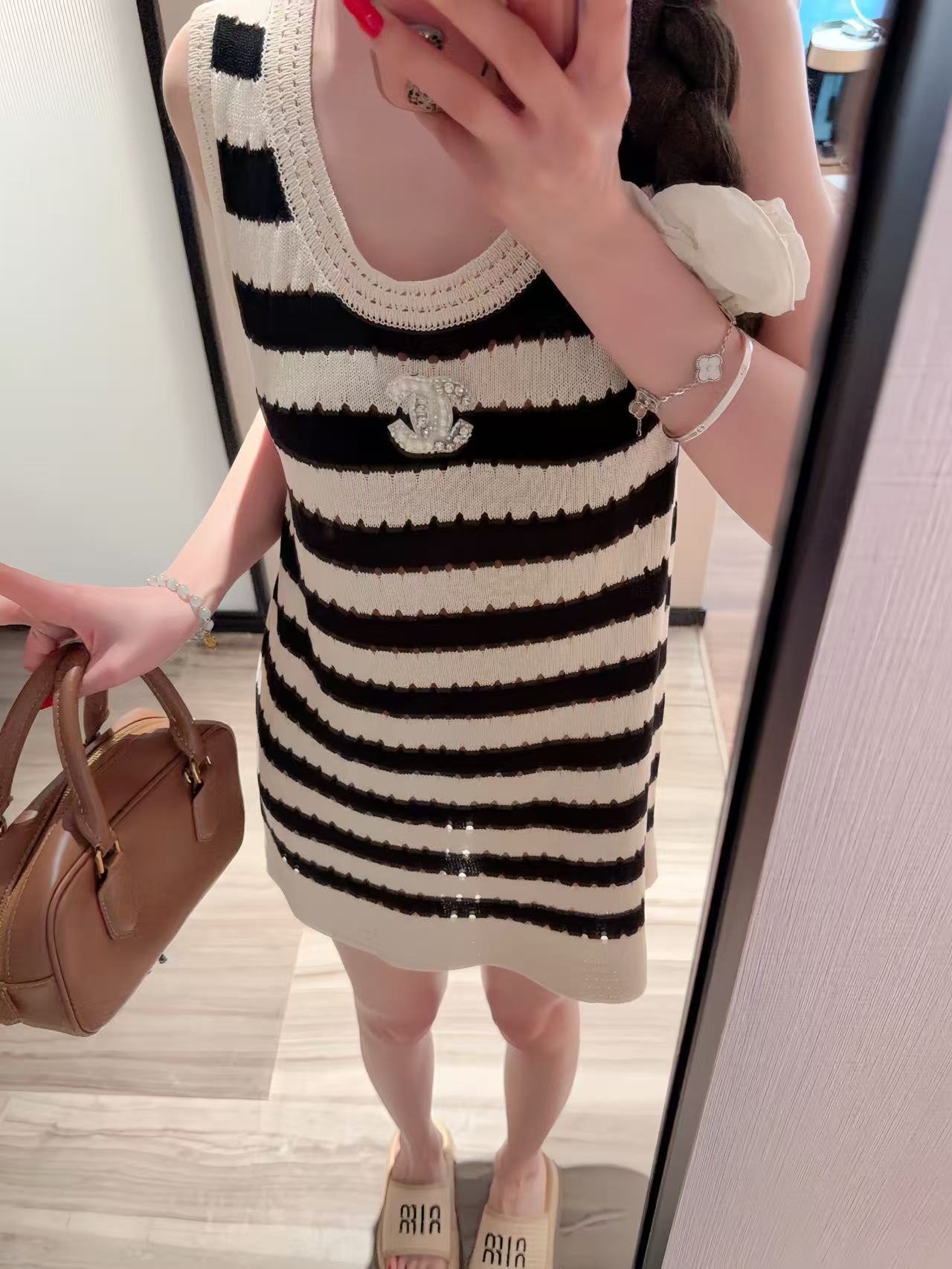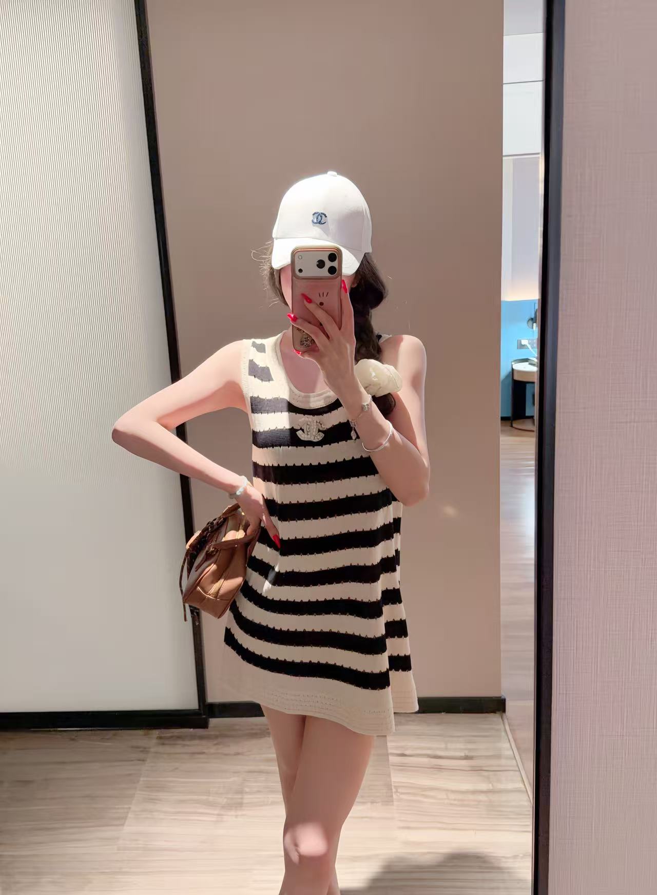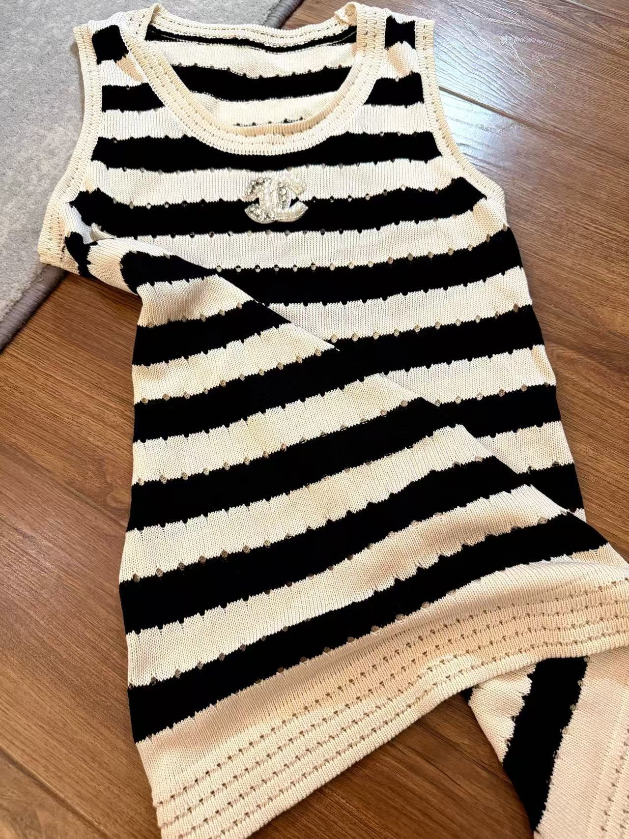CHANE1 ダブルCストライプ ノースリーブドレス【50%割引+送料無料】