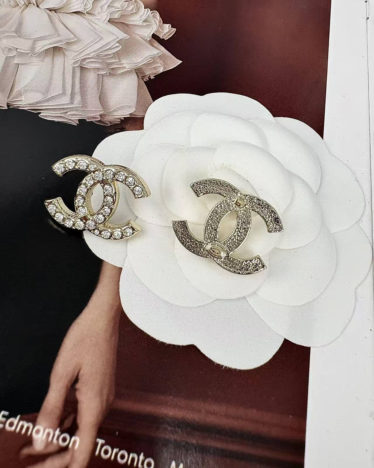 CHANE1 ダブルC ダイヤモンドスタッドピアス【50%割引+送料無料】