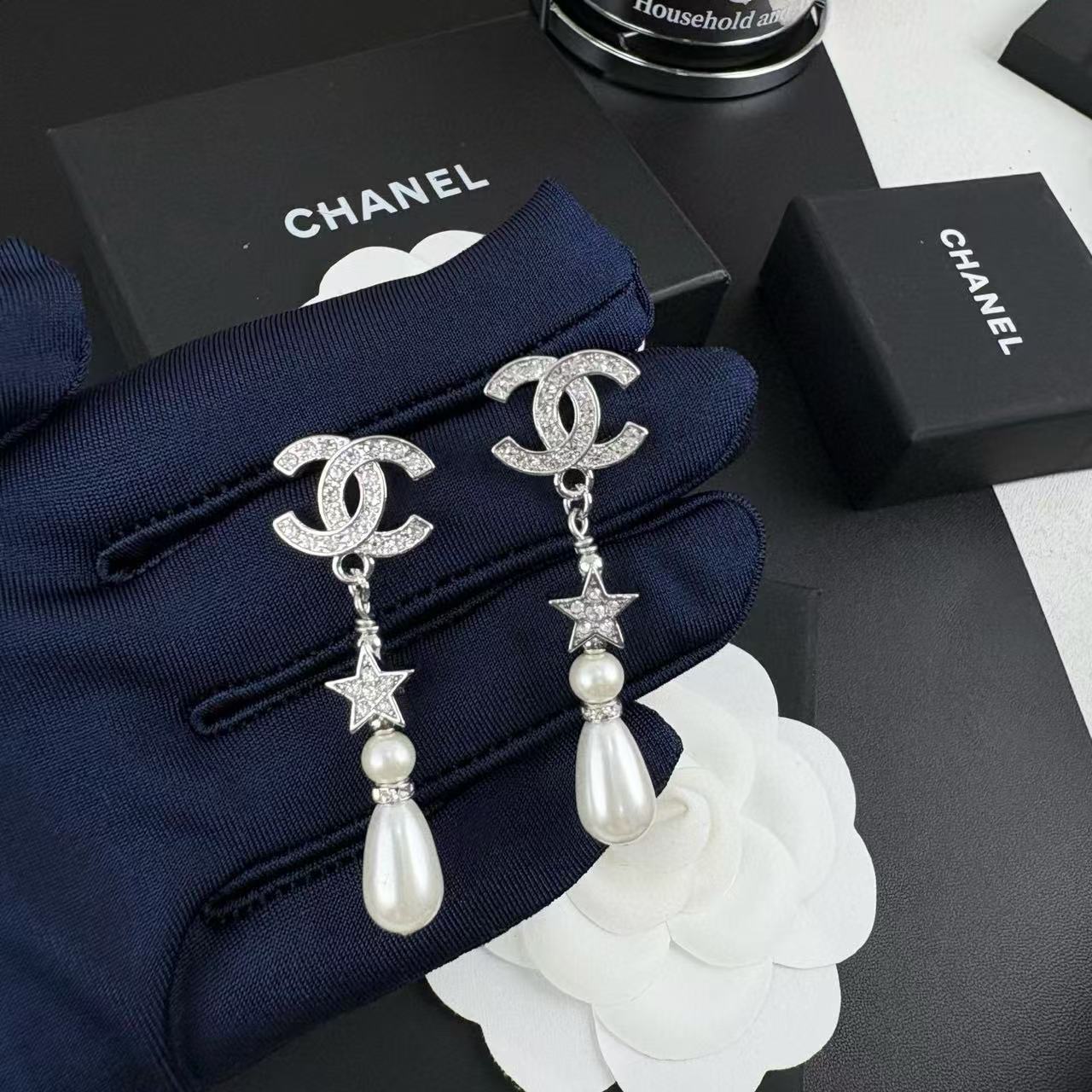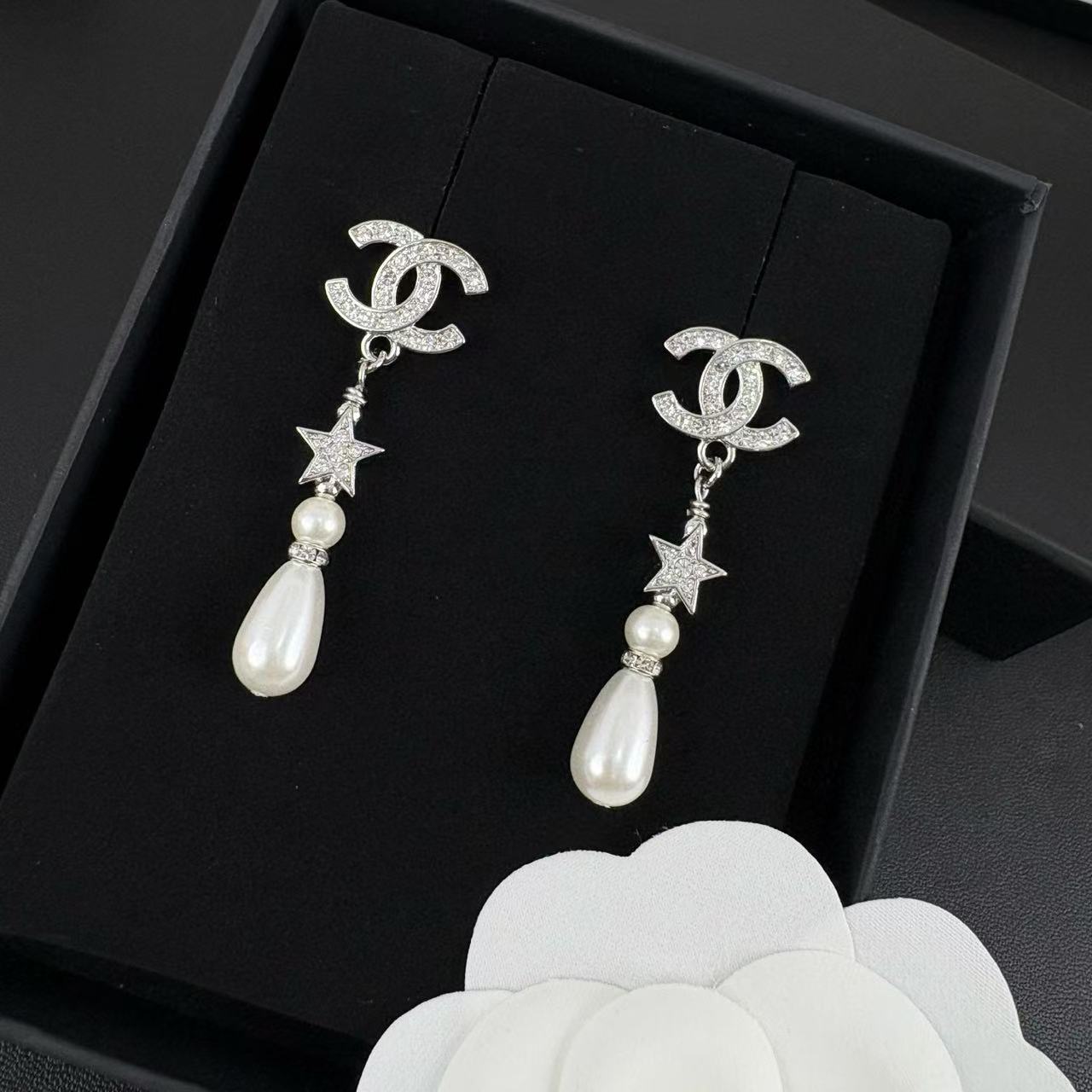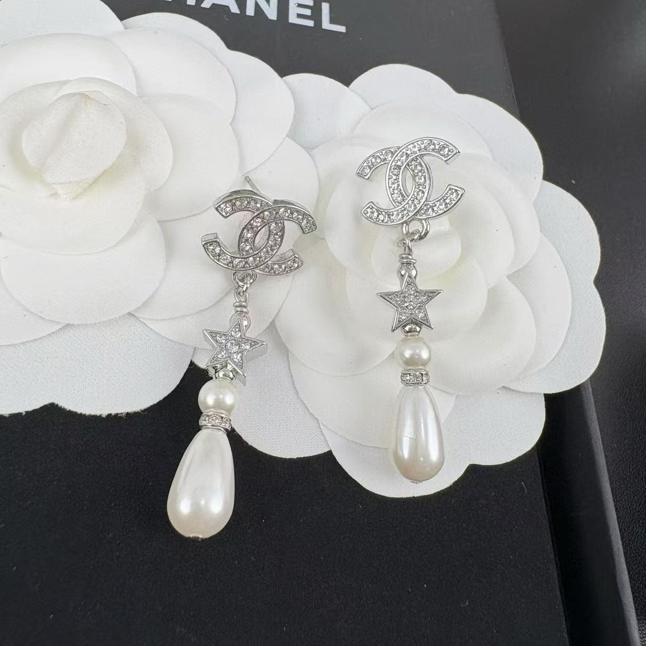CHANE1 五芒星ダブルCパールイヤリング【50%割引+送料無料】