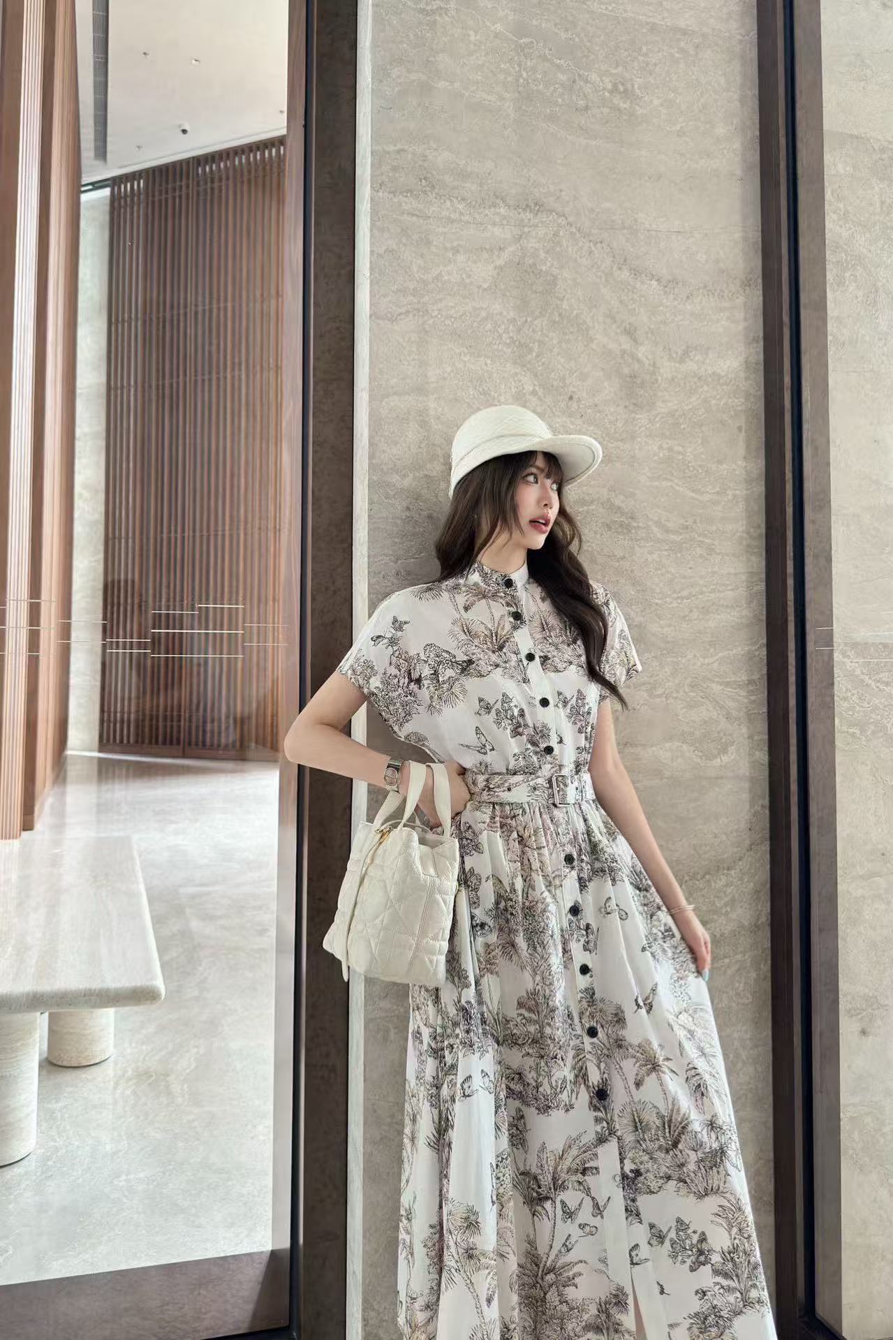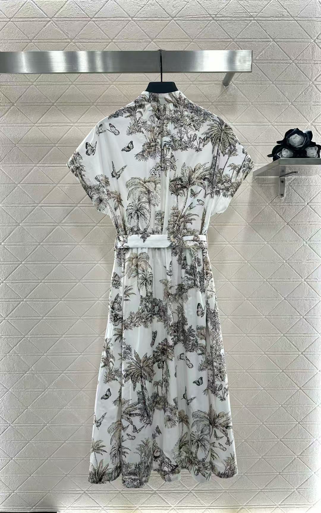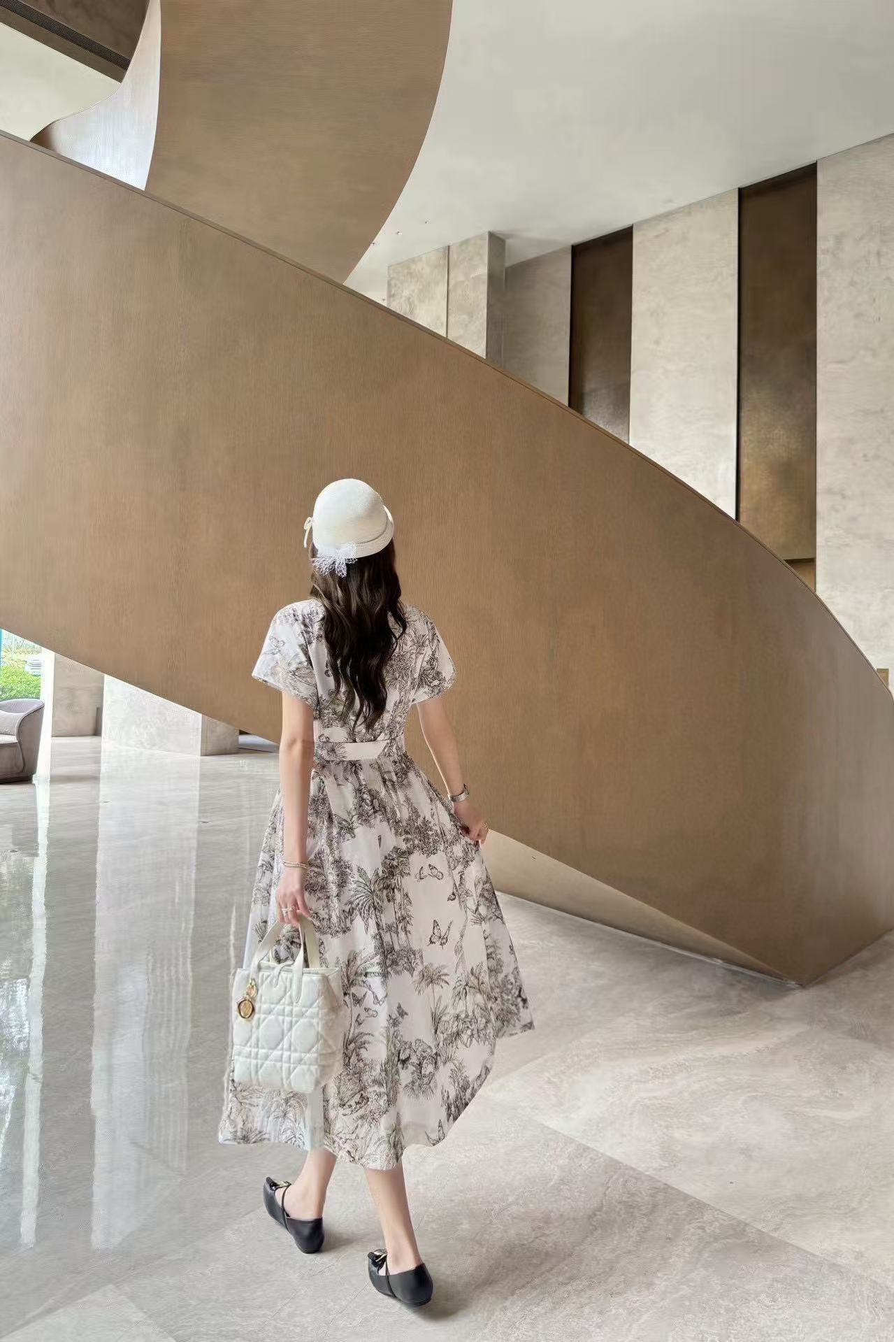 DI0R バタフライプリント 半袖ドレス【50%割引+送料無料】