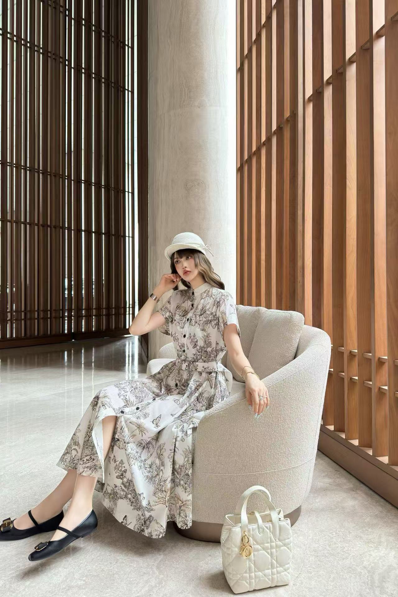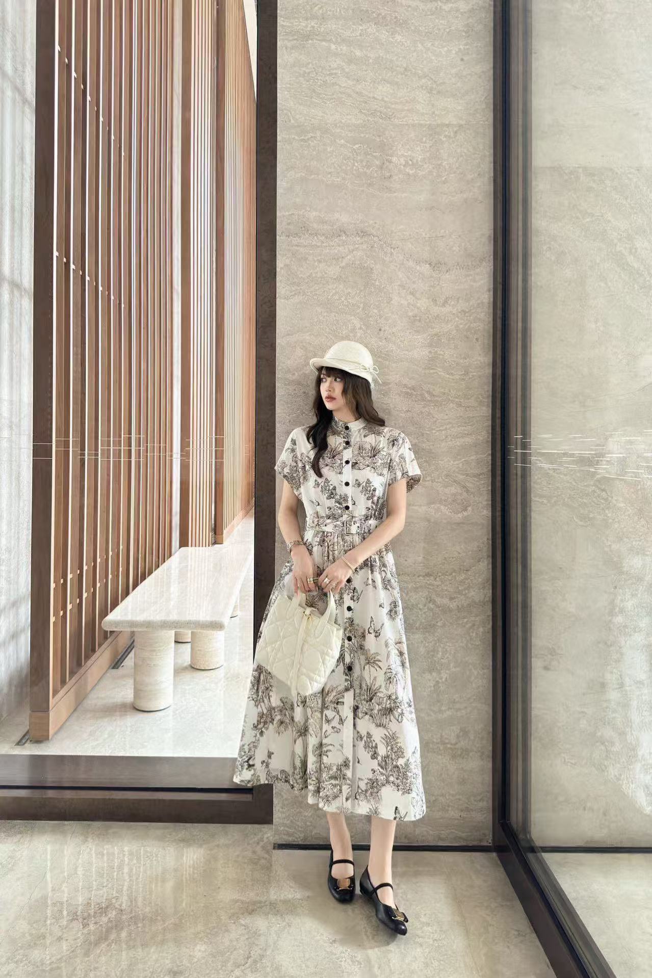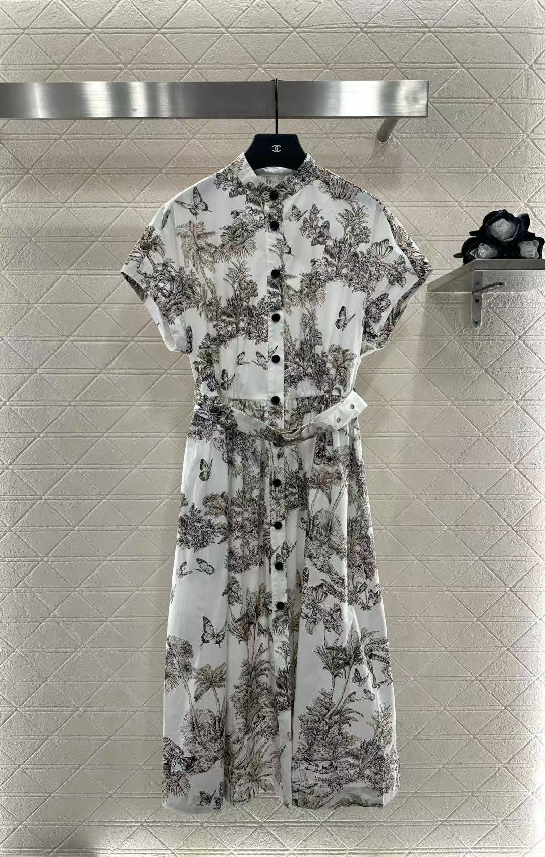 DI0R バタフライプリント 半袖ドレス【50%割引+送料無料】