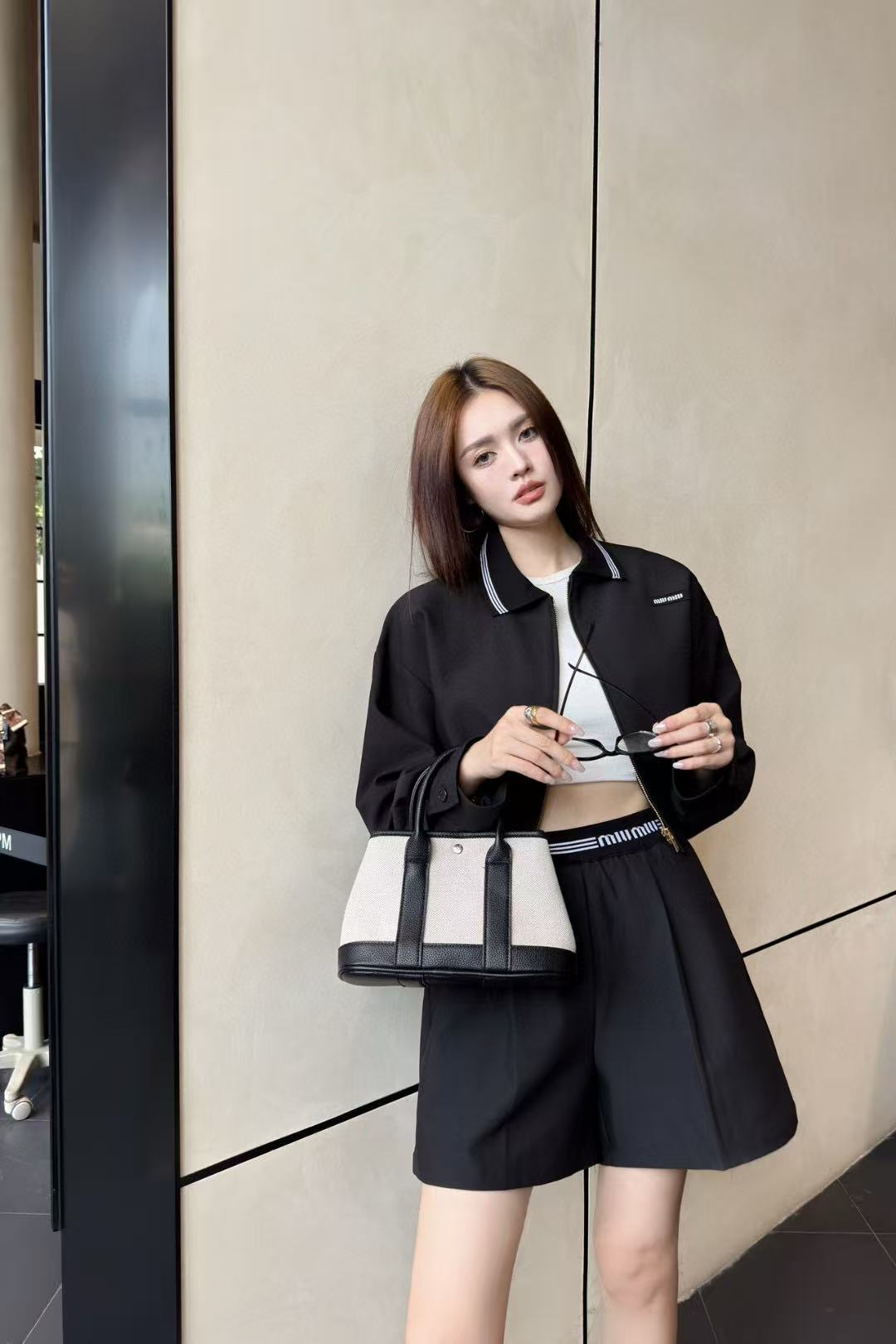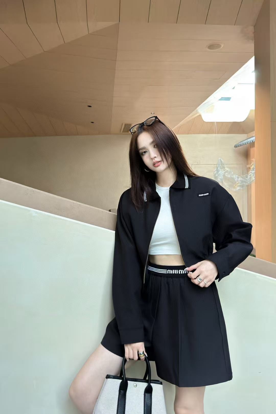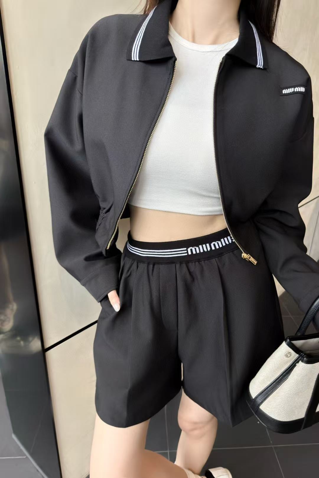 M1UM1U シンプルジャケット+ショーツ ツーピースセット【50%割引+送料無料】