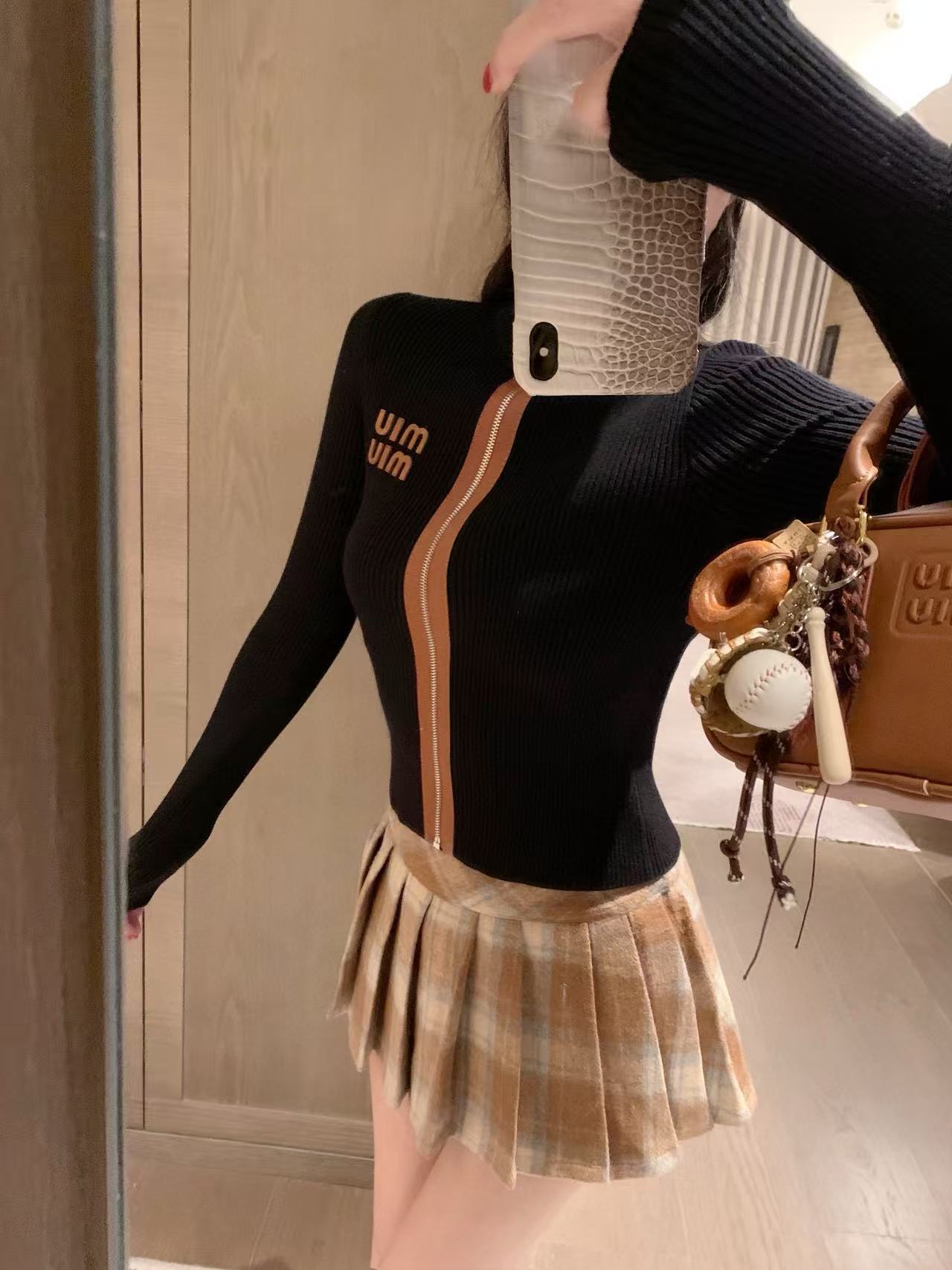 M1UM1U カラーブロック ジップアップ ニットトップ【50%割引+送料無料】