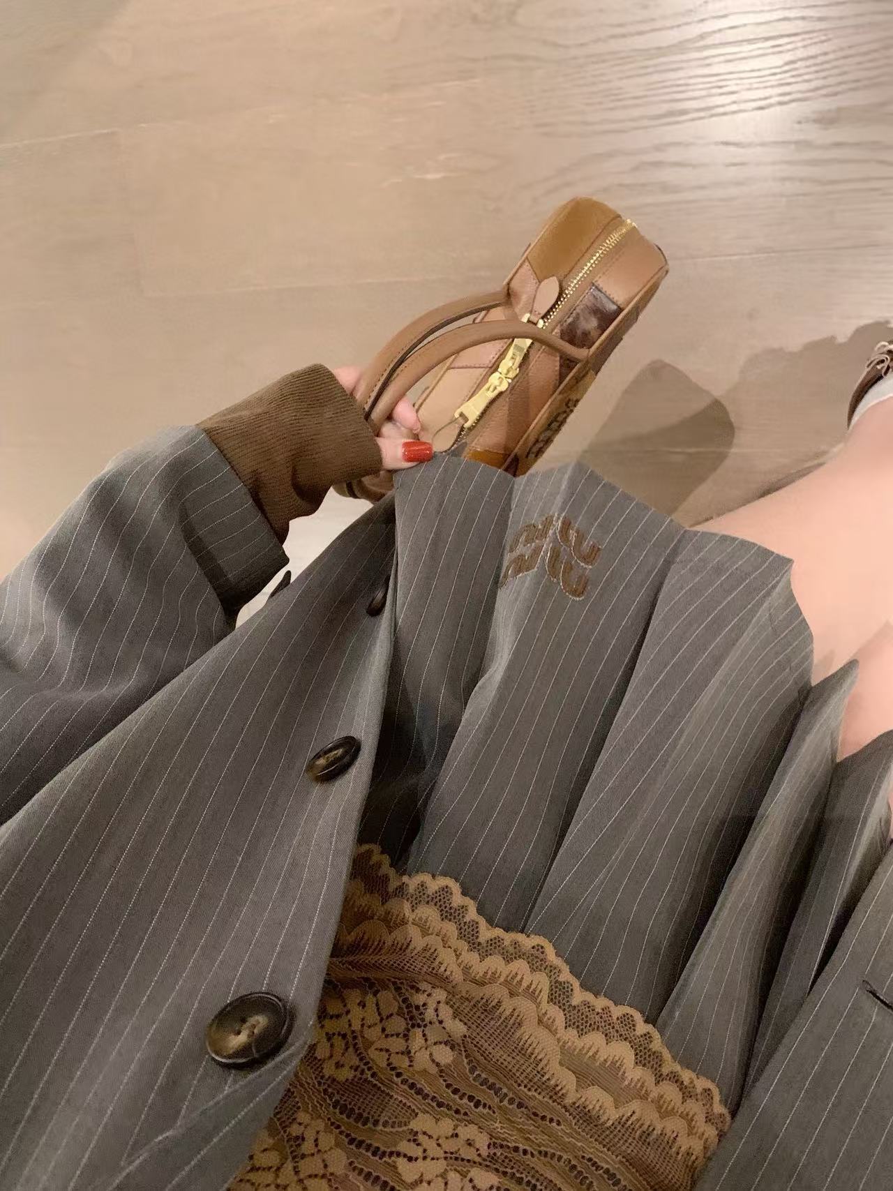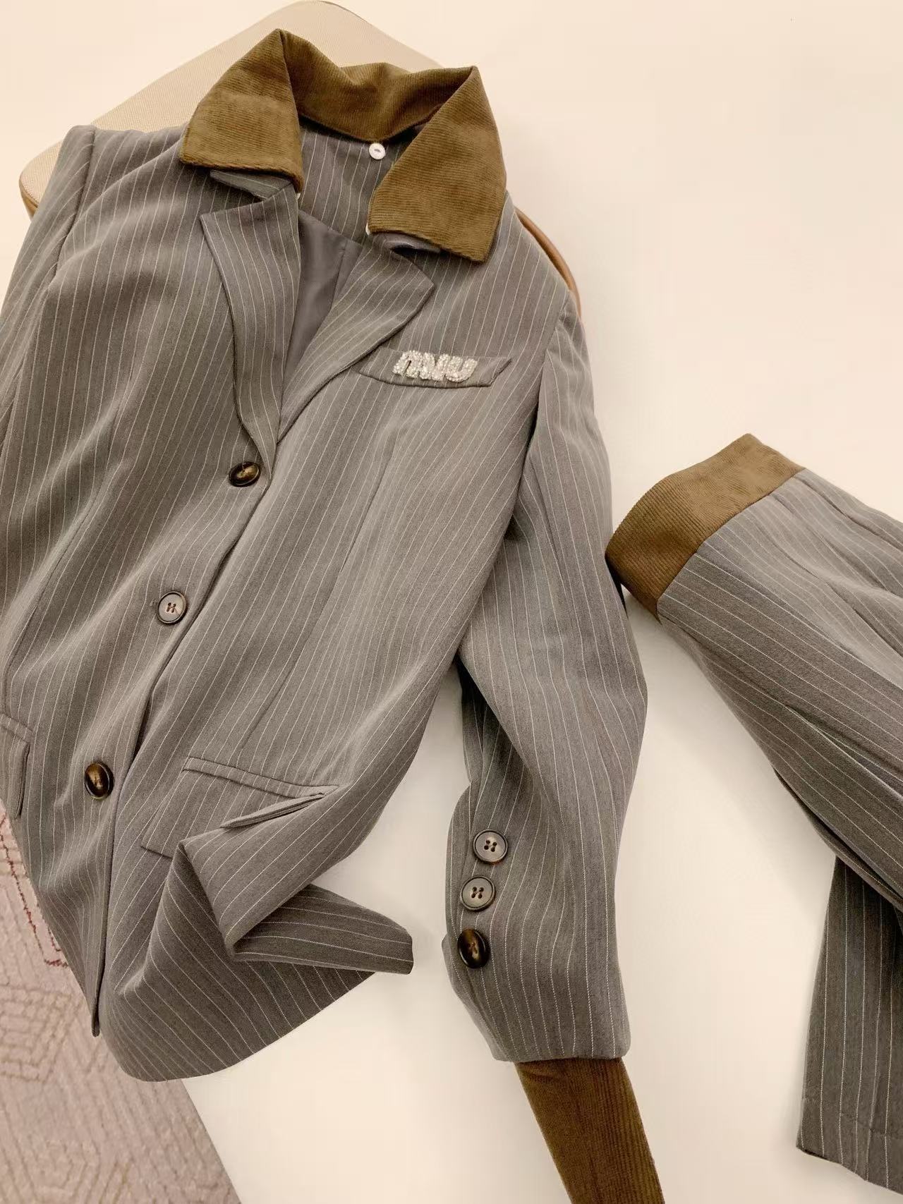 M1UM1U ストライプスーツ+スカート ツーピースセット【50%割引+送料無料】