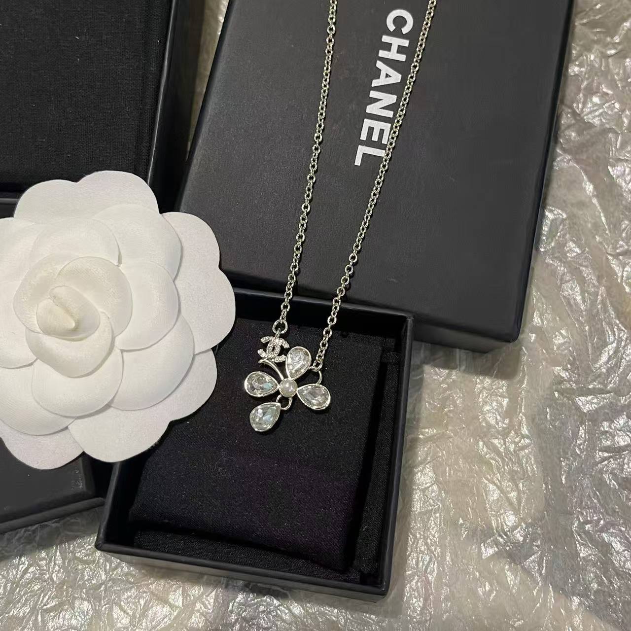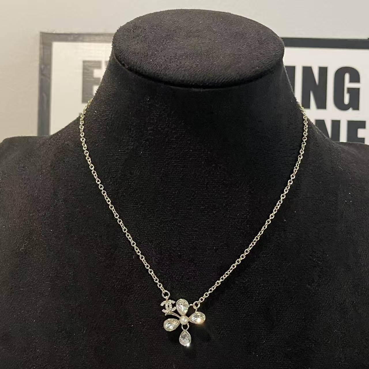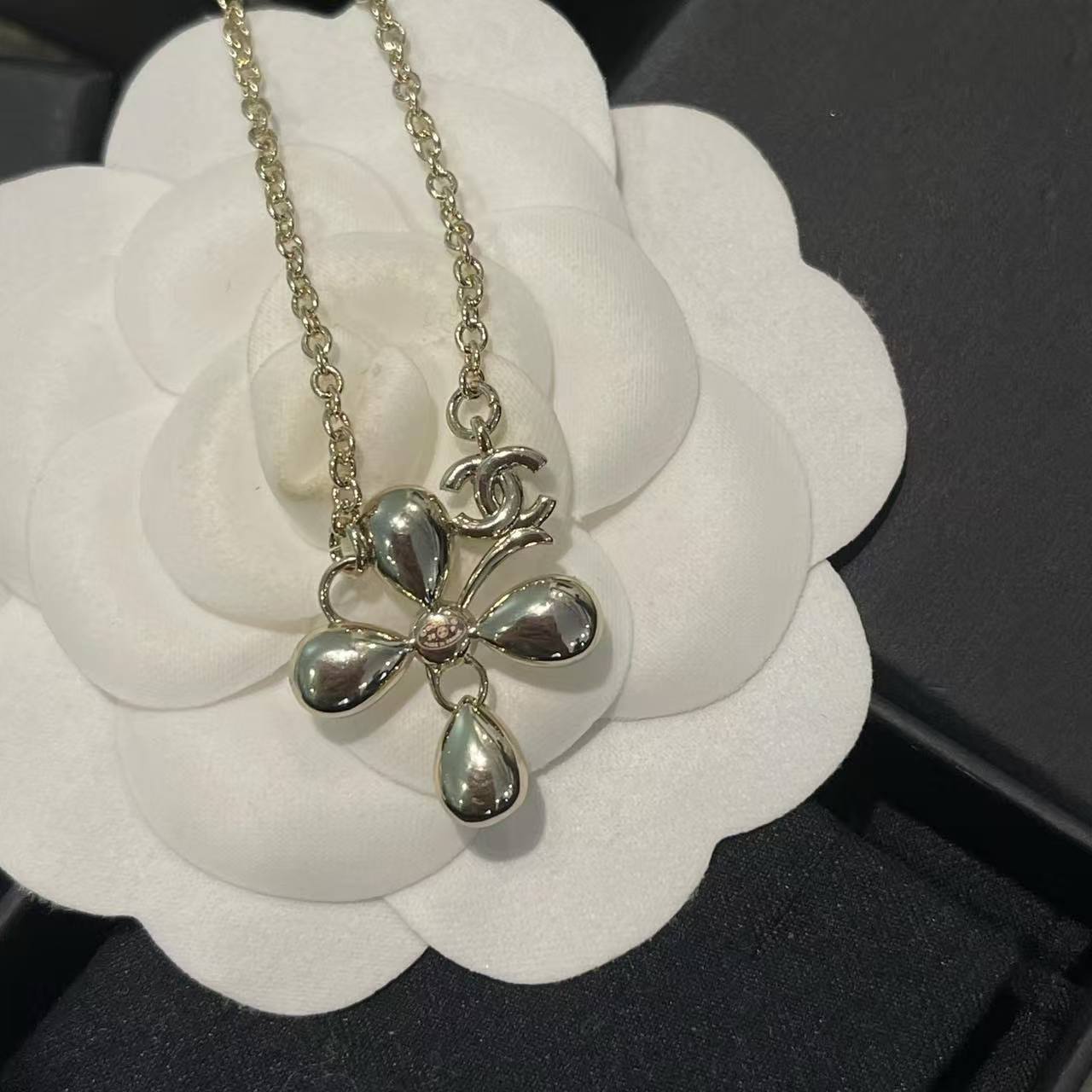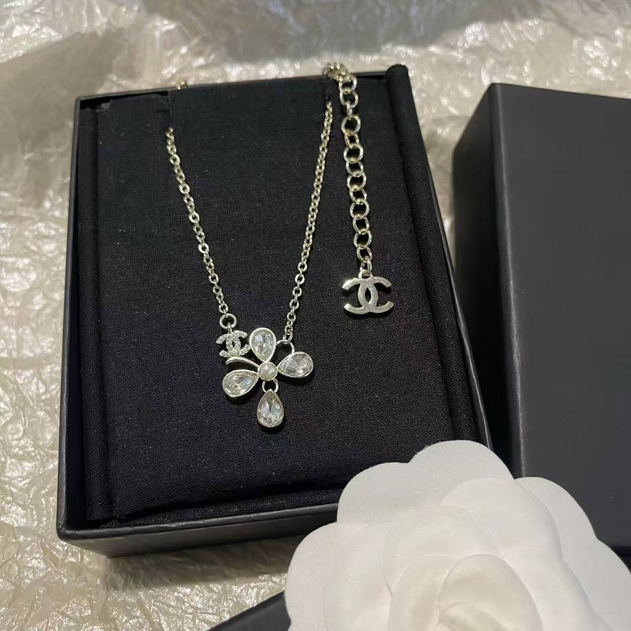 CHANE1 クローバー ダブルC ダイヤモンドネックレス【50%割引+送料無料】