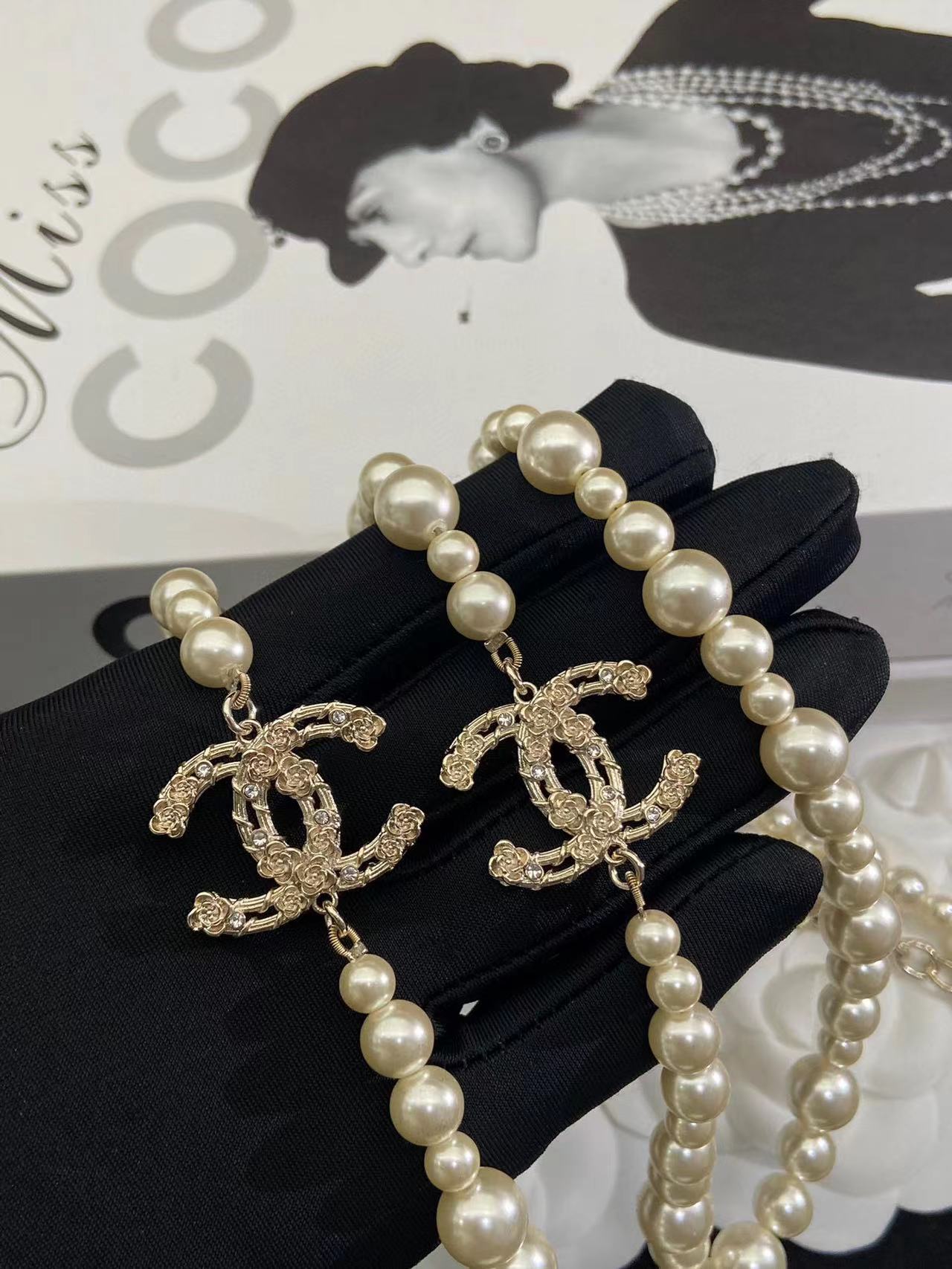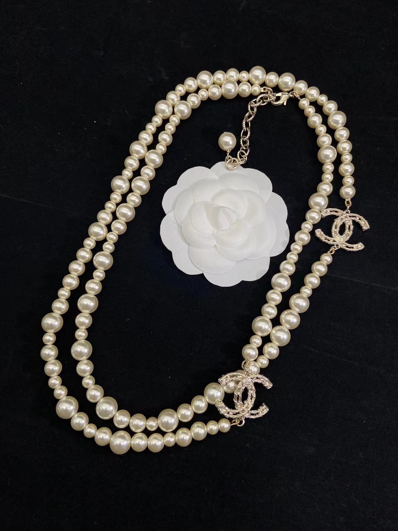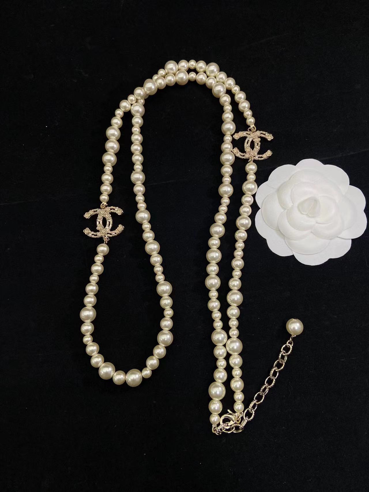 CHANE1 カメリア中空エンボスパールセーターチェーン【50%割引+送料無料】
