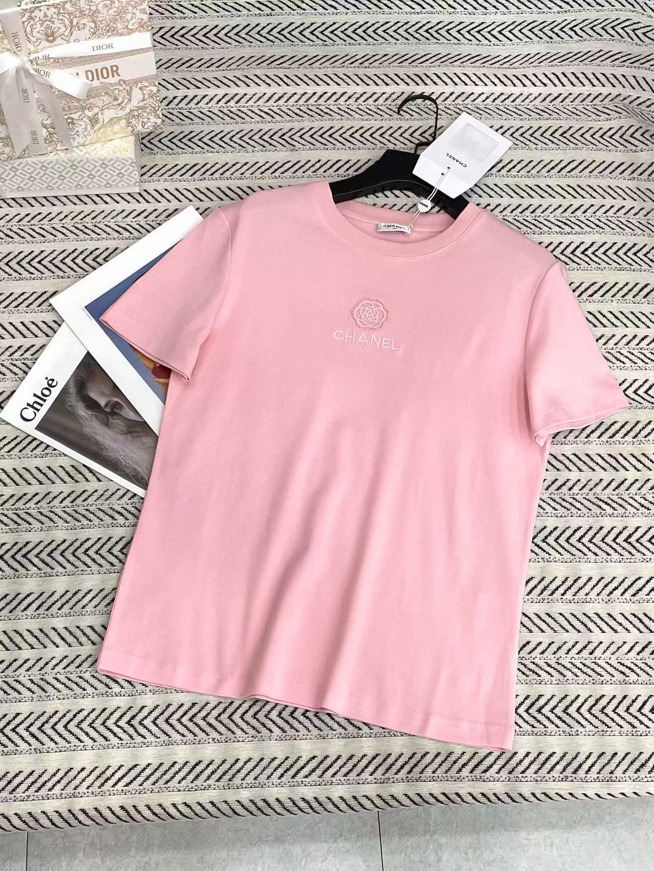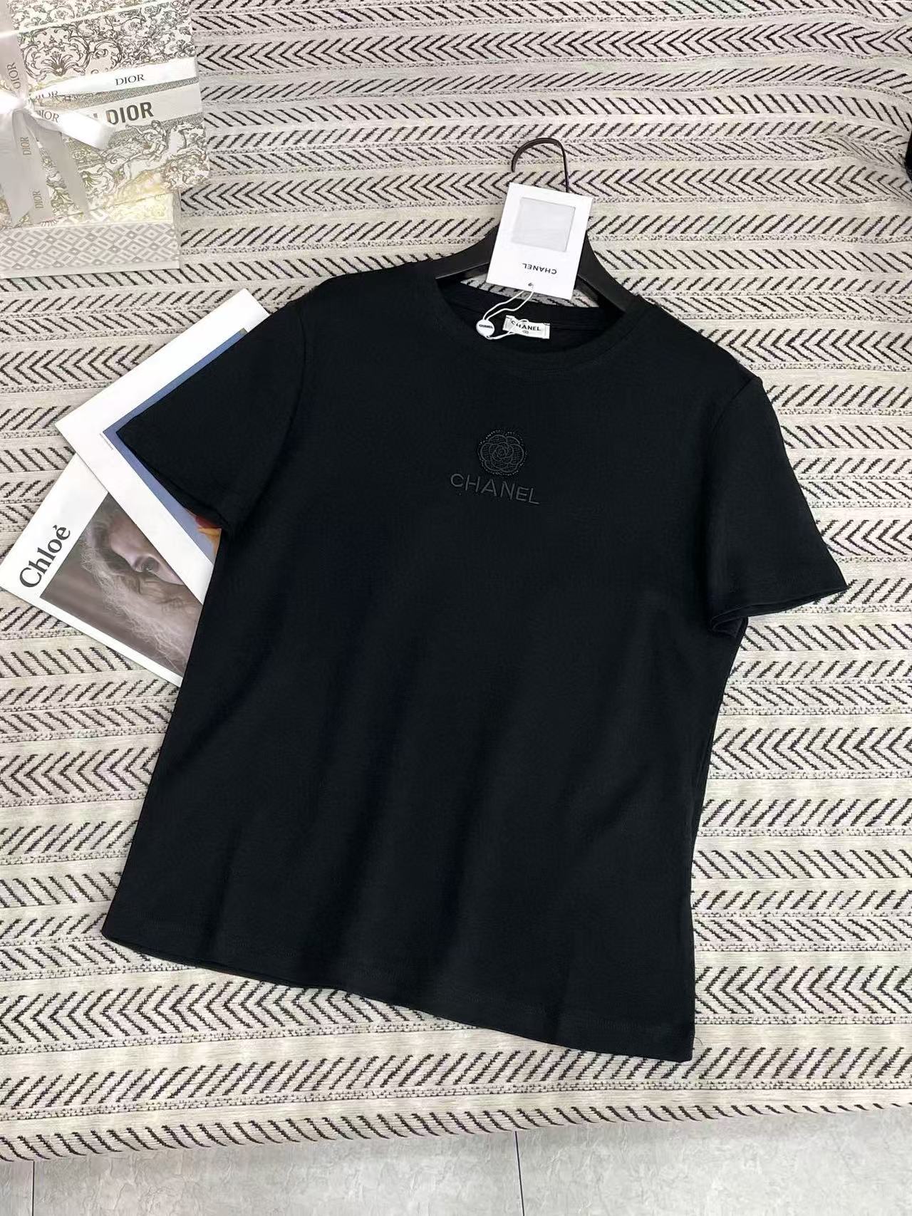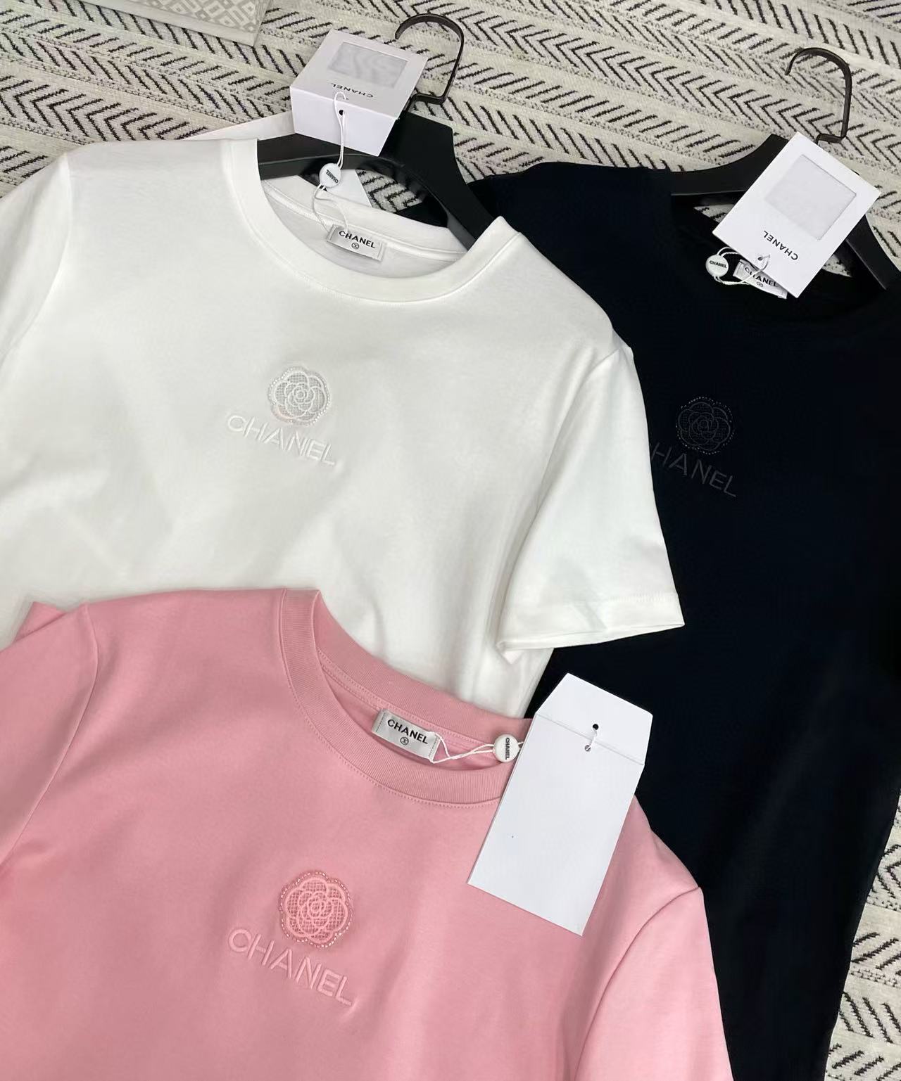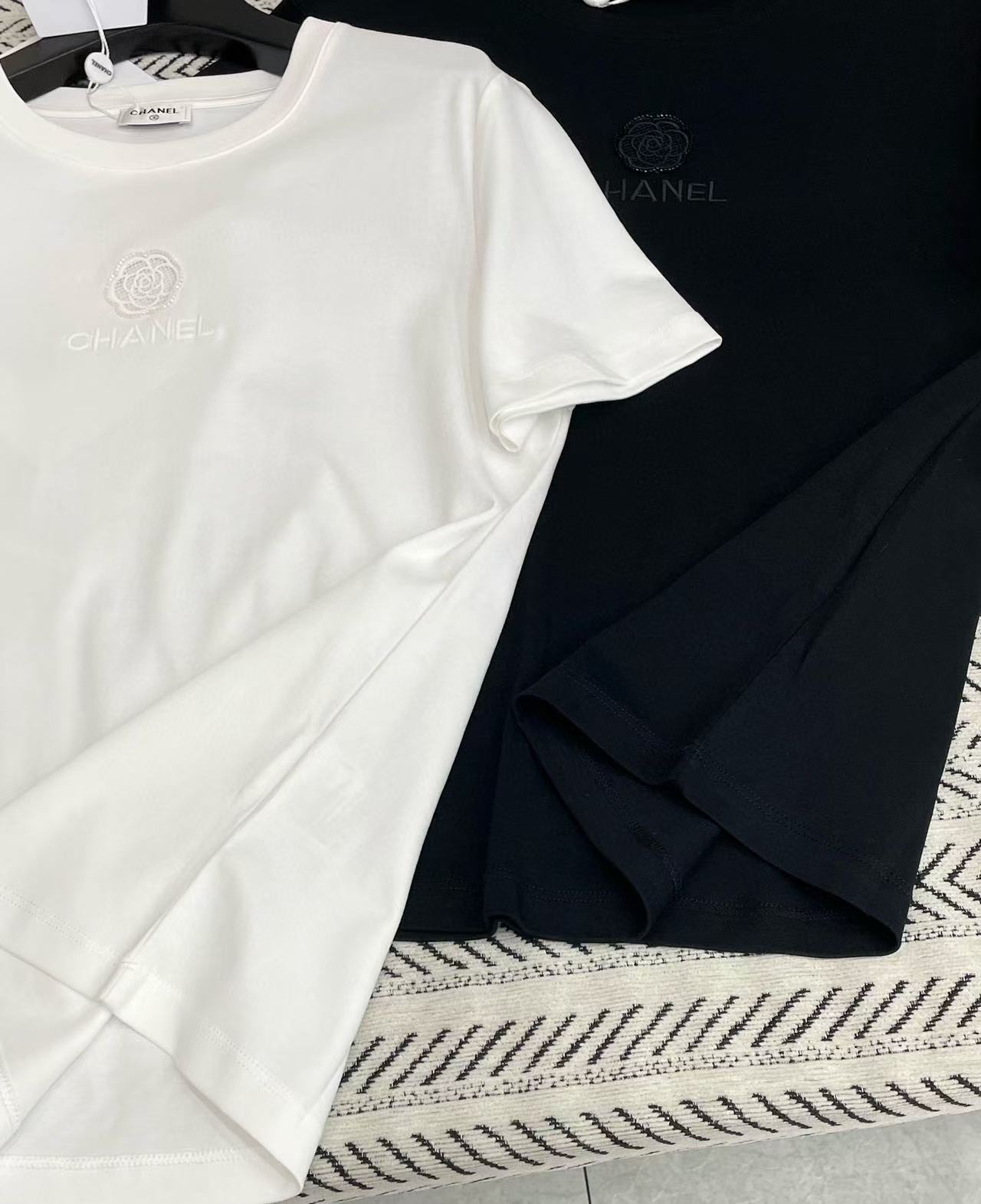 CHANE1 刺繍カメリアレターTシャツ【50%割引+送料無料】