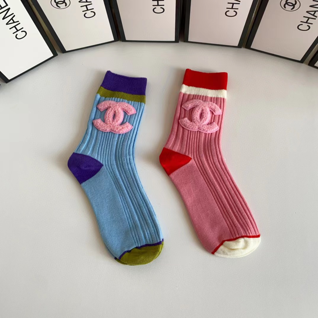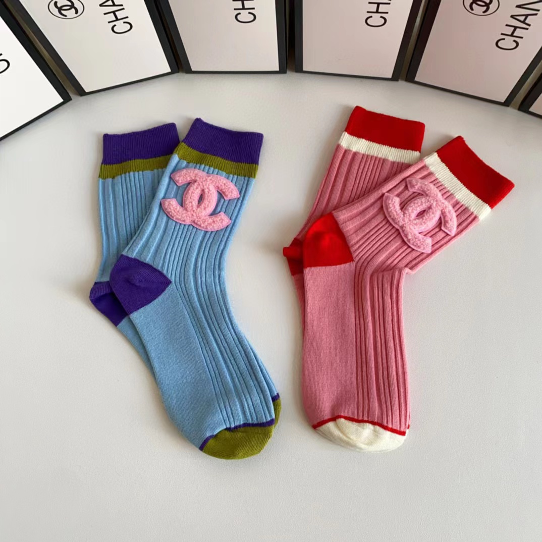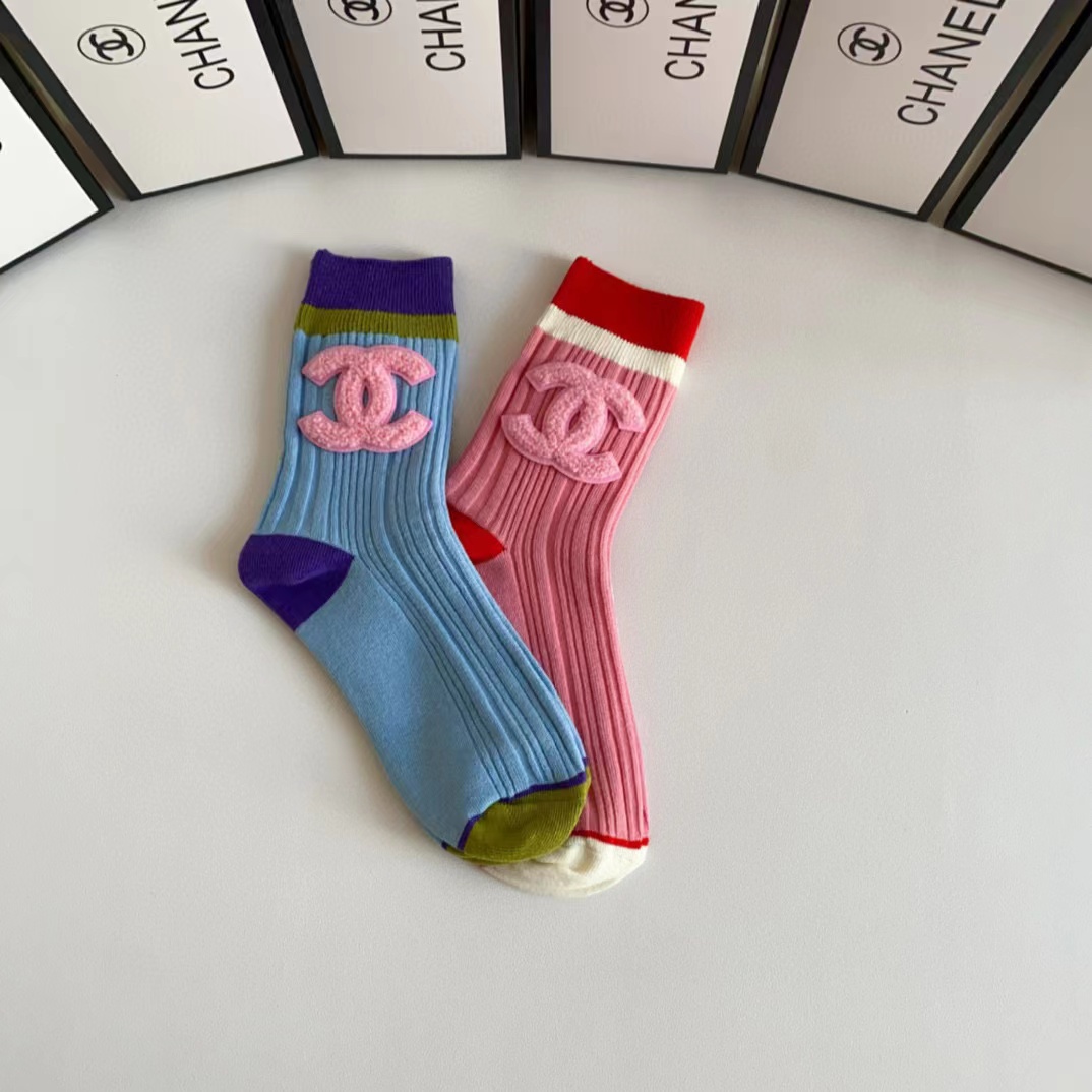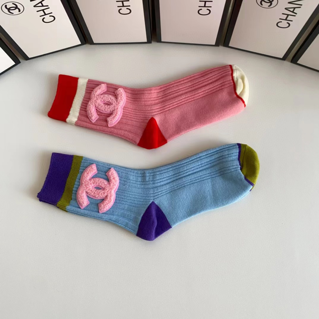 CHANE1 カシミア カラーブロック ダブル C ロゴ ソックス【50%割引+送料無料】