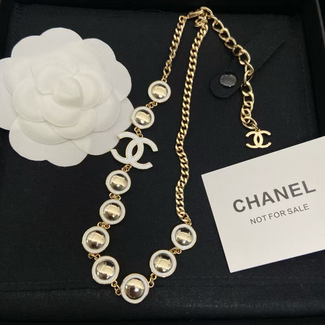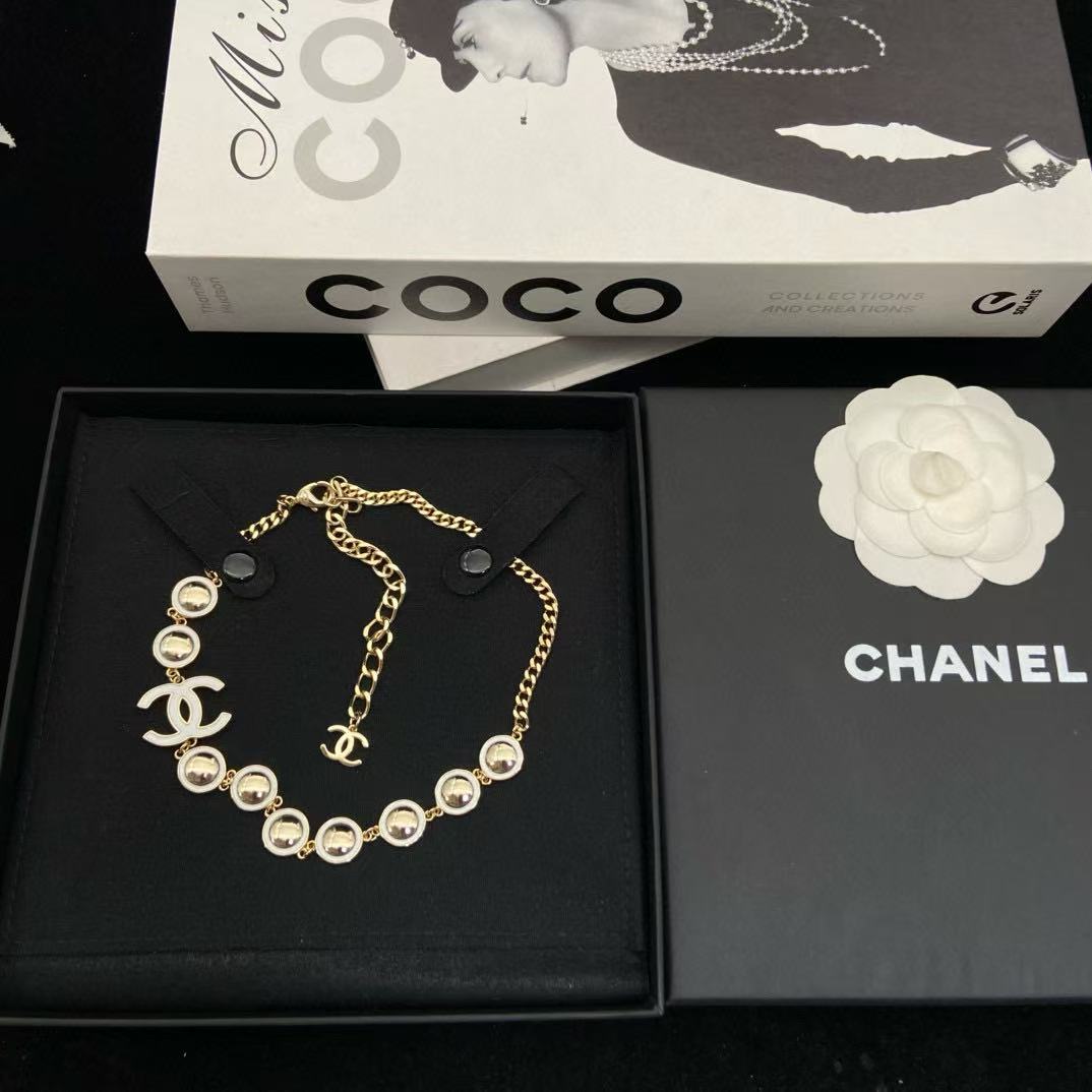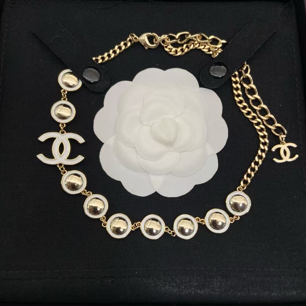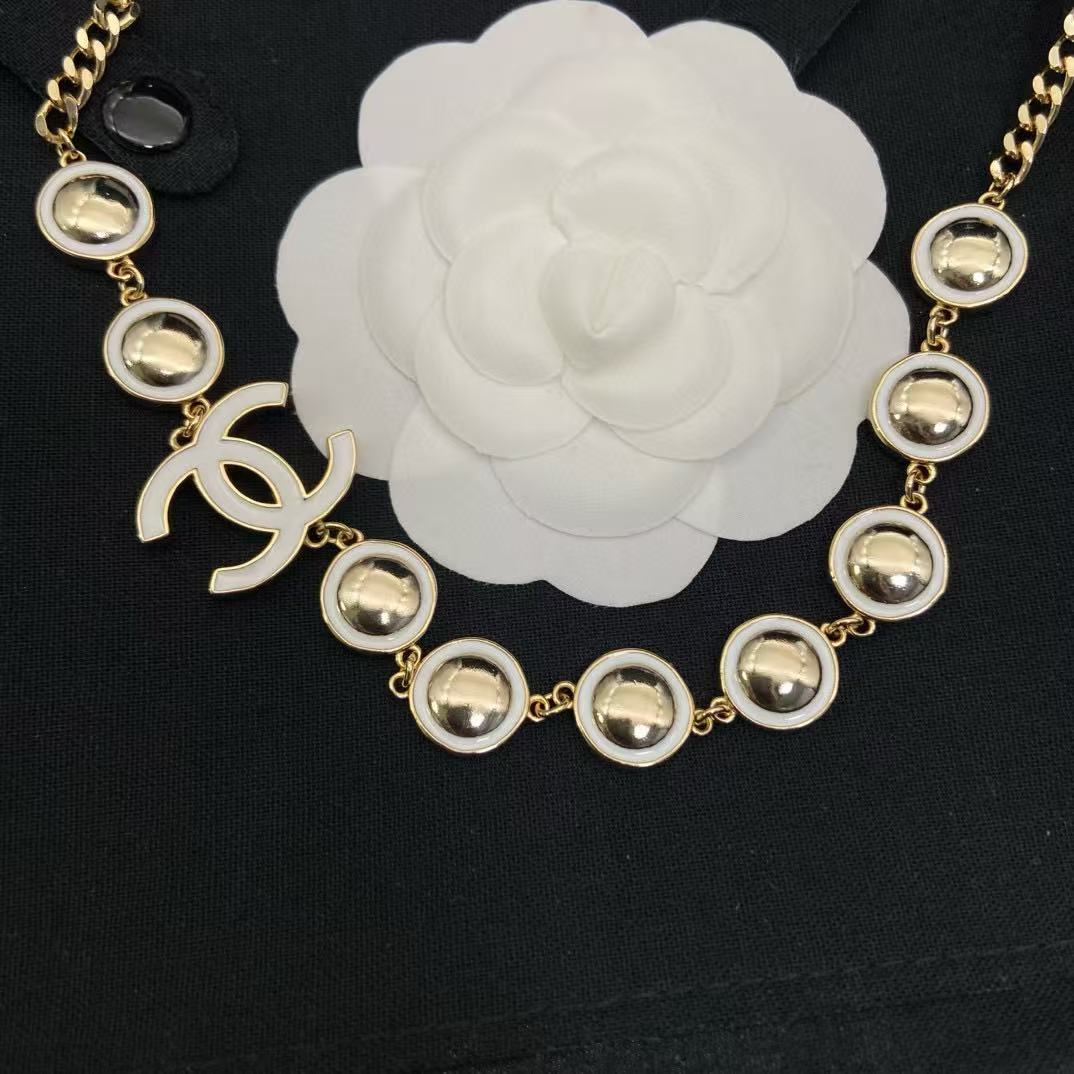 CHANE1 ダブルC ホワイトエナメルネックレス【50%割引+送料無料】