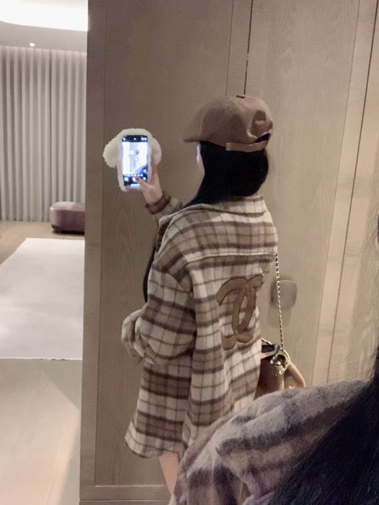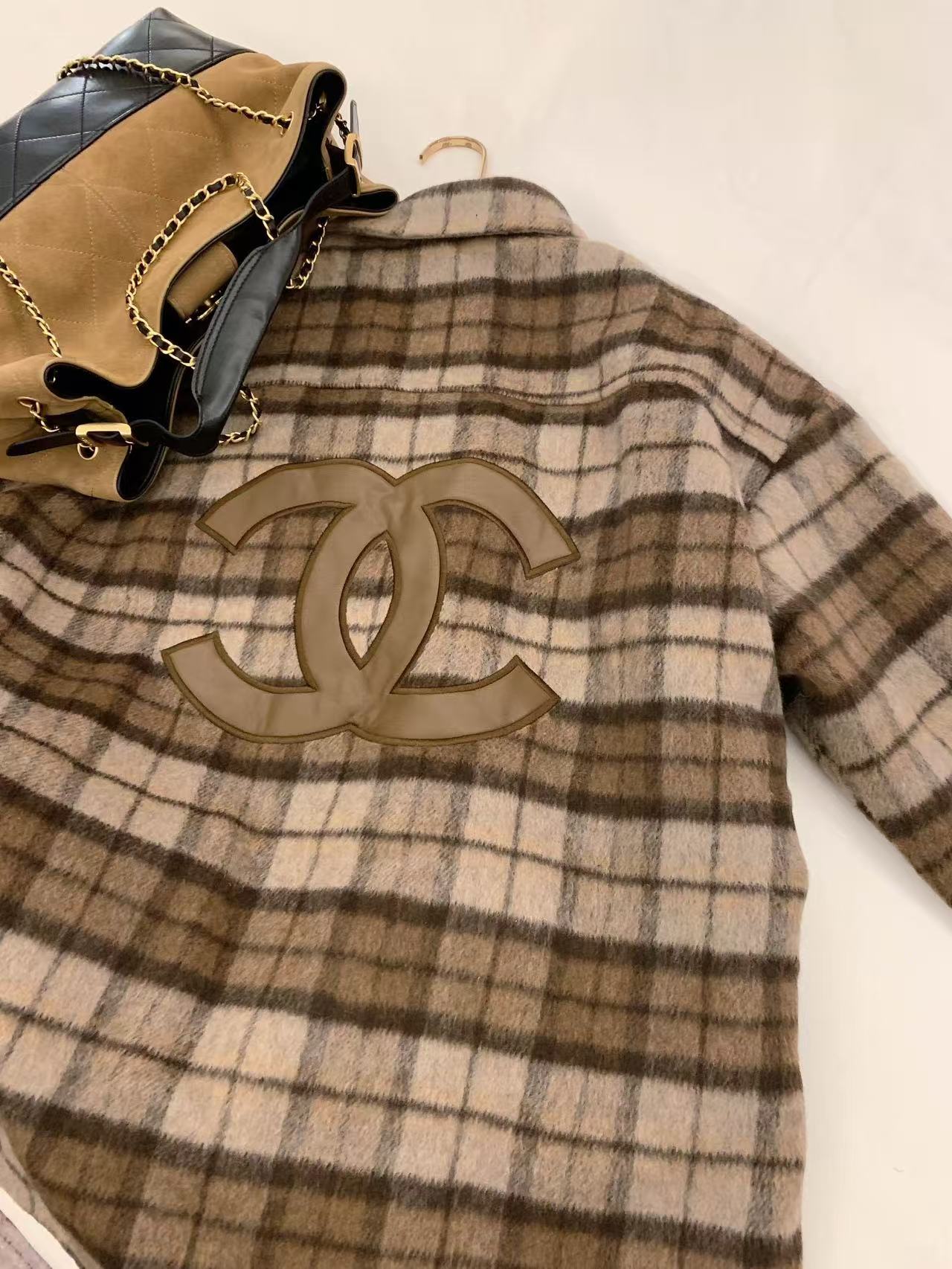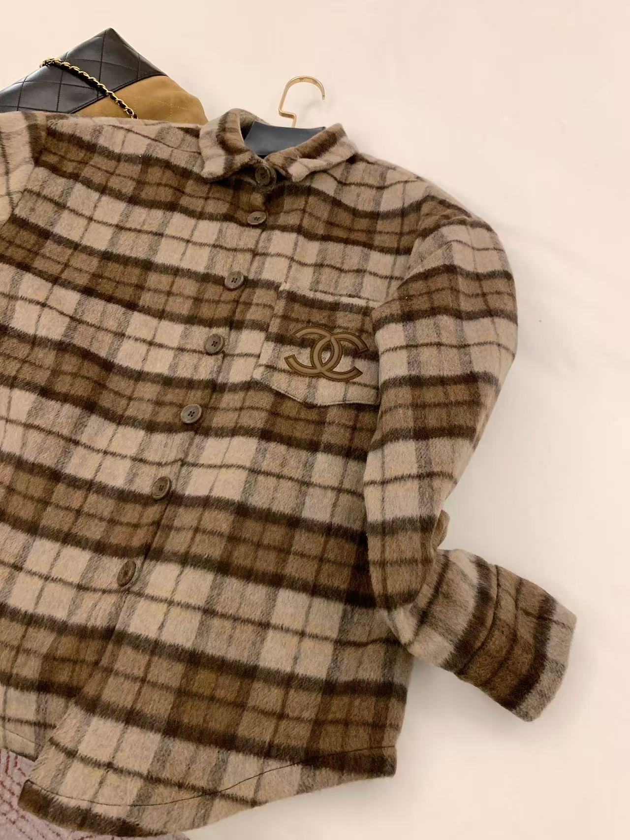 CHANE1 ダブルCチェックオーバーサイズシャツ【50%割引+送料無料】