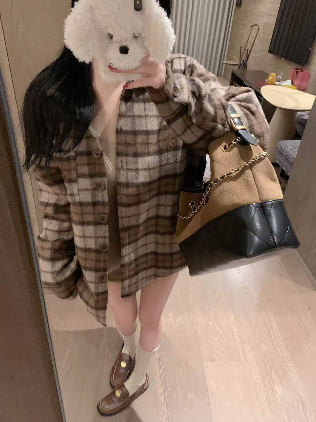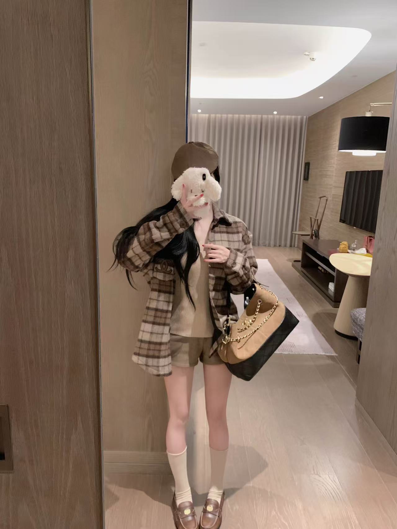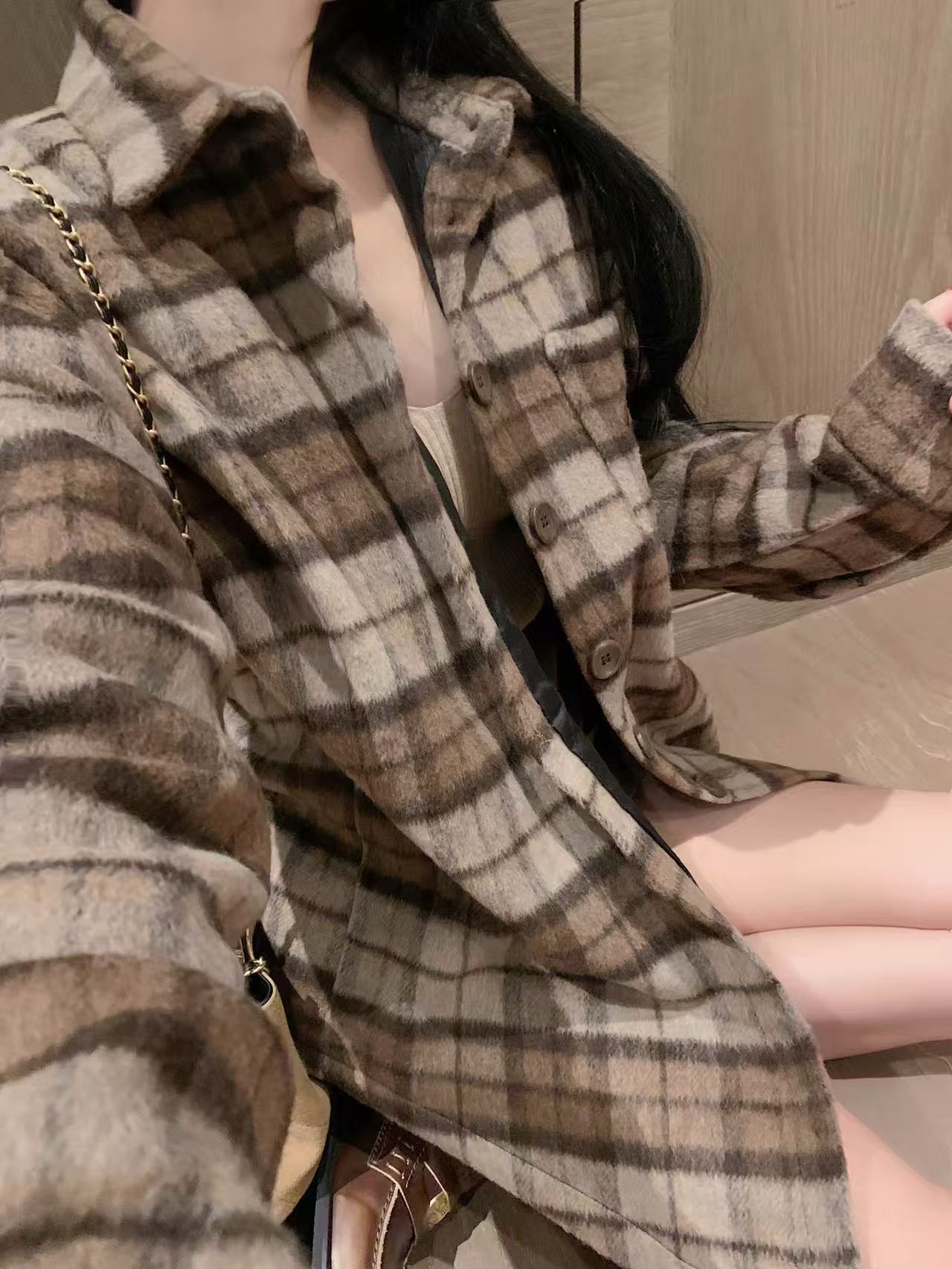 CHANE1 ダブルCチェックオーバーサイズシャツ【50%割引+送料無料】