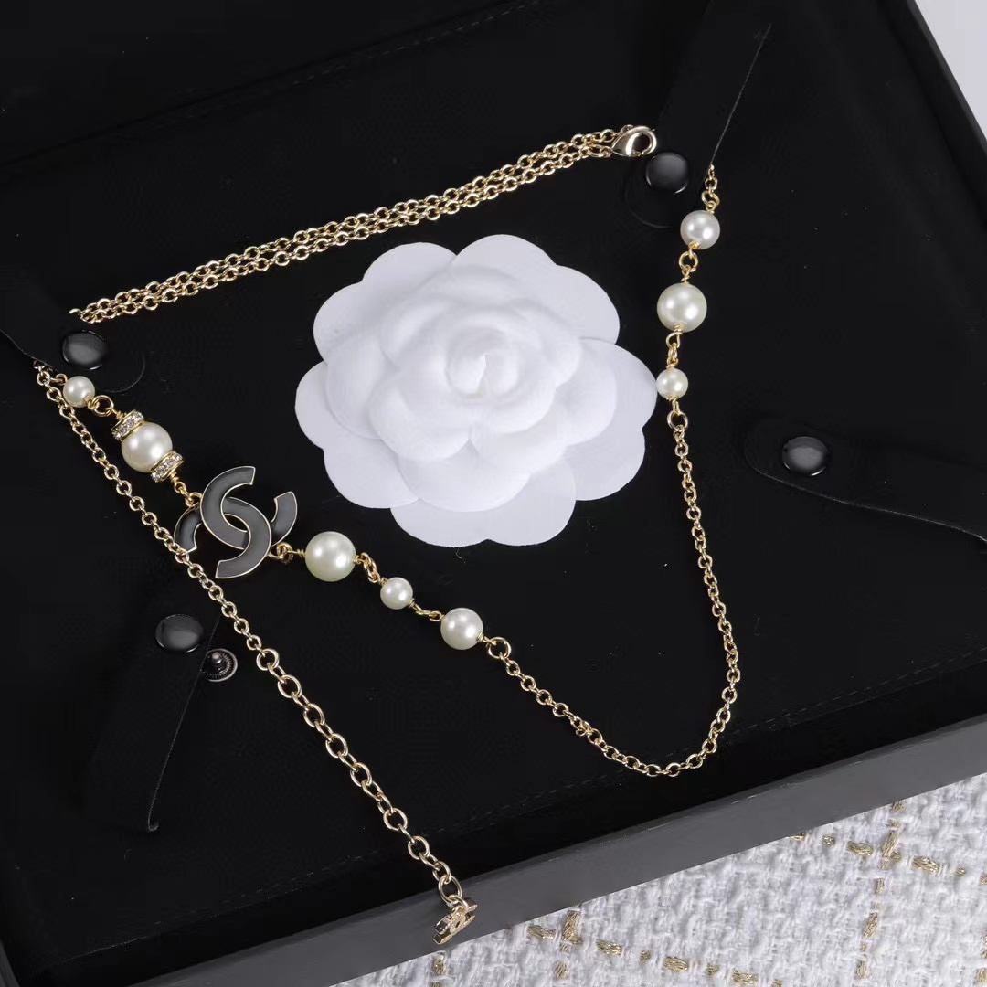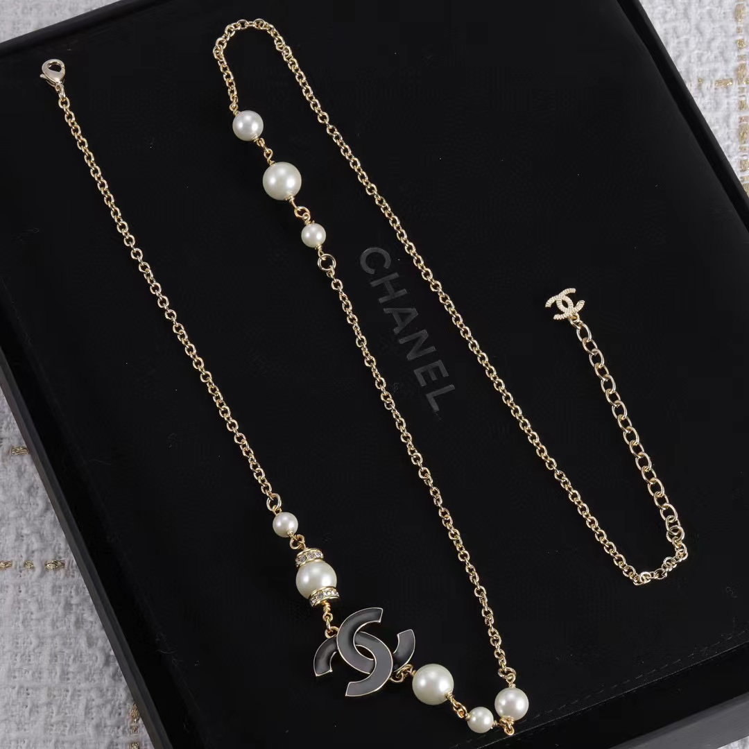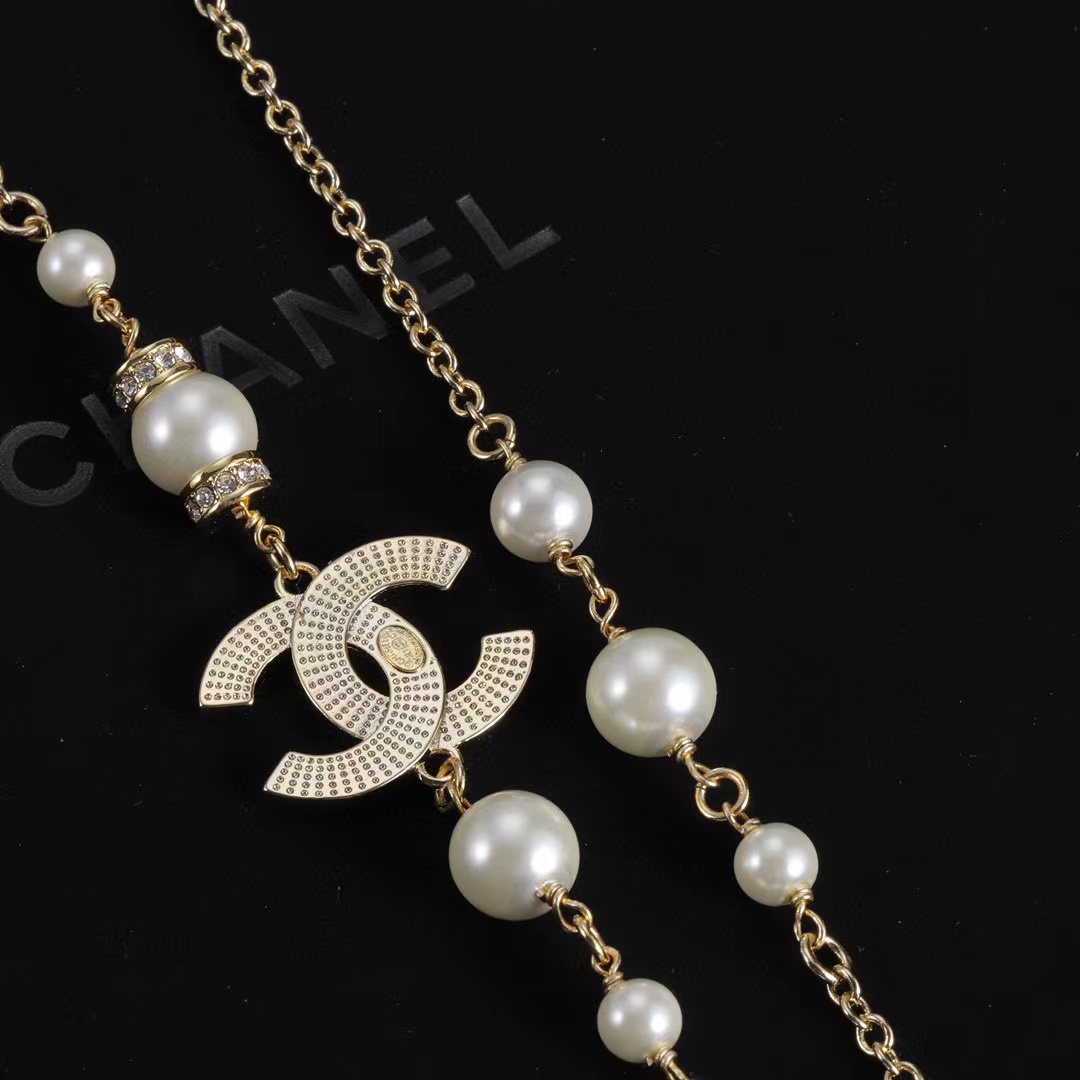 CHANE1 ダブルC ダイヤモンドパールネックレス
