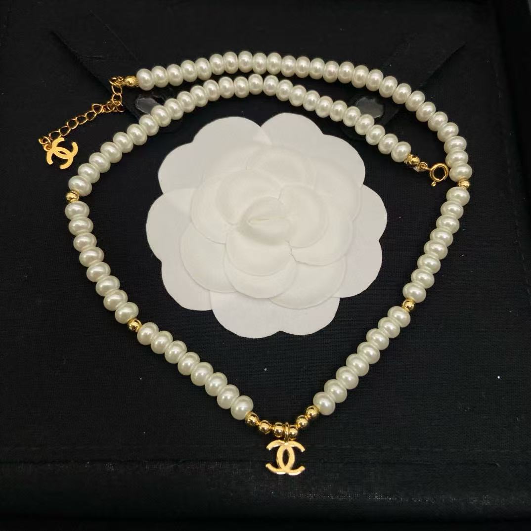CHANE1 ダブルCパールネックレス【50%割引+送料無料】