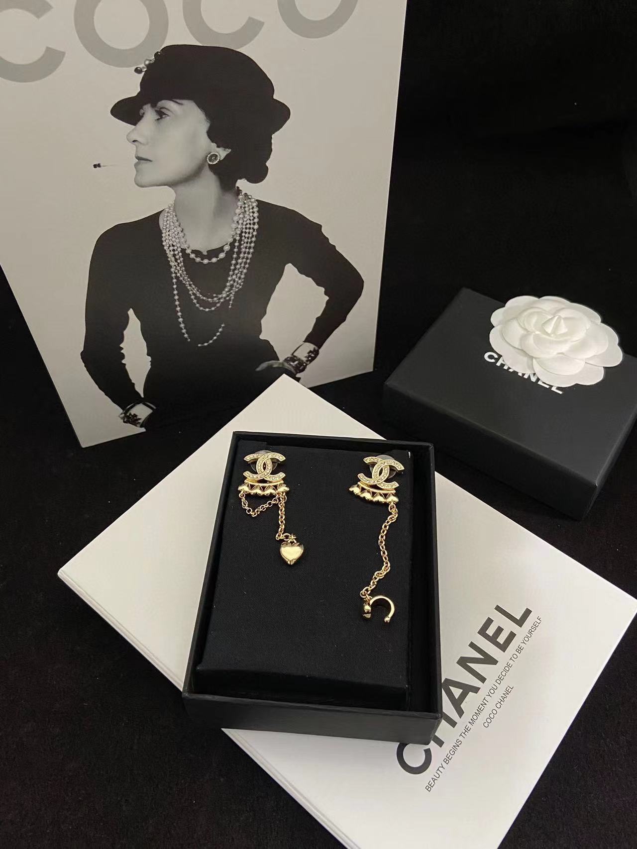 CHANE1 ピーチハート ダイヤモンド ダブルC ピアス【50%割引+送料無料】