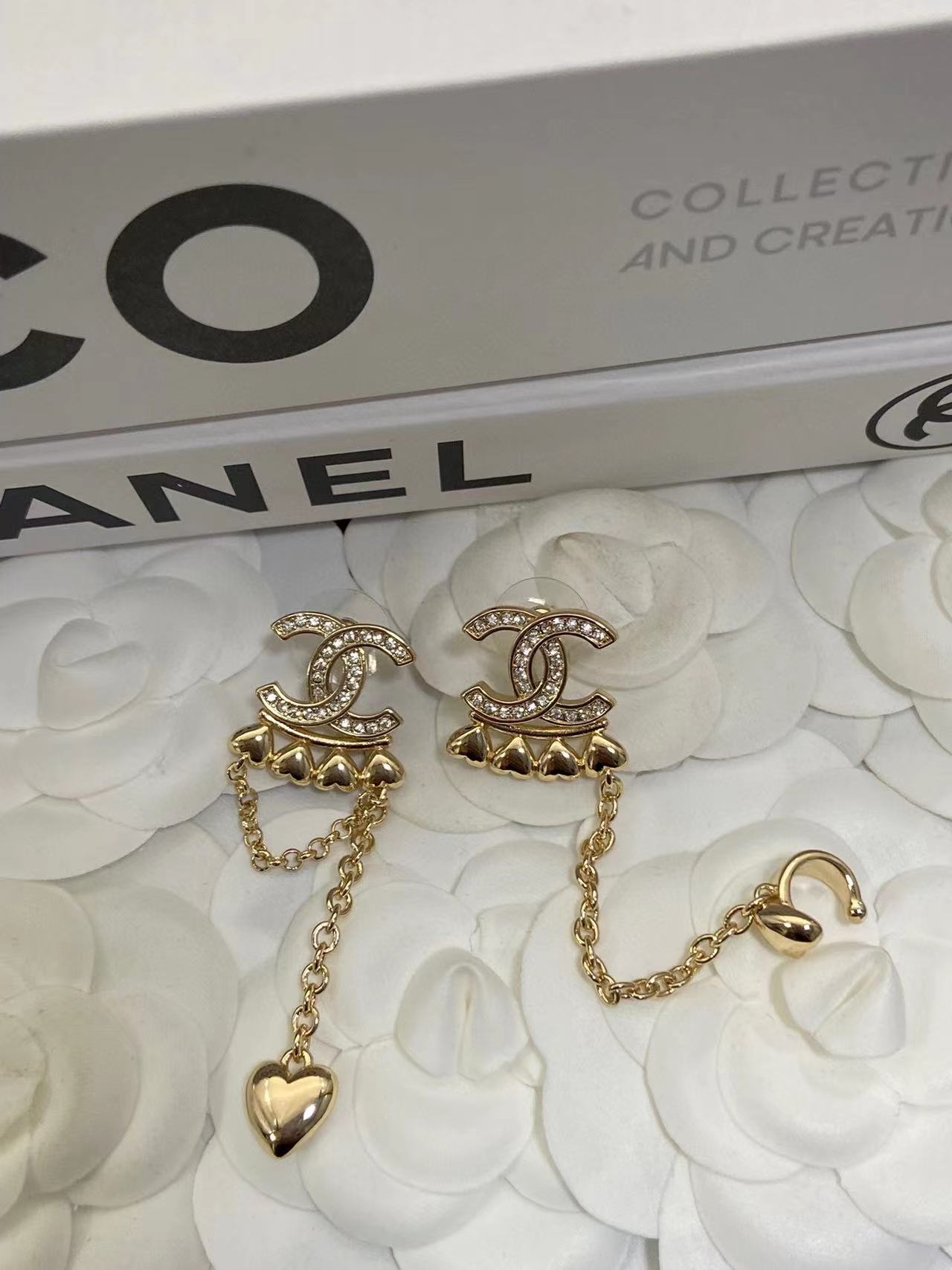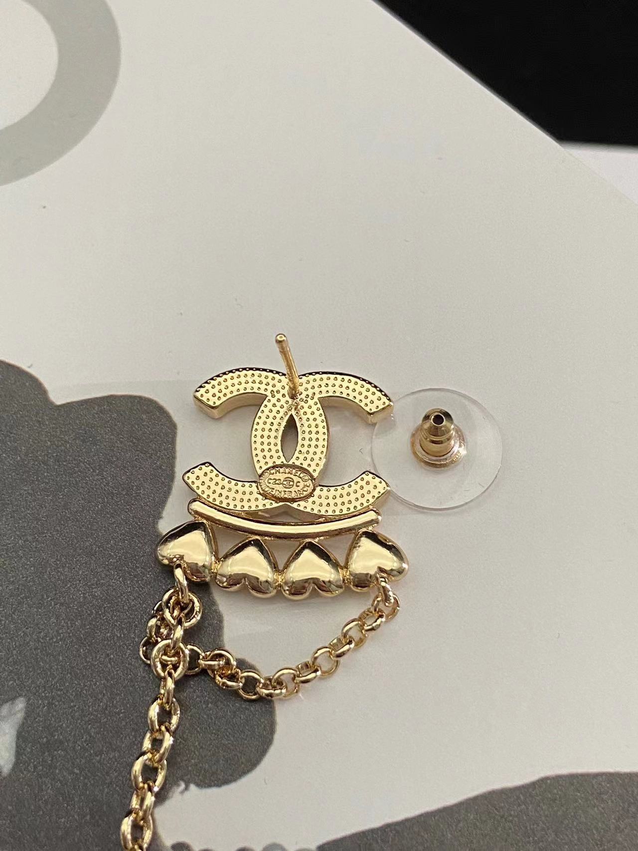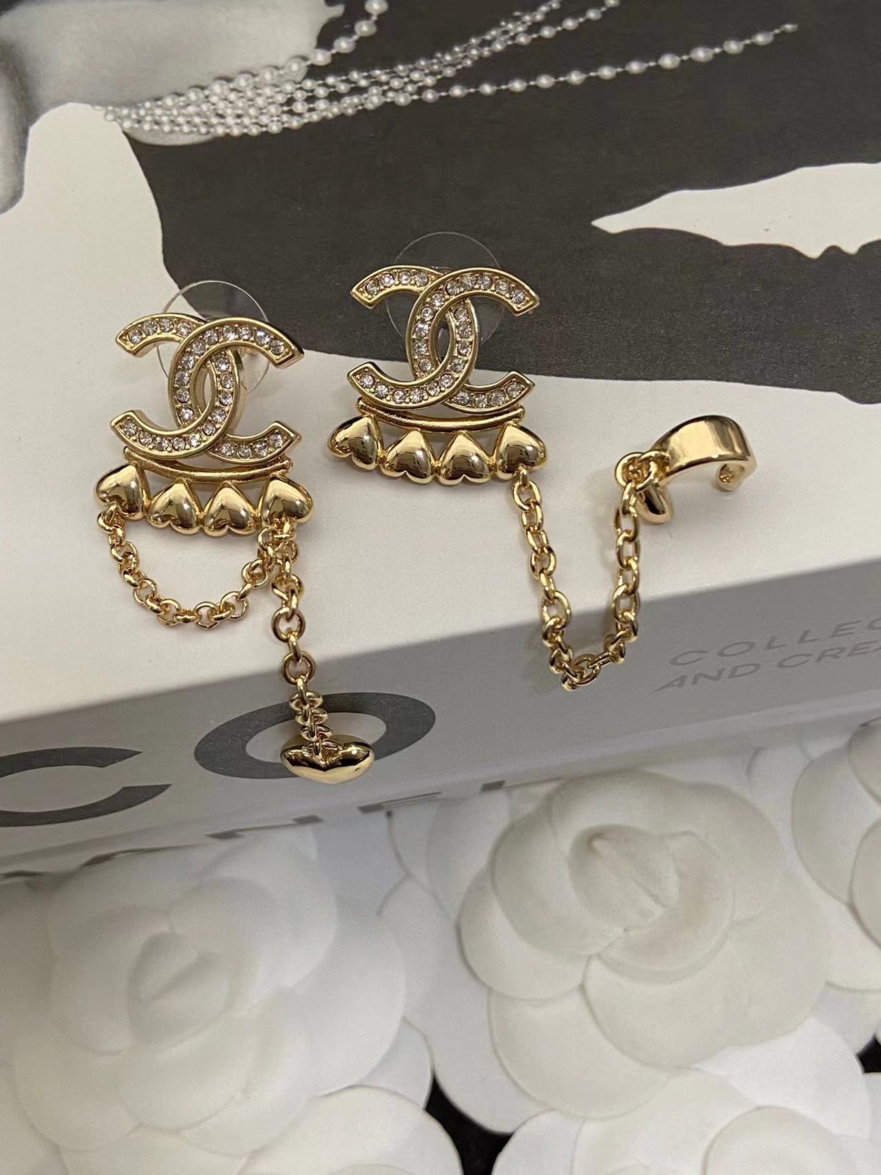 CHANE1 ピーチハート ダイヤモンド ダブルC ピアス