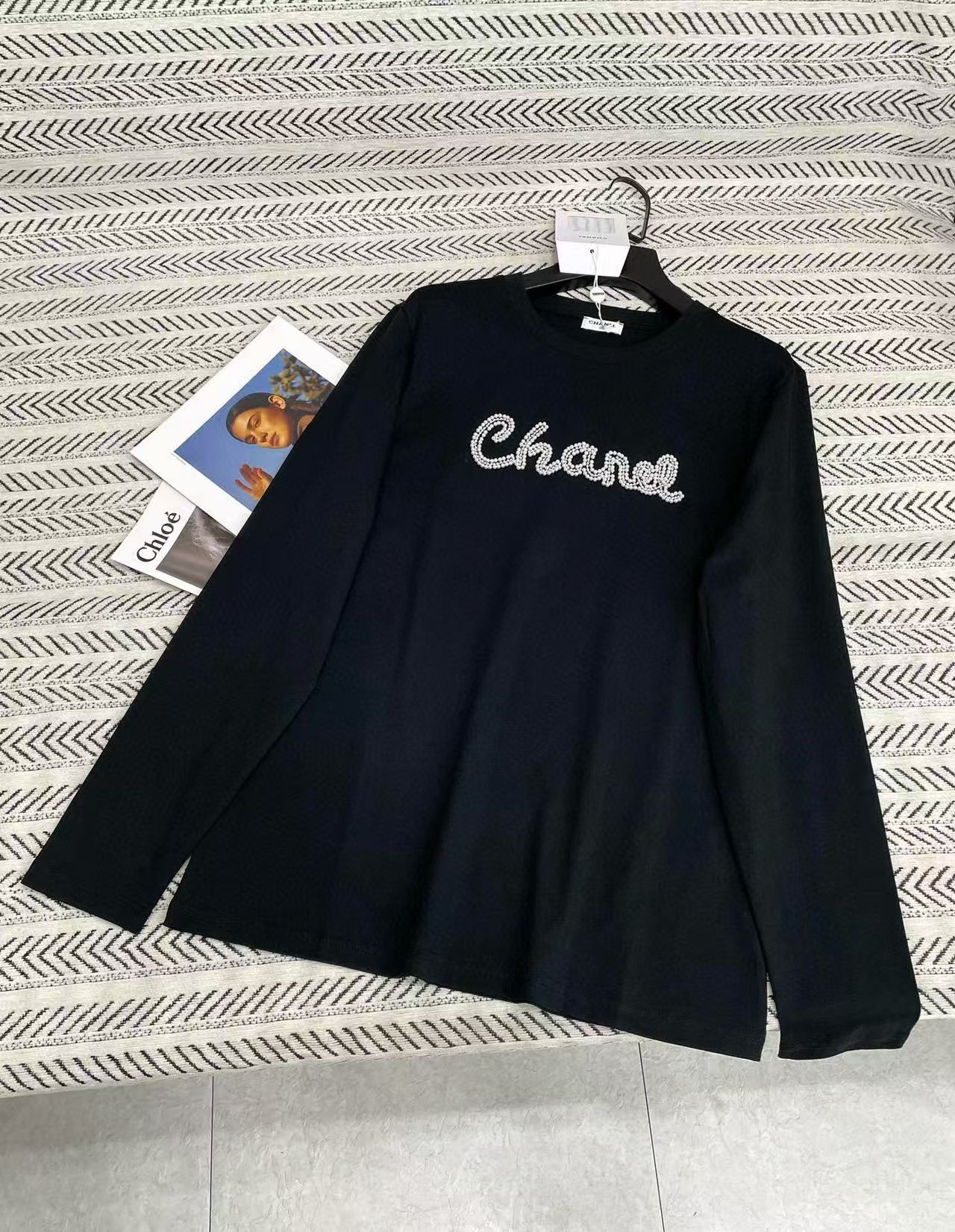 CHANE1 ハンドビーズレタリング ロングスリーブTシャツ【50%割引+送料無料】