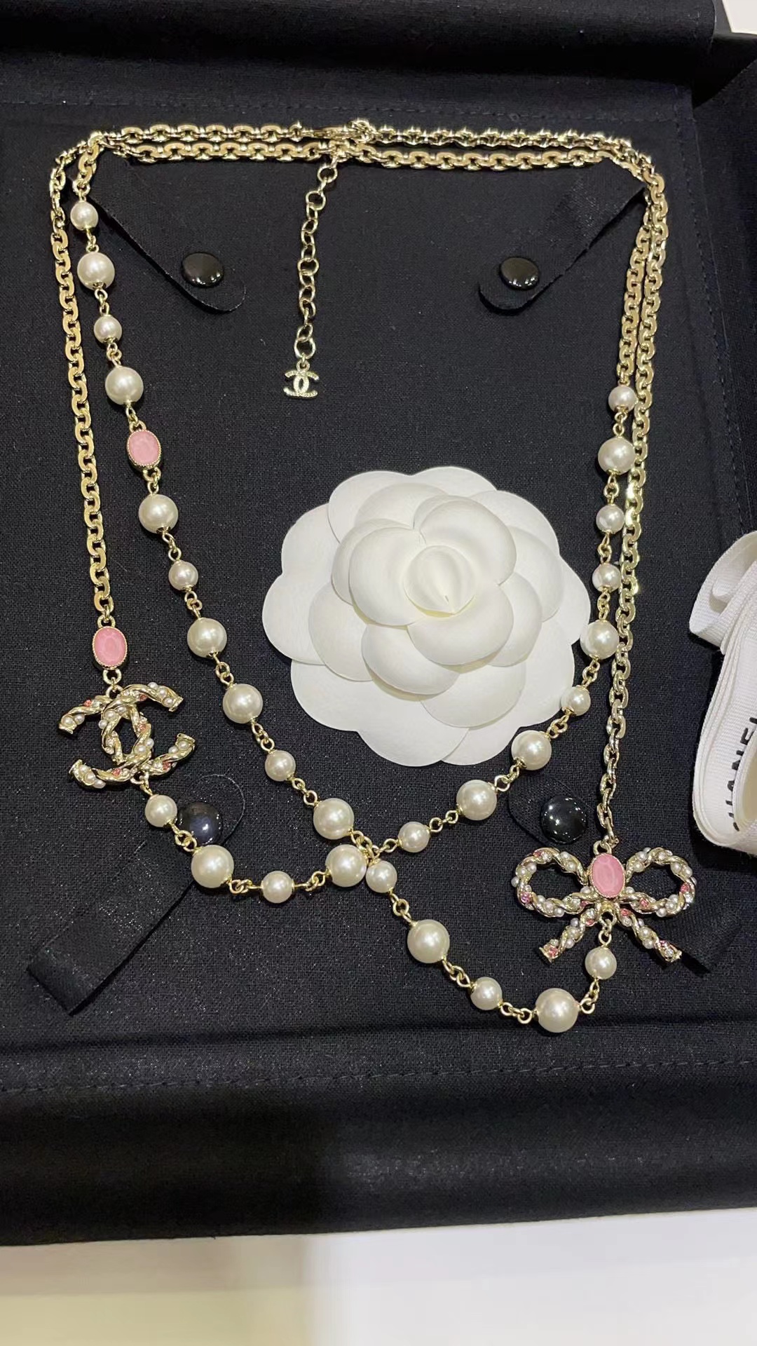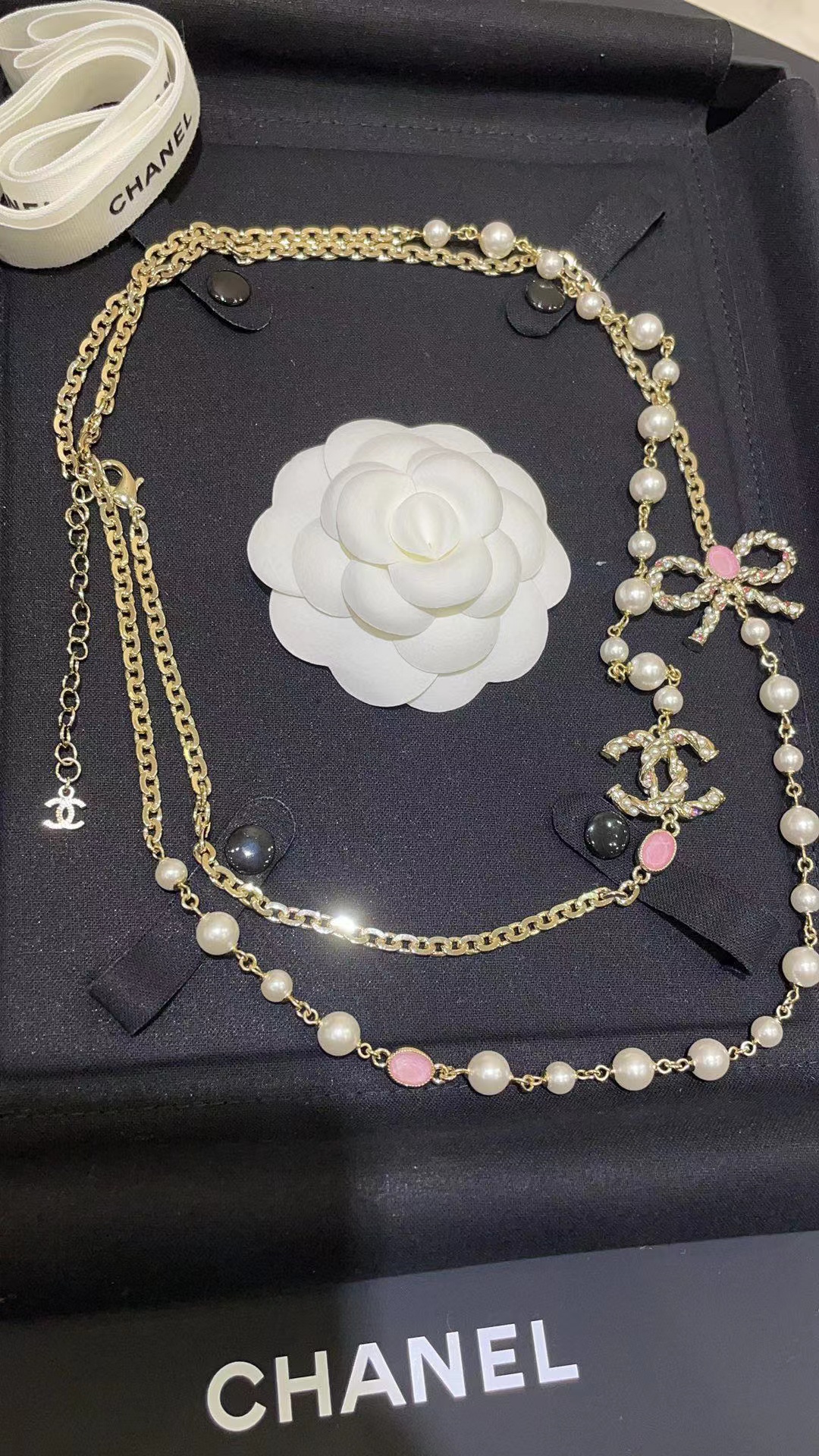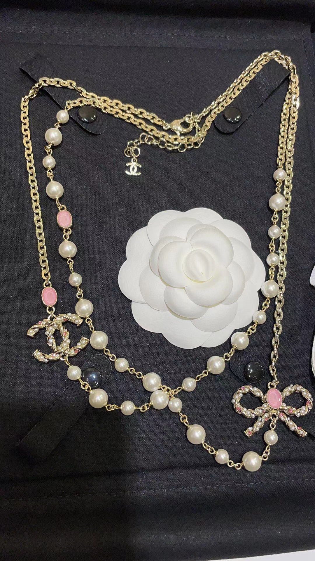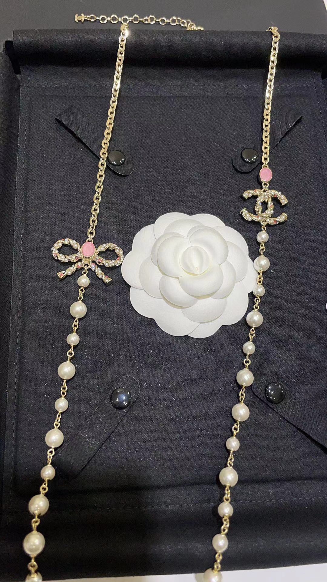 CHANE1 ピンク クリスタル パール セーター チェーン