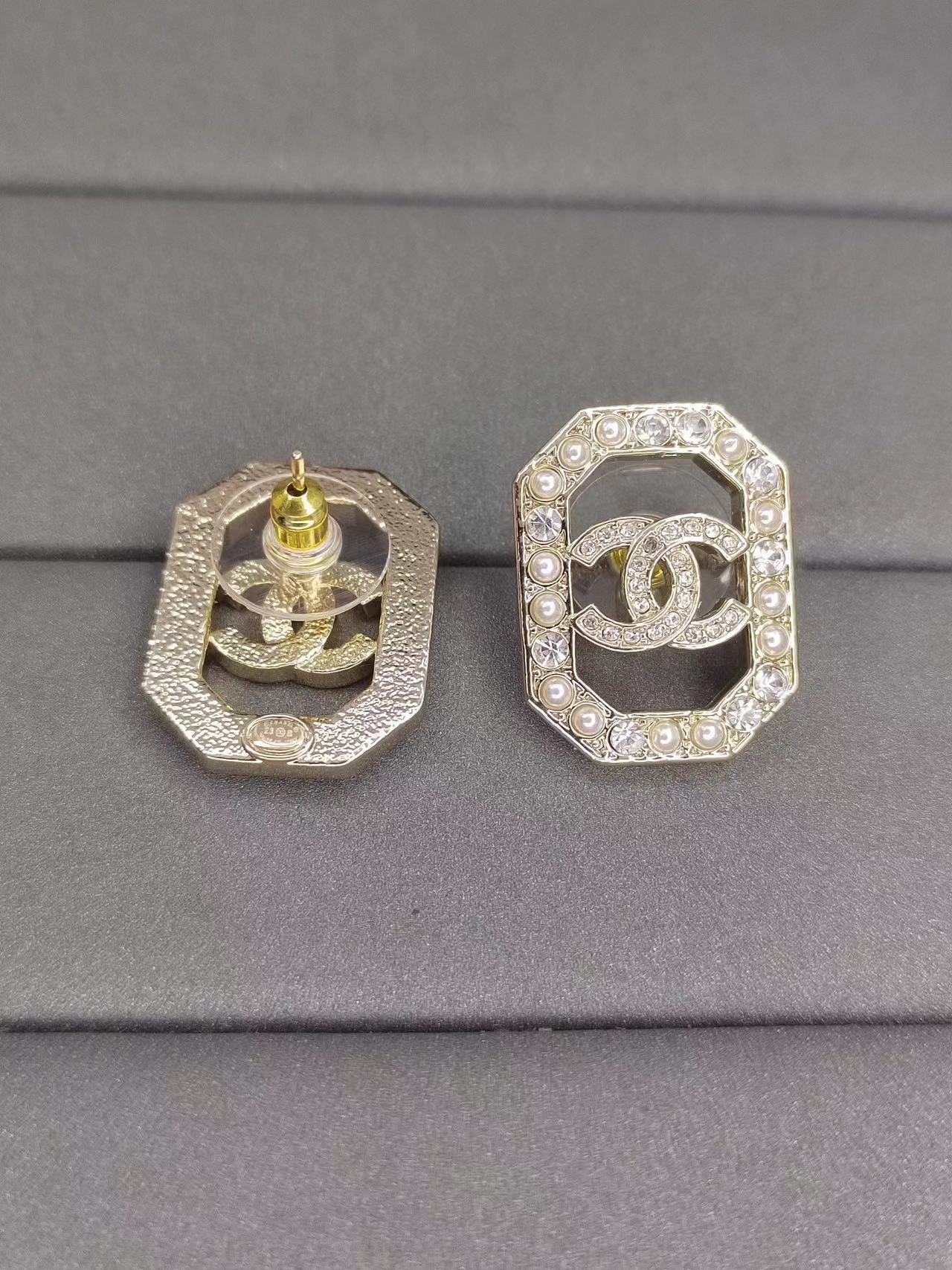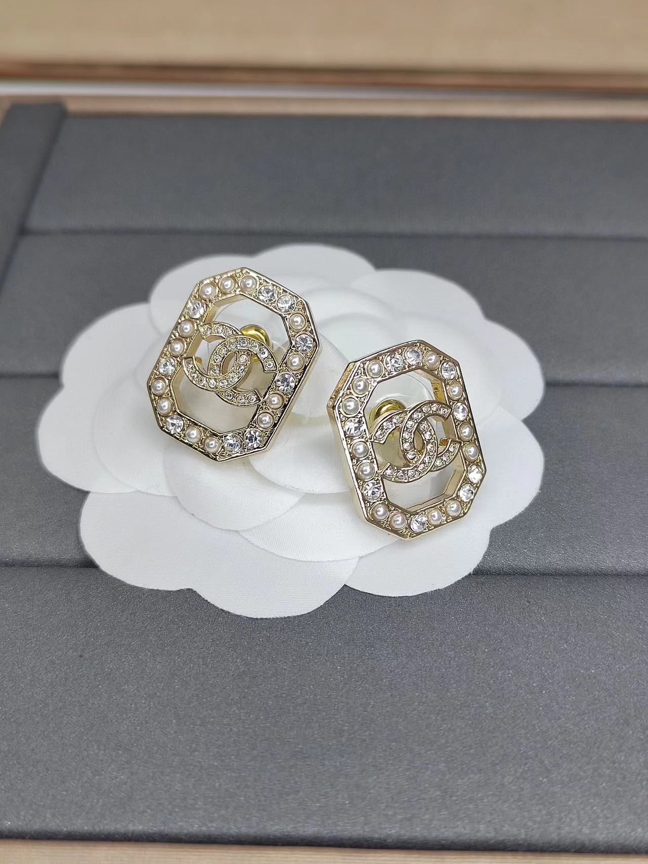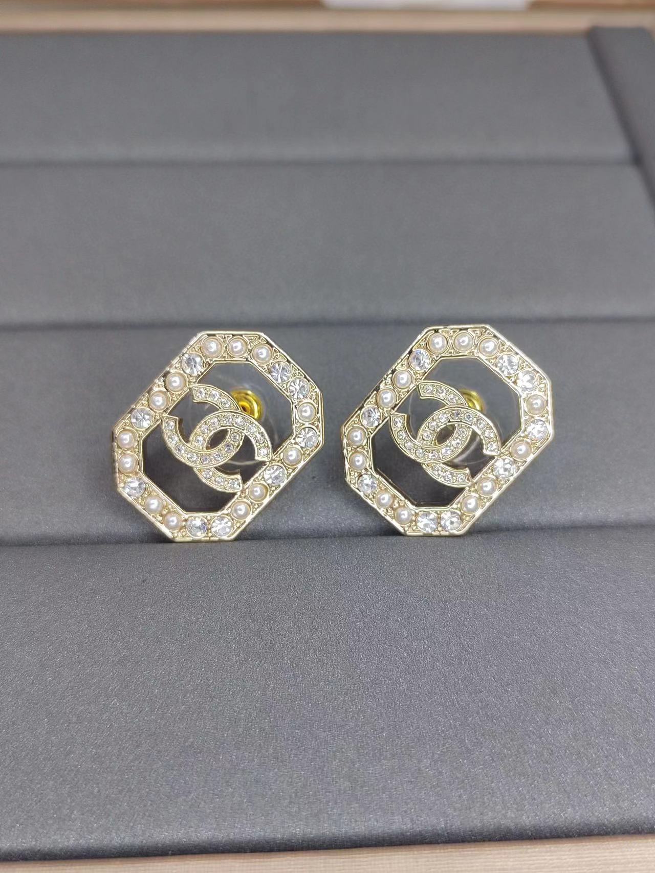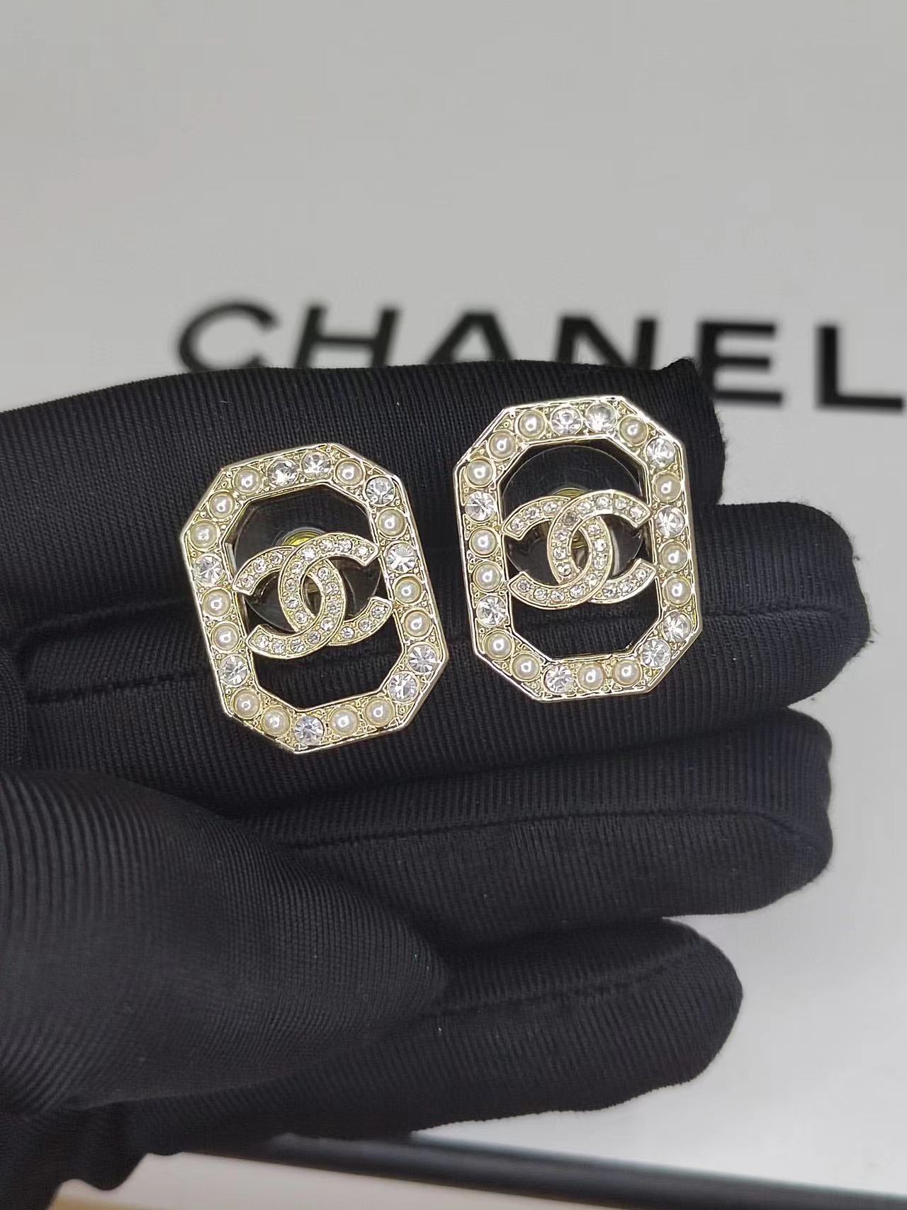 CHANE1 新作 ダブルC ダイヤモンド パール イヤリング
