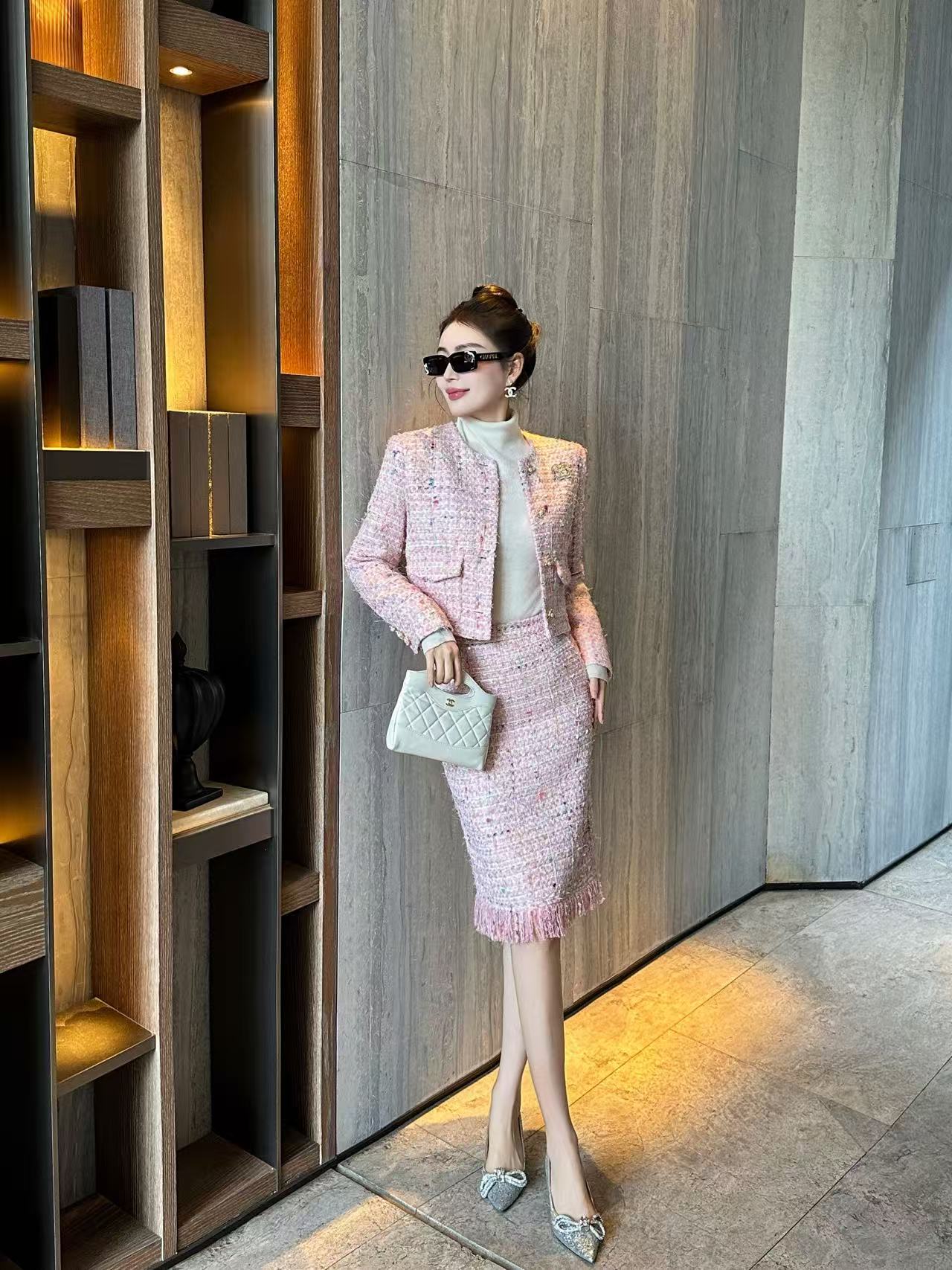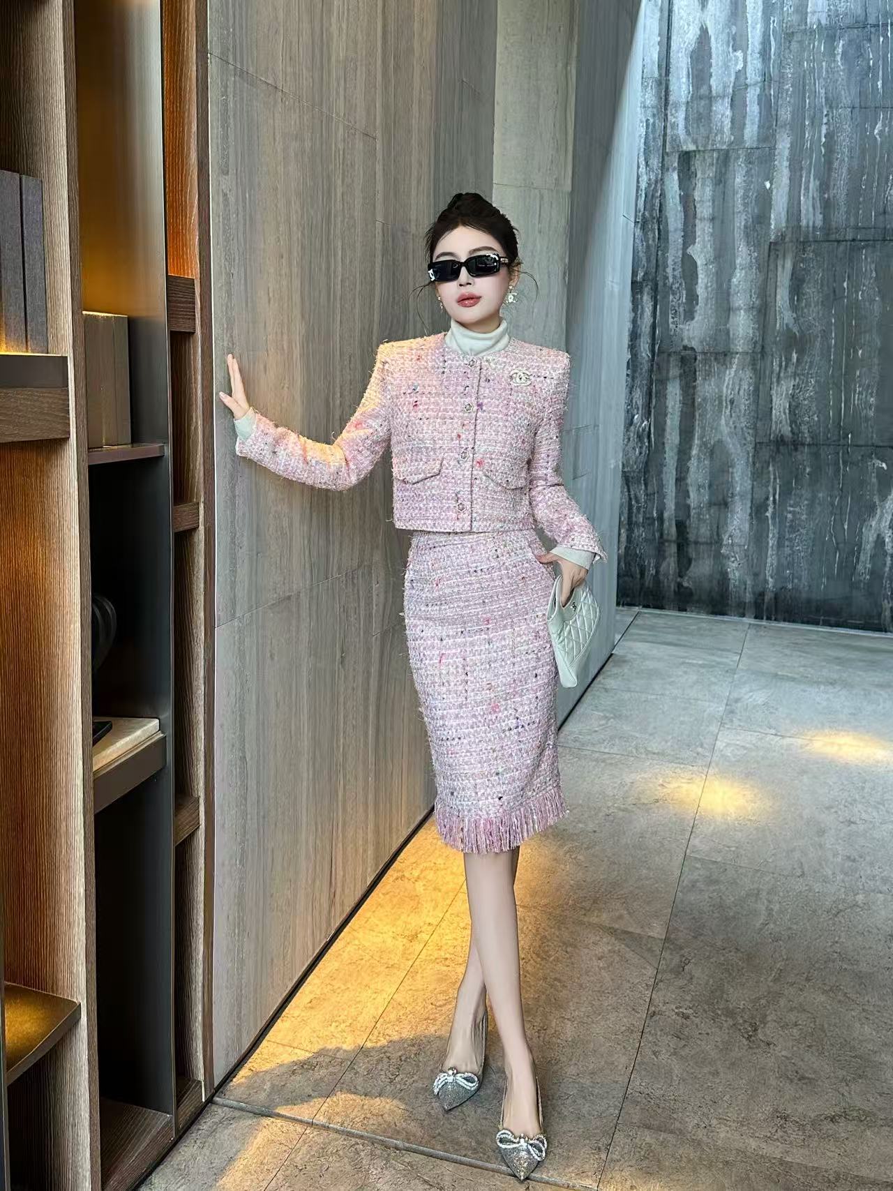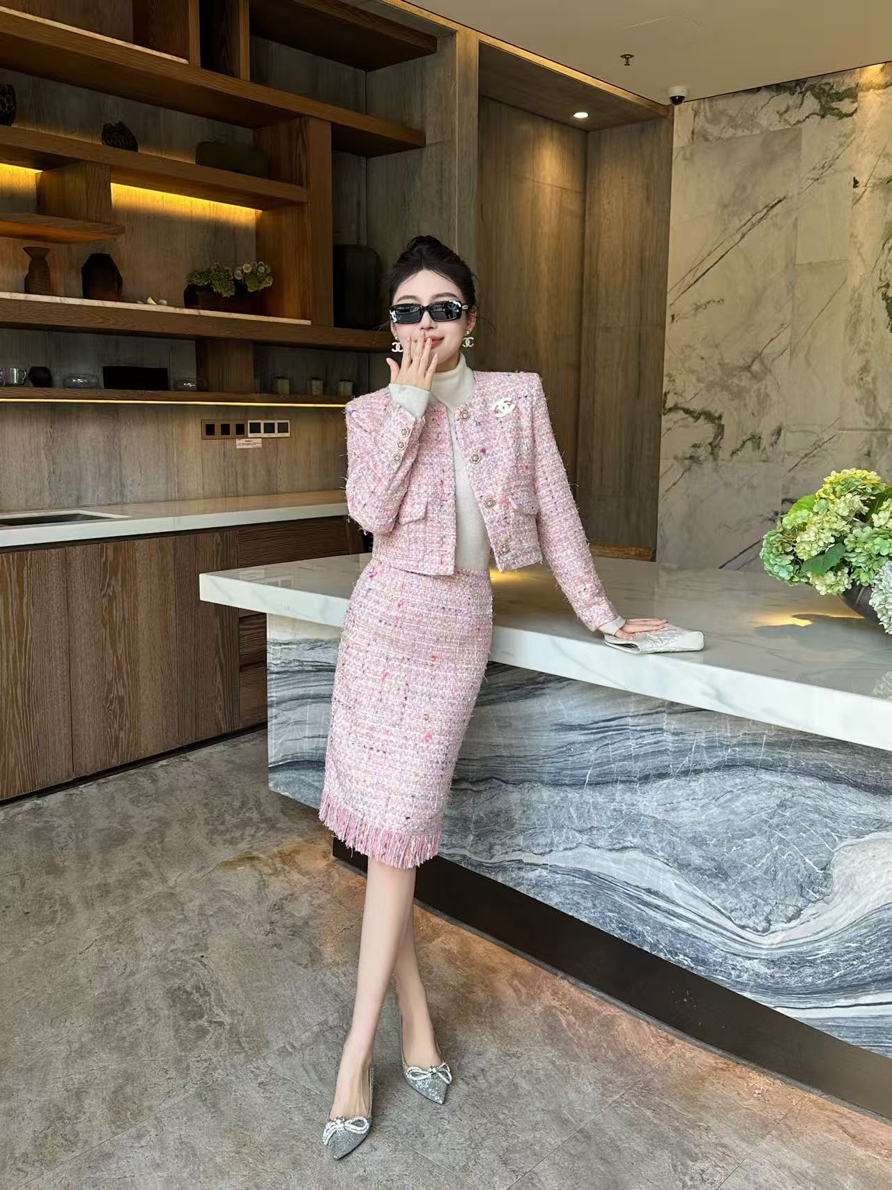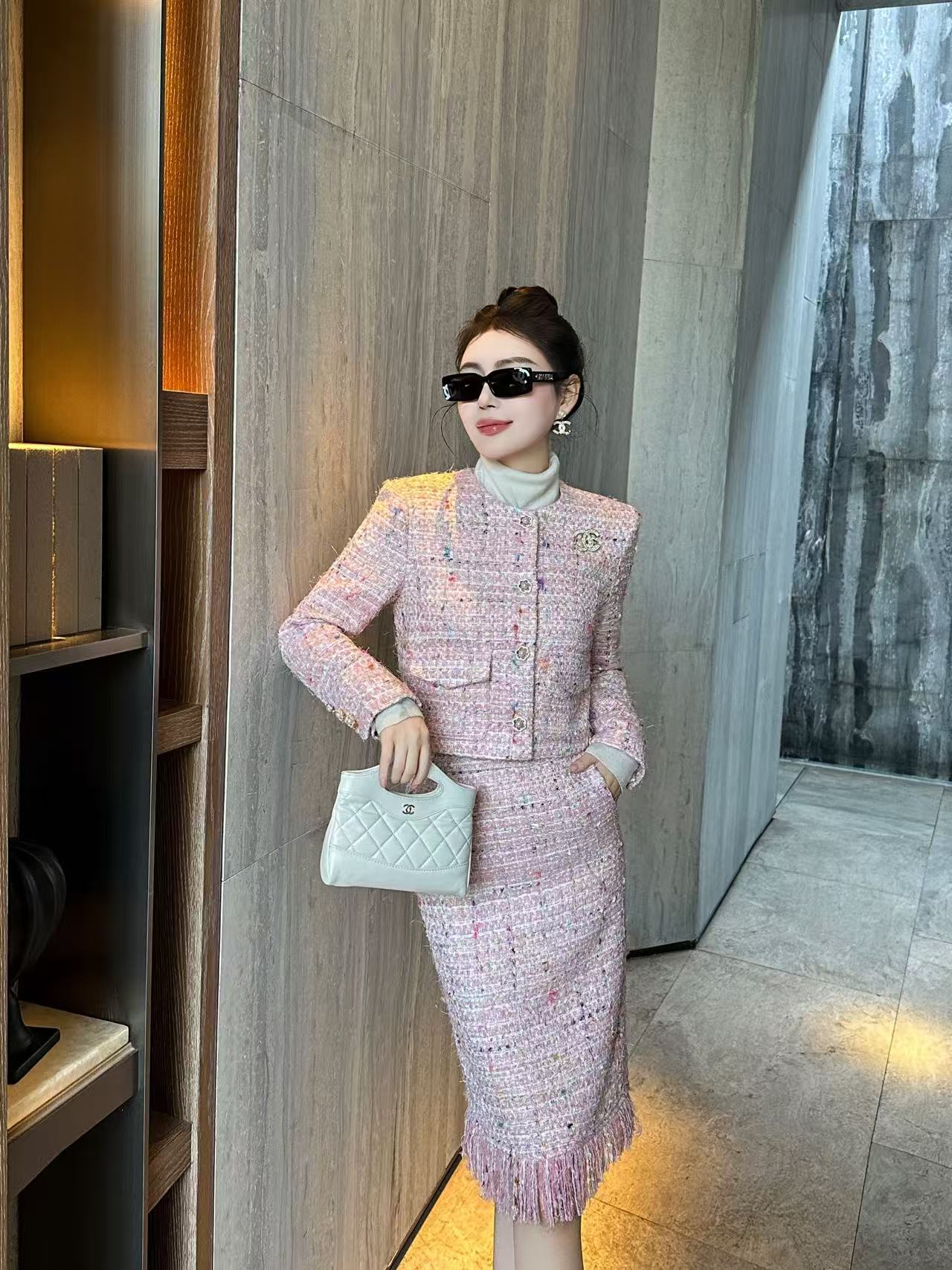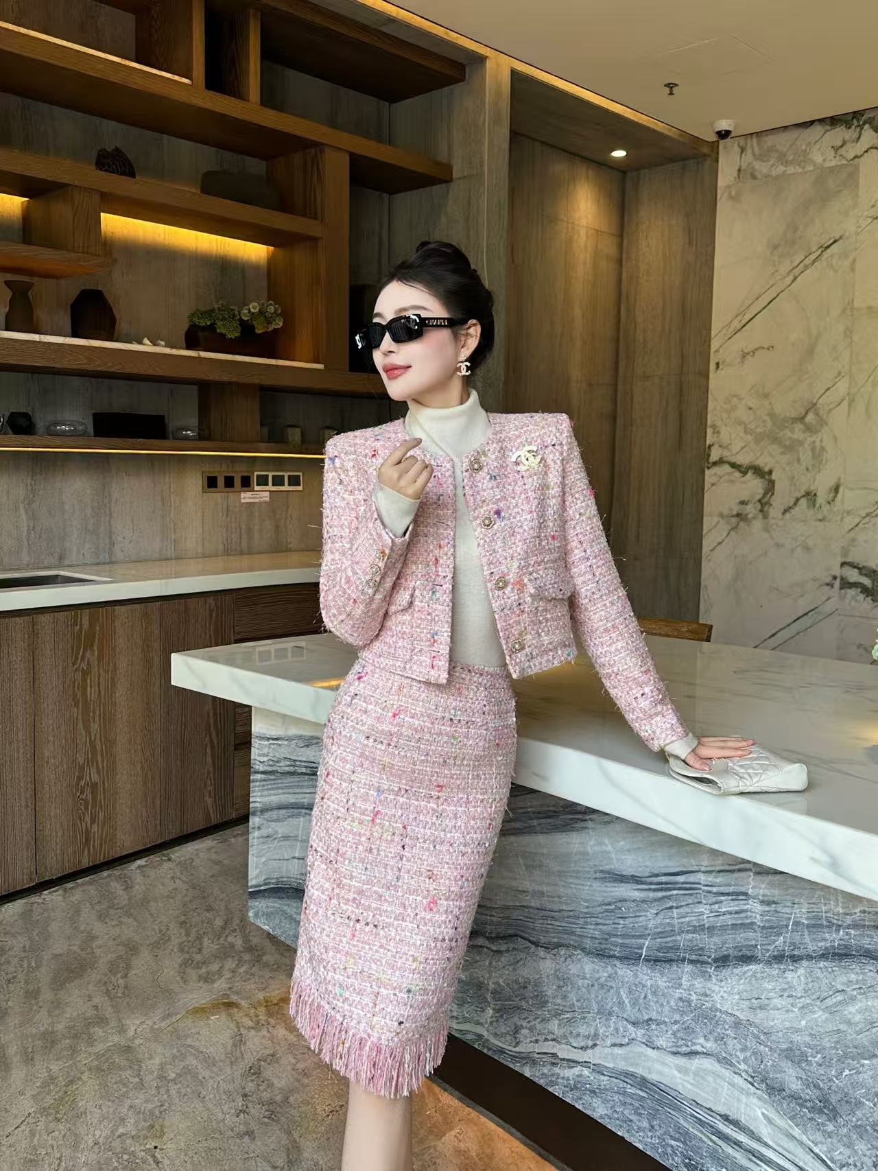 CHANE1 高品質ダブルCジャケット+スカート ツーピースセット【50%割引+送料無料】