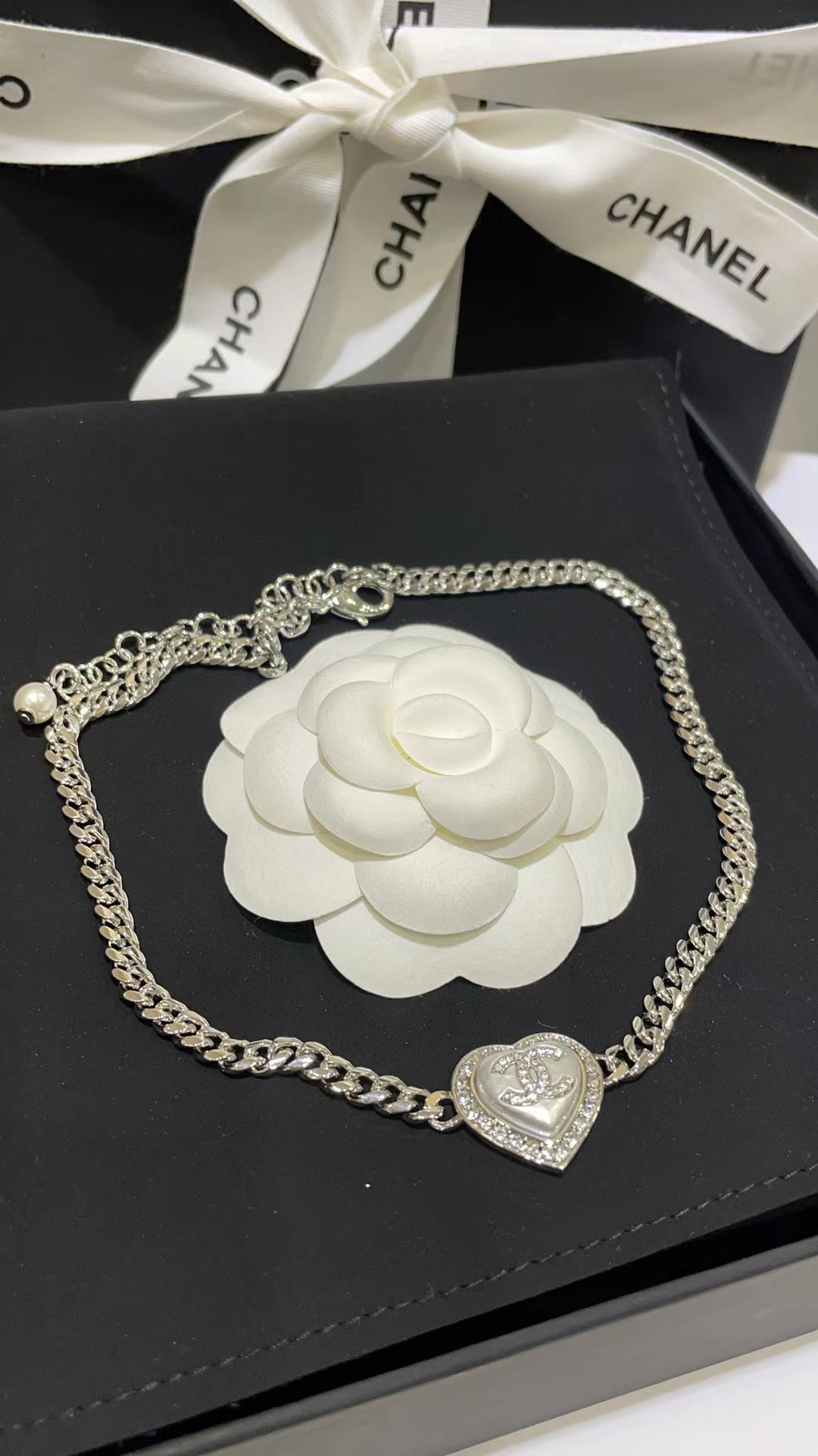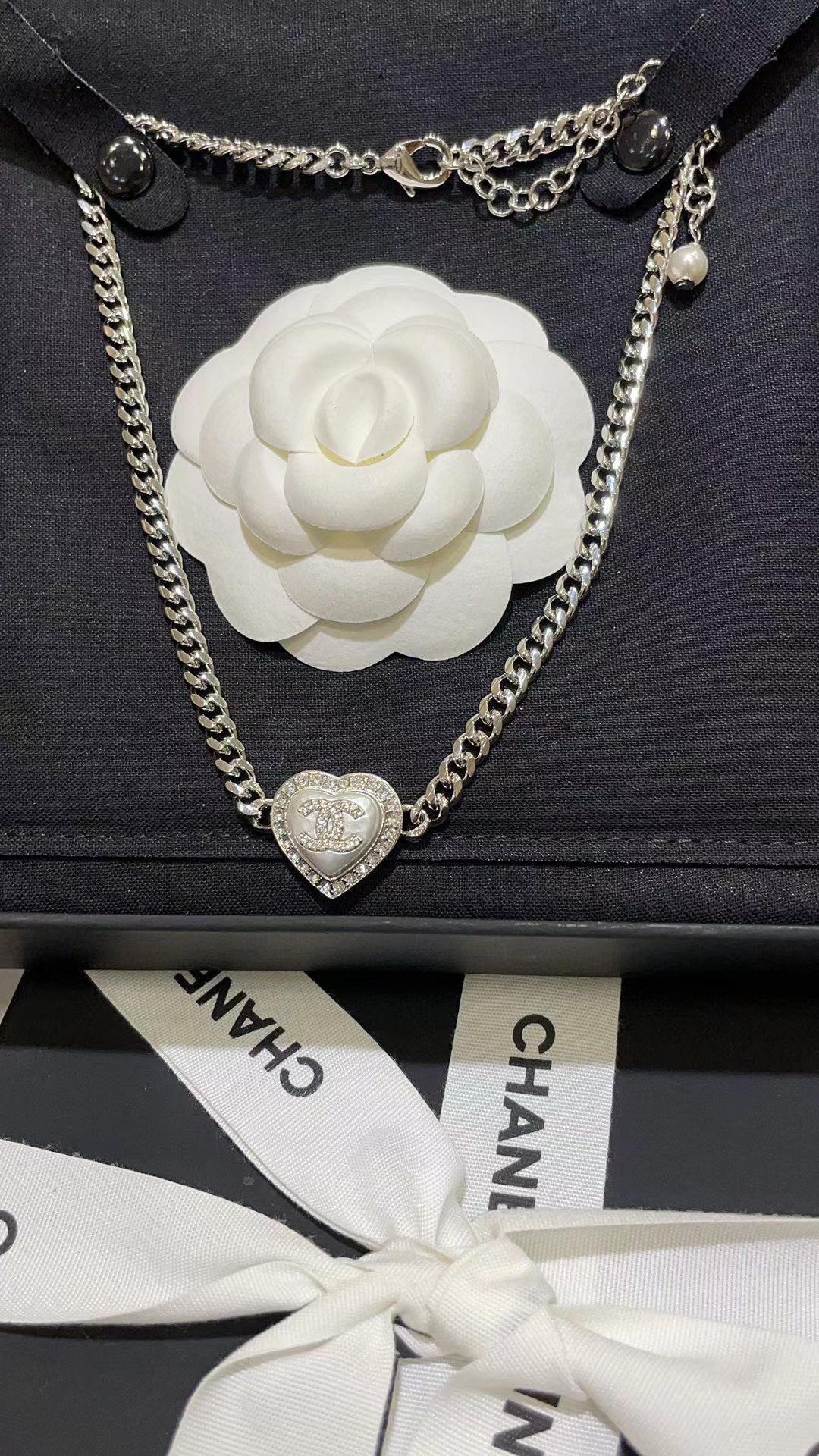CHANE1 ハートフルダイヤモンド ダブルC ネックレス
