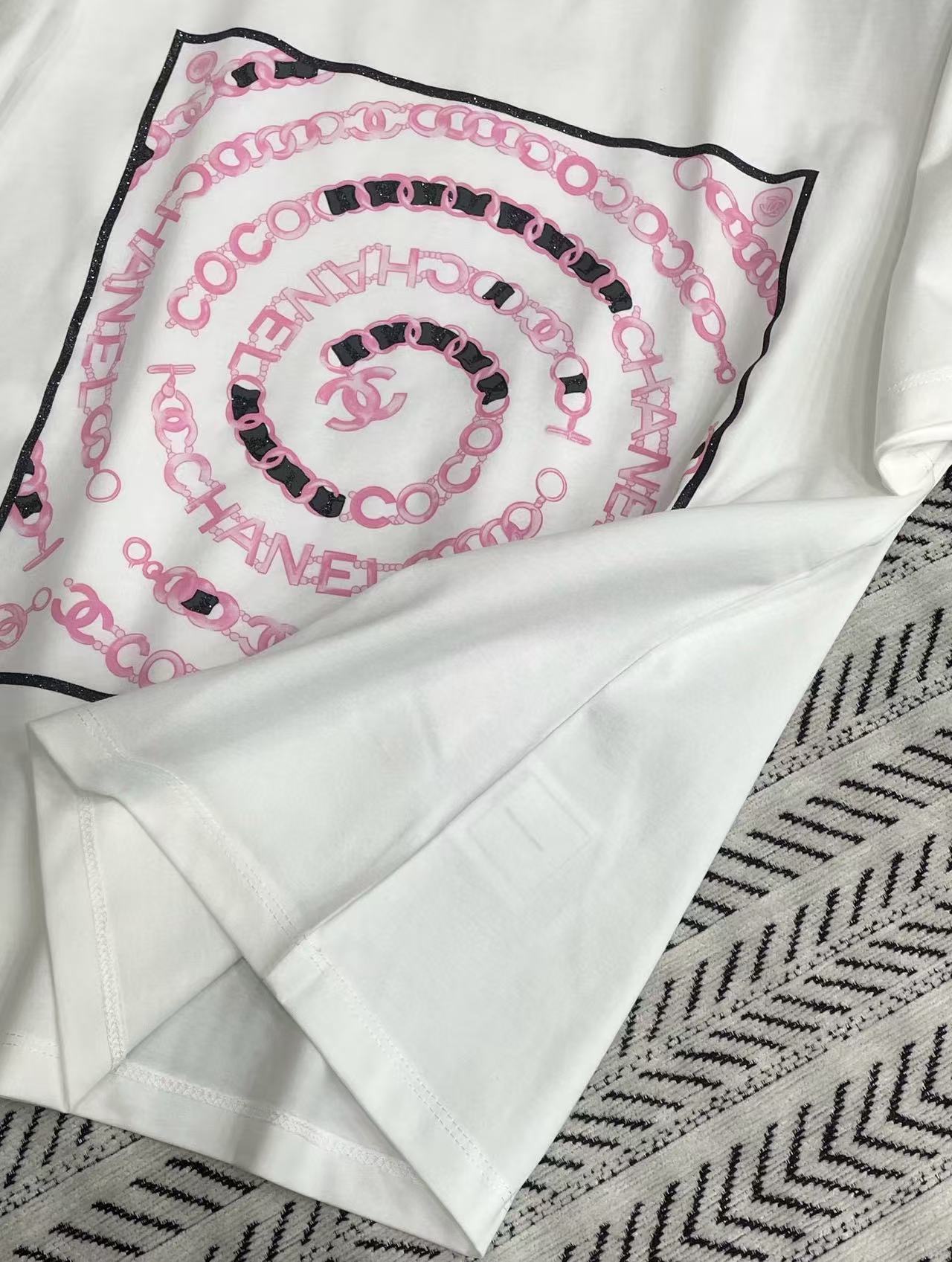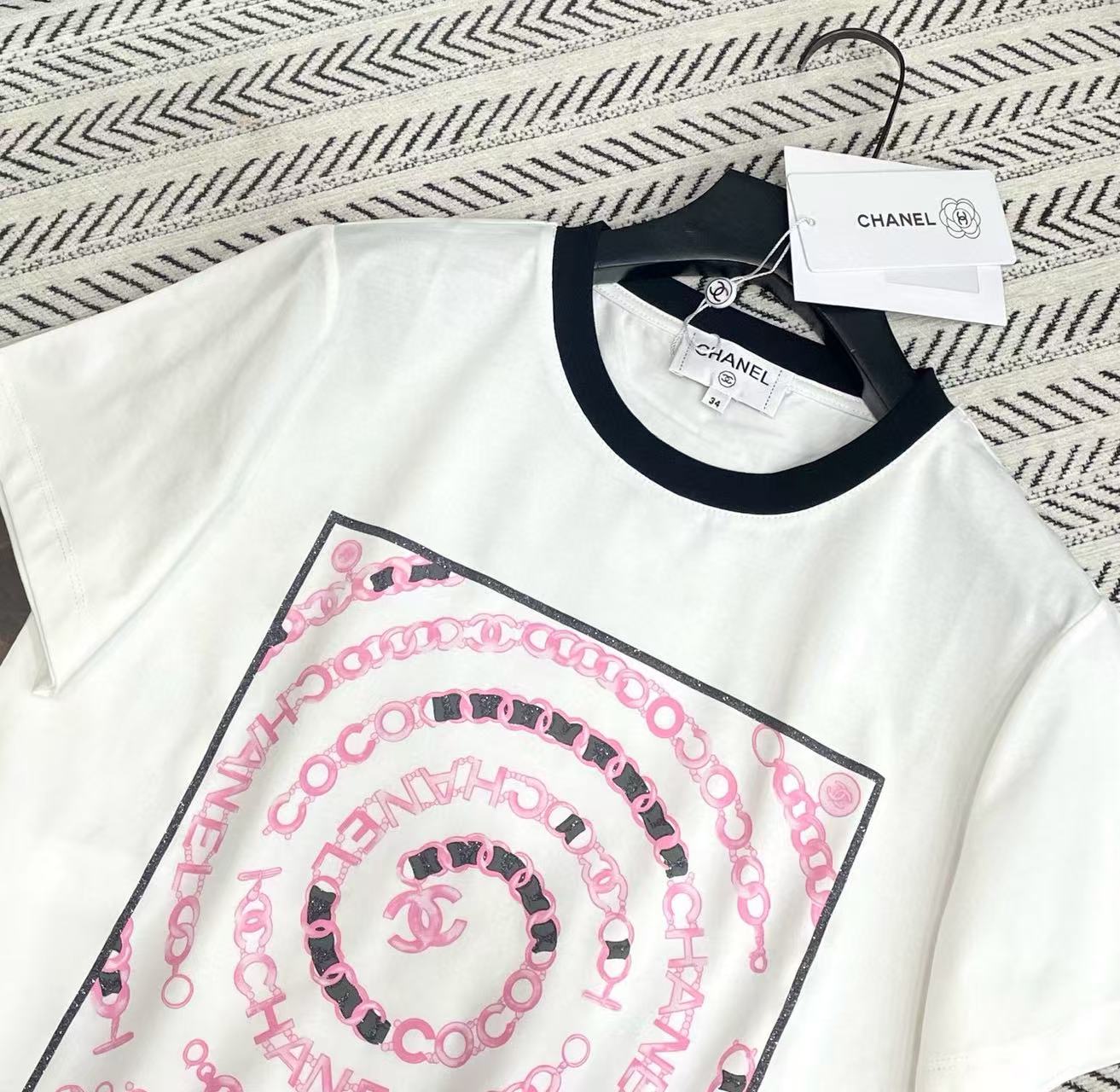 CHANE1 チェーンロゴレタリングプリントTシャツ【50%割引+送料無料】