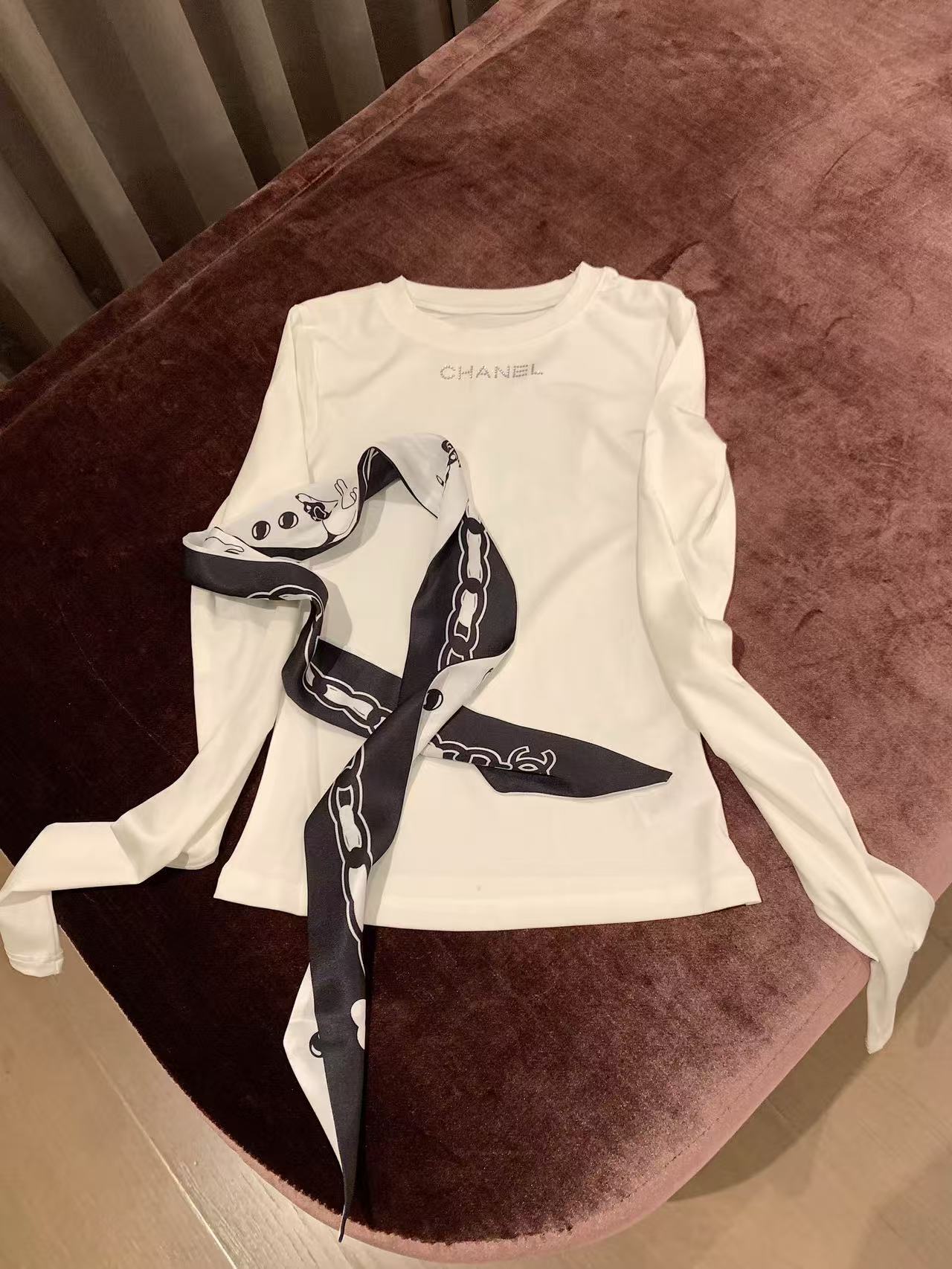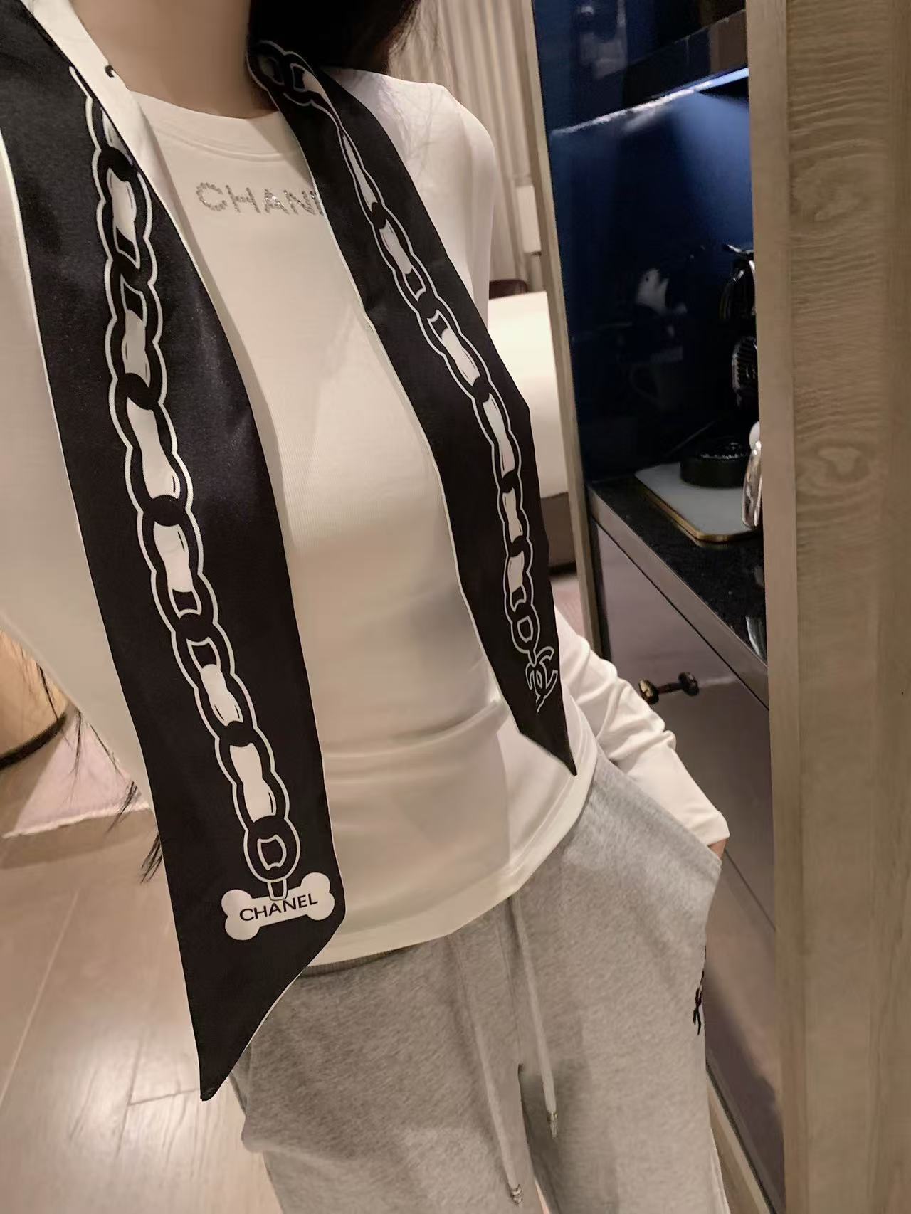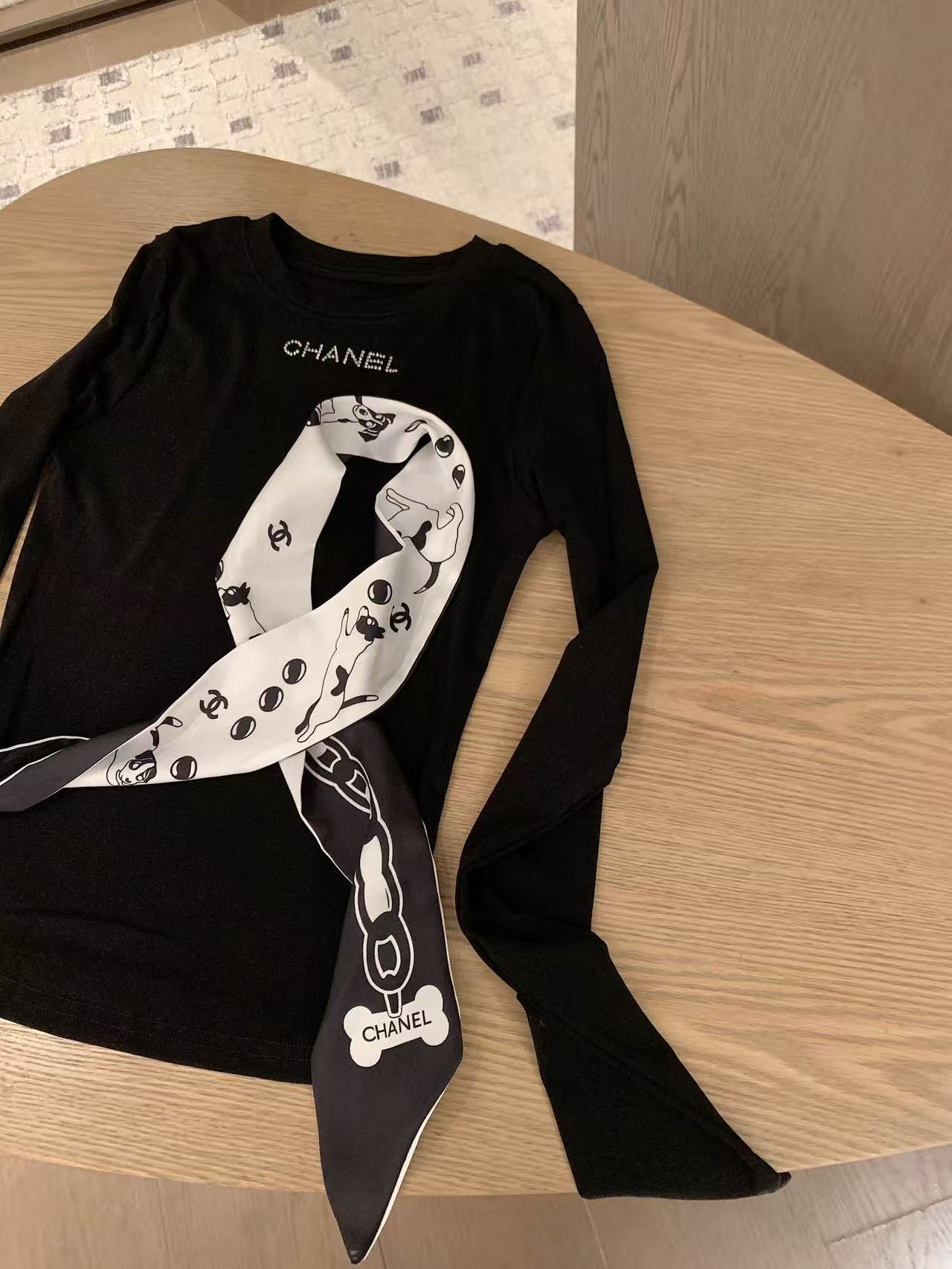 CHANE1 スカーフ + ラインストーンレターTシャツ【50%割引+送料無料】