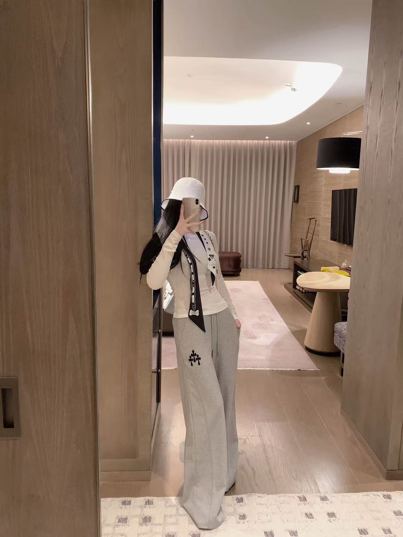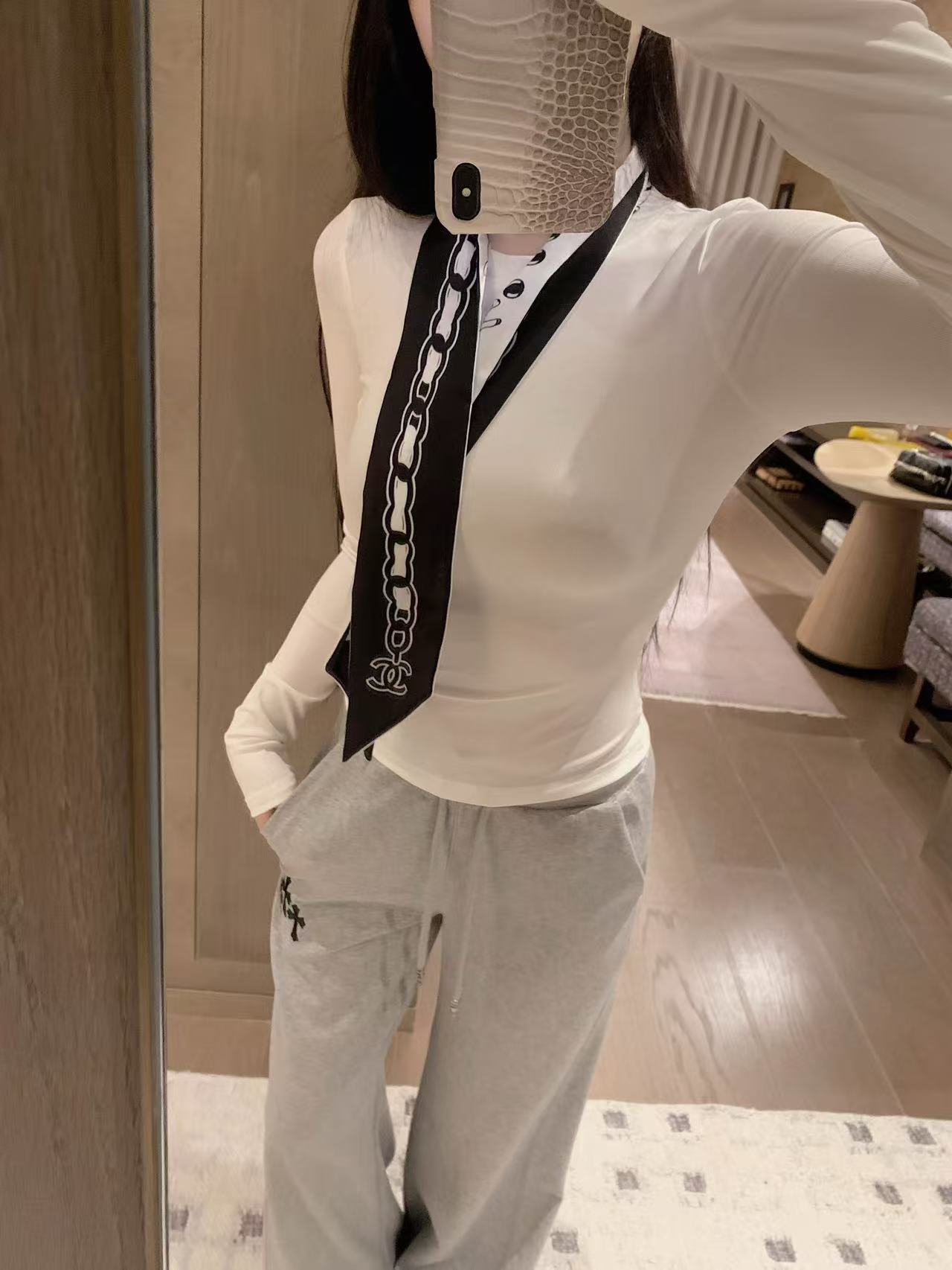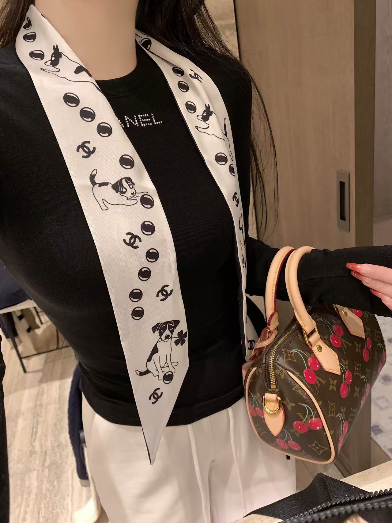 CHANE1 スカーフ + ラインストーンレターTシャツ【50%割引+送料無料】