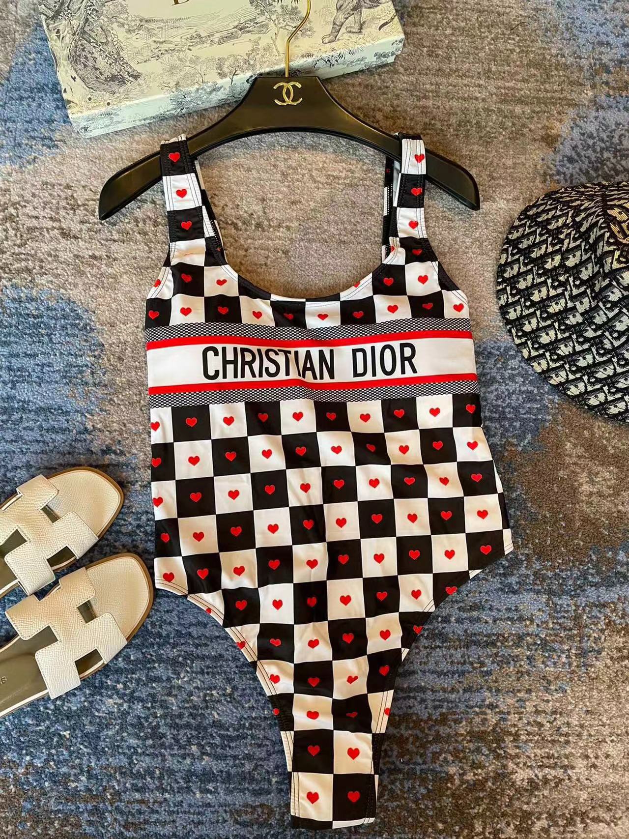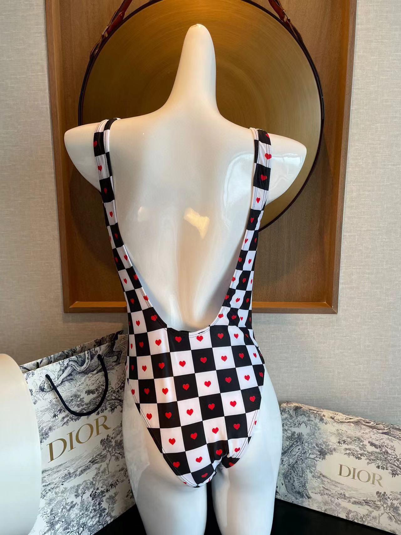 DI0R ハートチェック柄ワンピース水着【50%割引+送料無料】