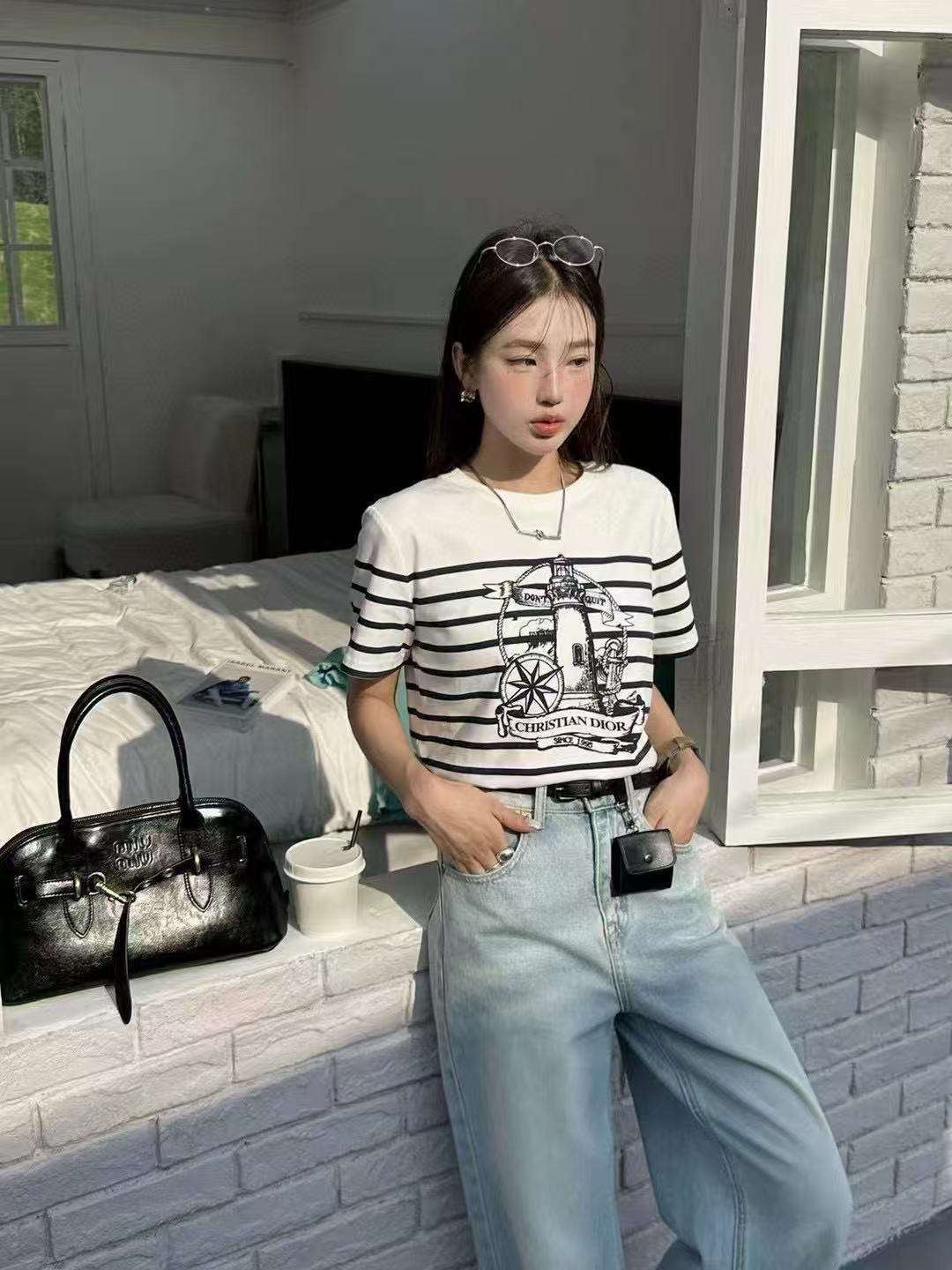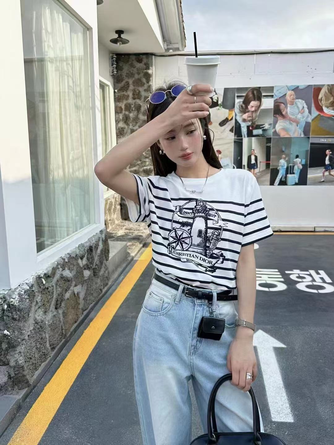 DI0RプリントストライプTシャツ【50%割引+送料無料】