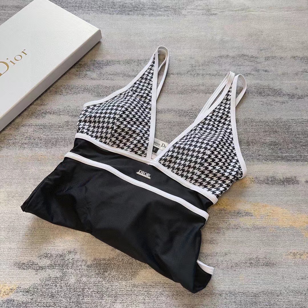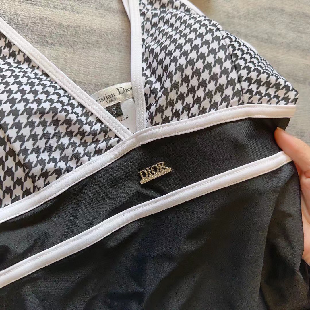 DI0R カラーブロック Vネック 千鳥格子 ワンピース水着【50%割引+送料無料】