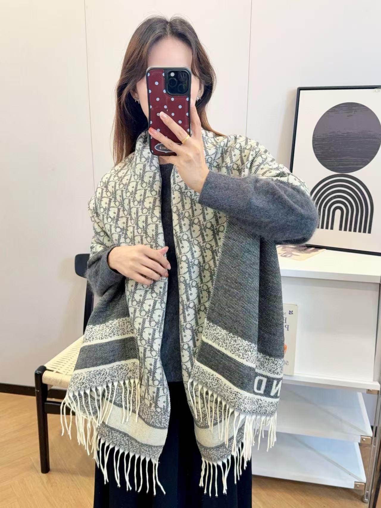 DI0R ジャカードタッセル カシミアスカーフ【50%割引+送料無料】