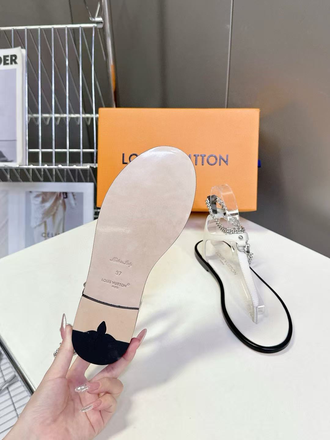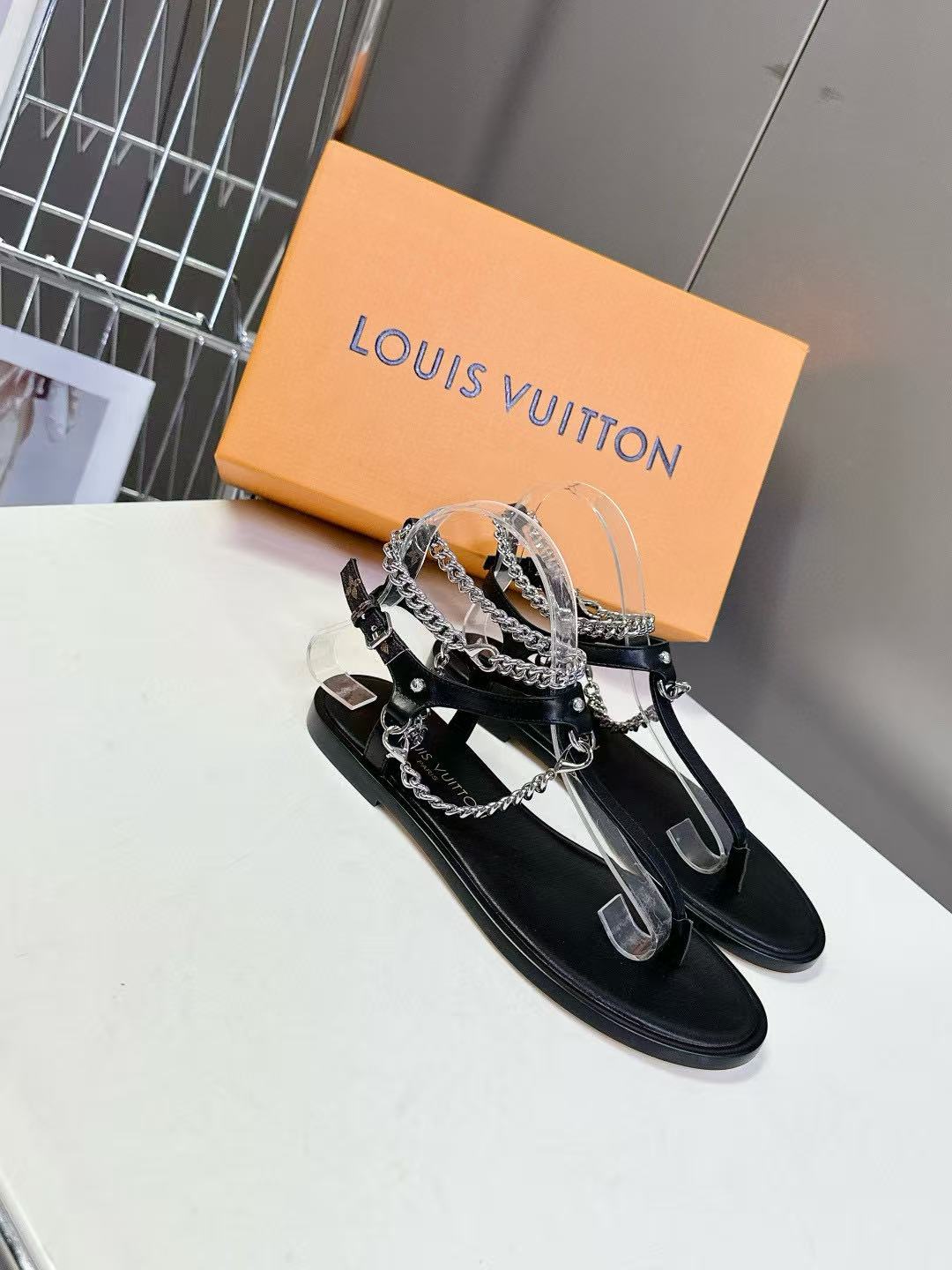 LVの高品質チェーンシープスキンフラットサンダル【50%割引+送料無料】