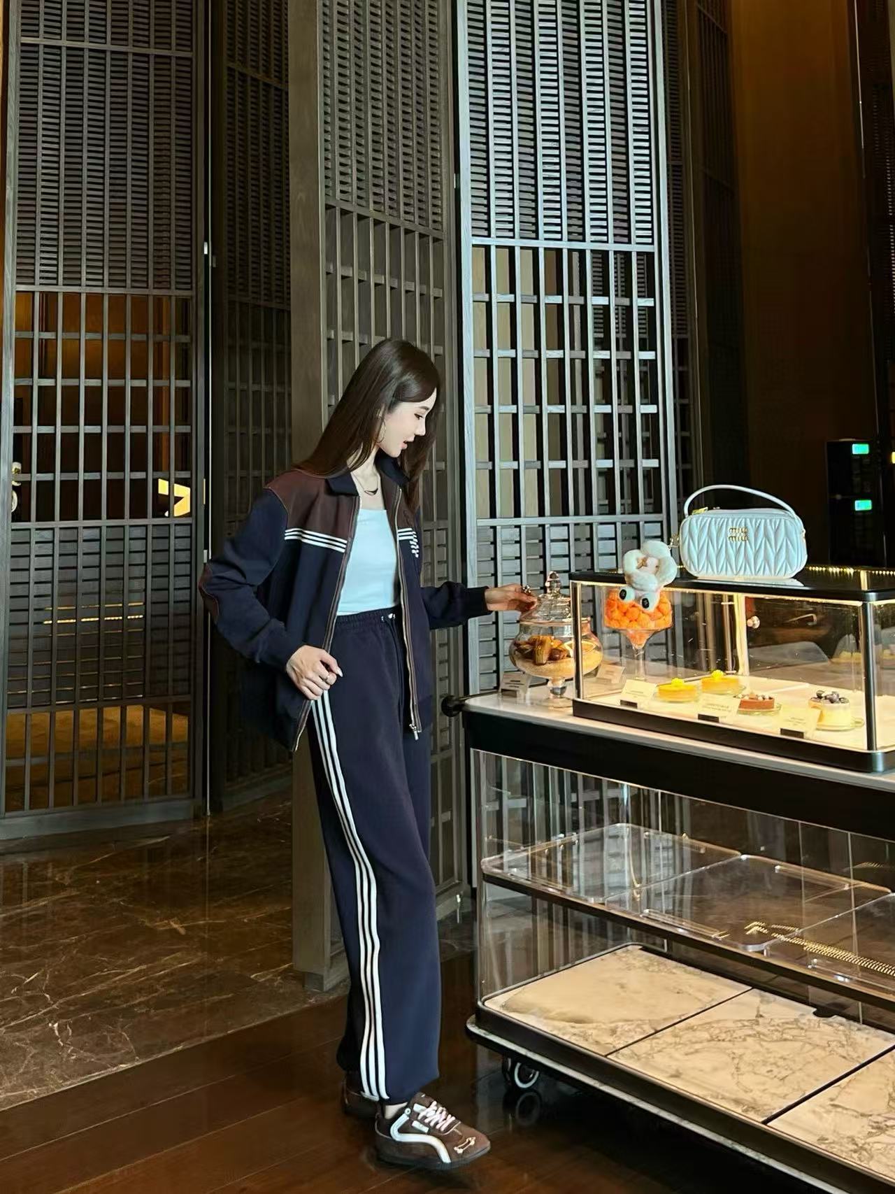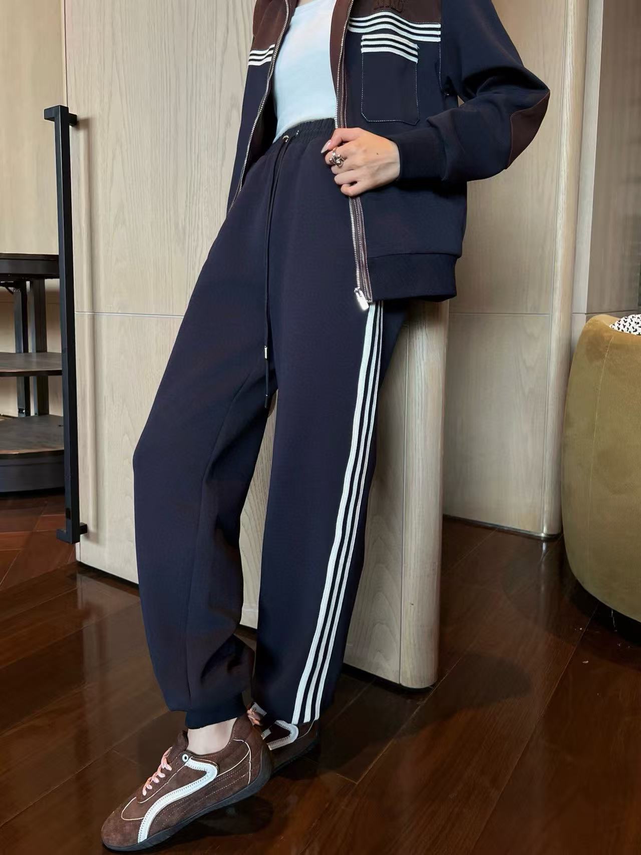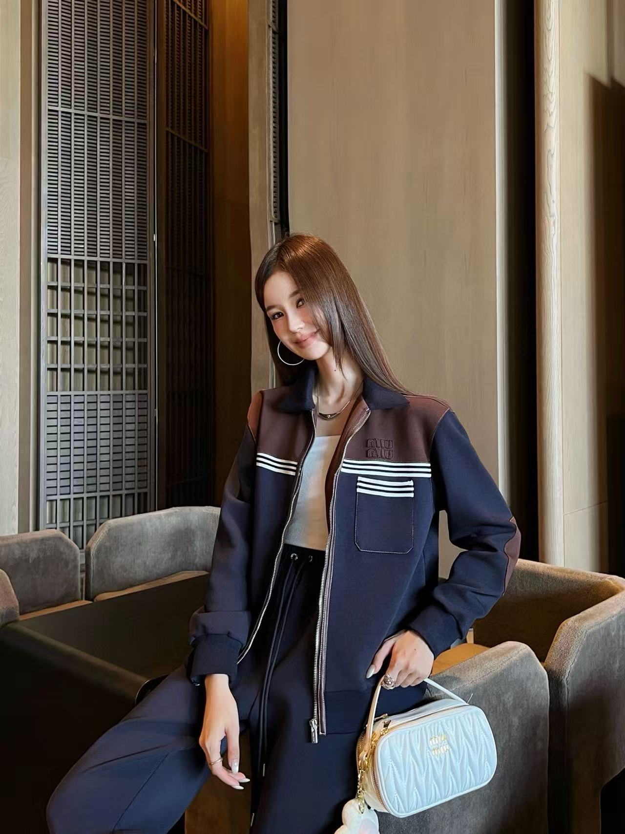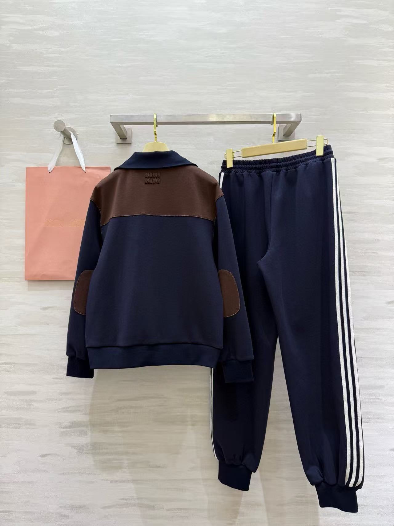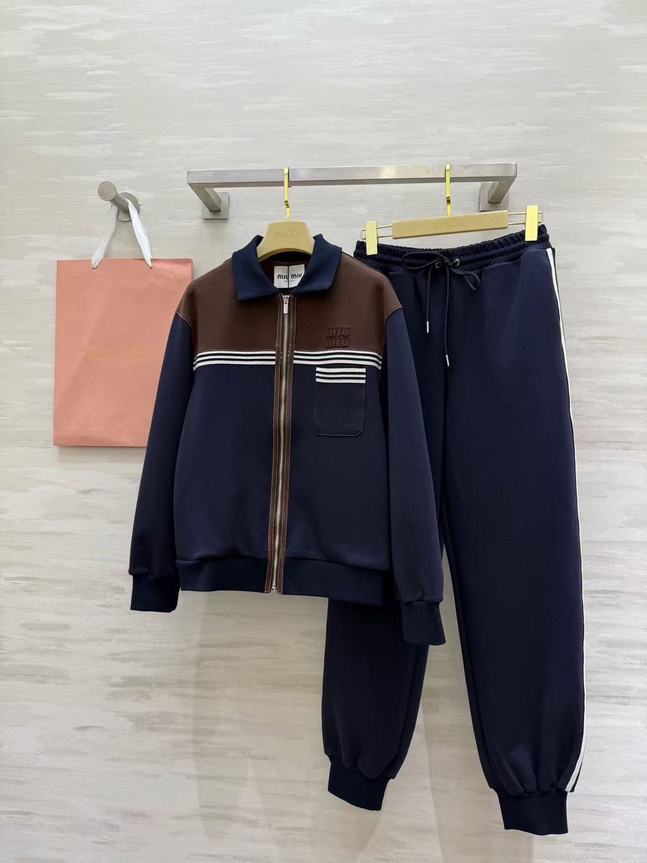 M1UM1U 襟付きジップアップジャケット+パンツ ツーピースセット【50%割引+送料無料】