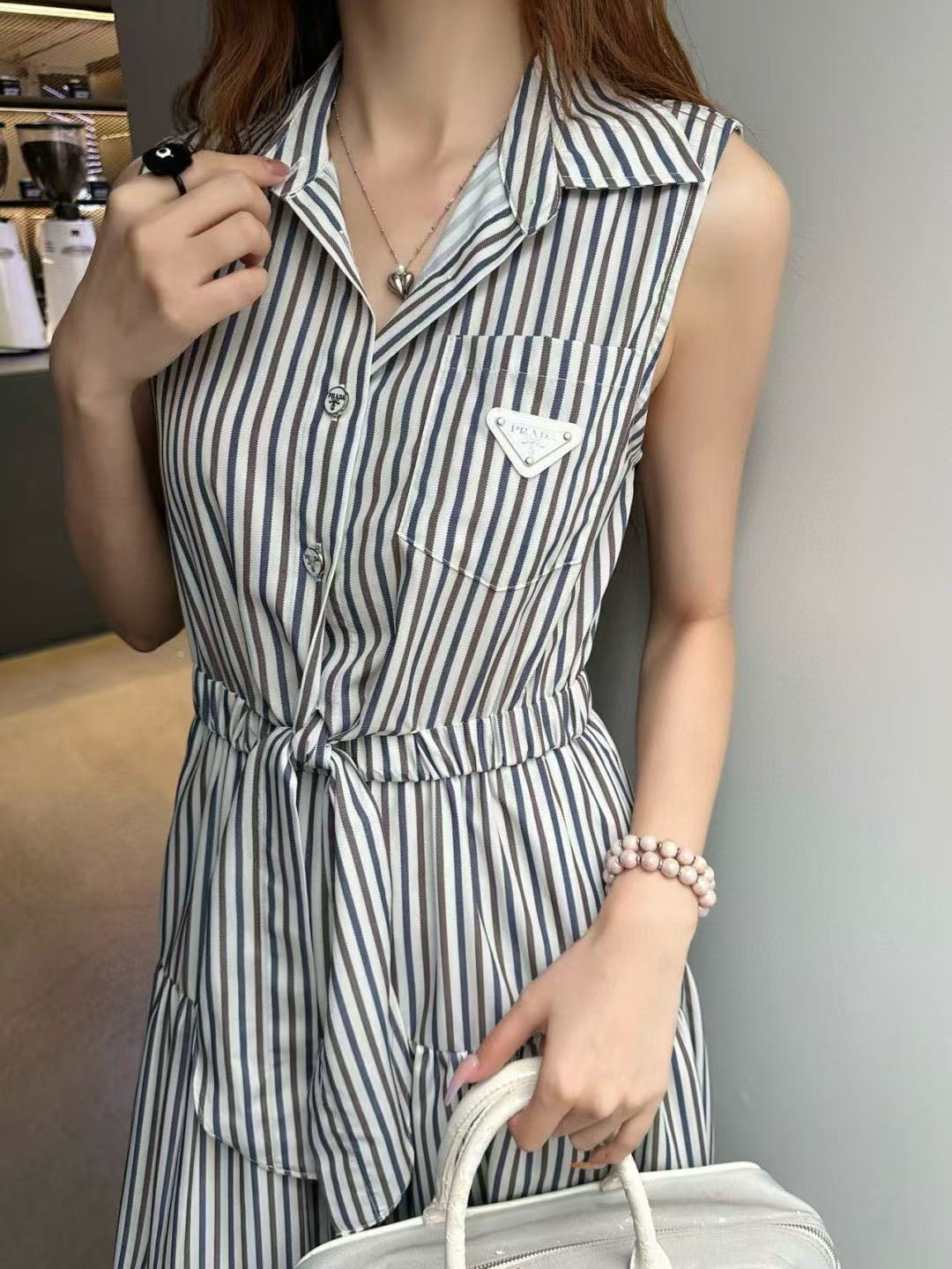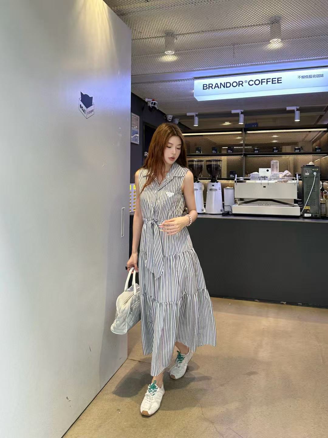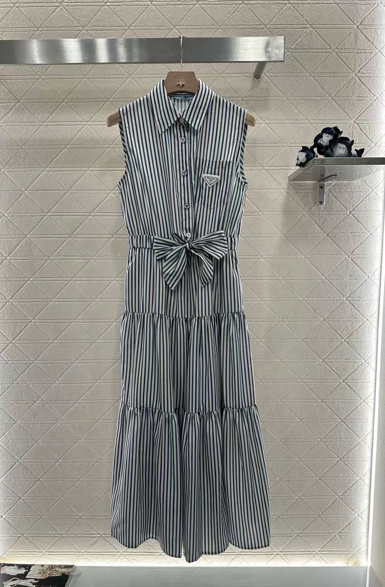 PR4DA ストライプ トライアングル ロゴ ノースリーブ ドレス【50%割引+送料無料】