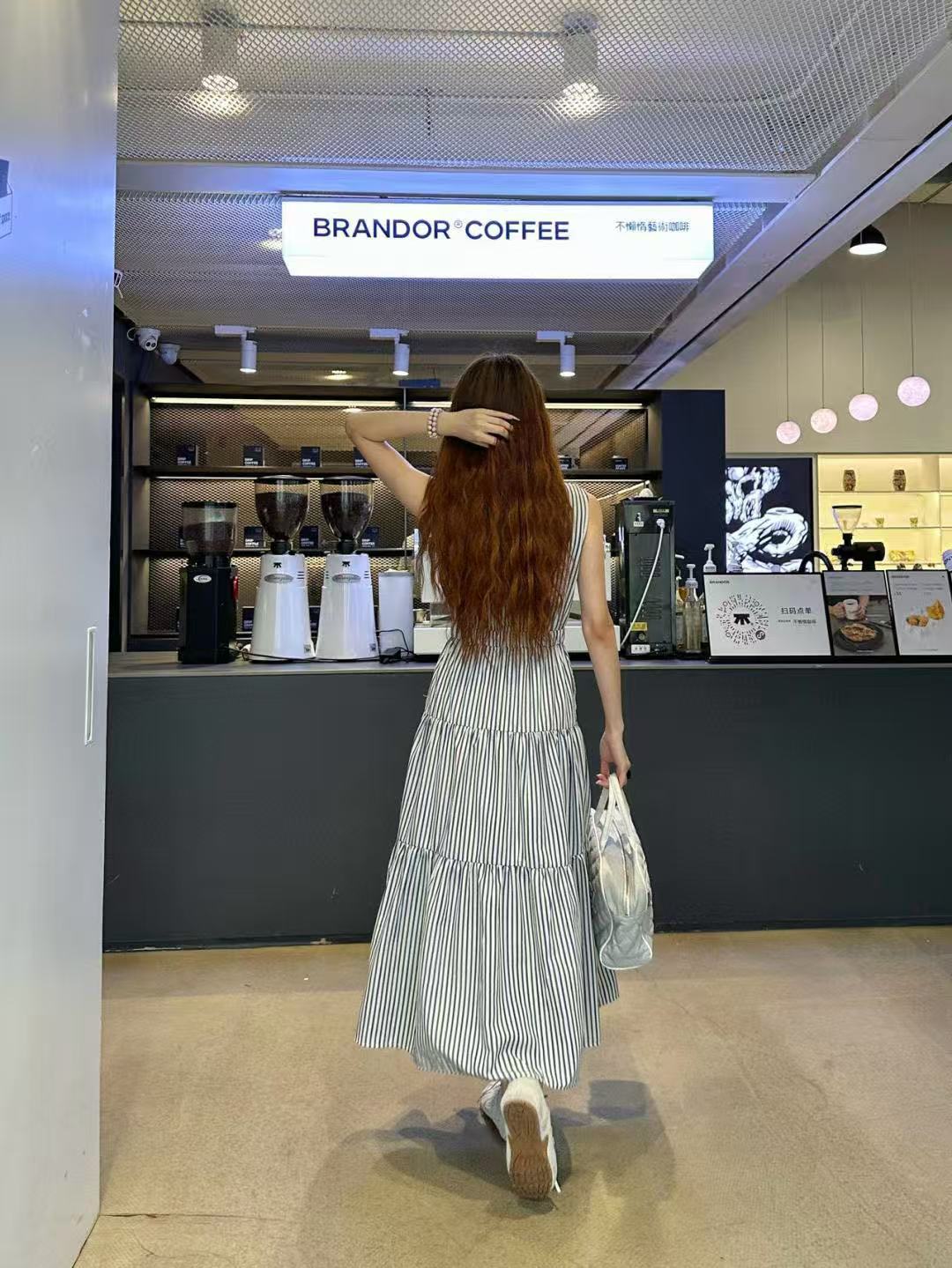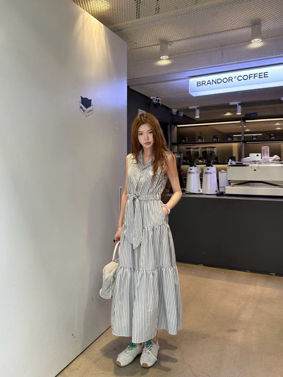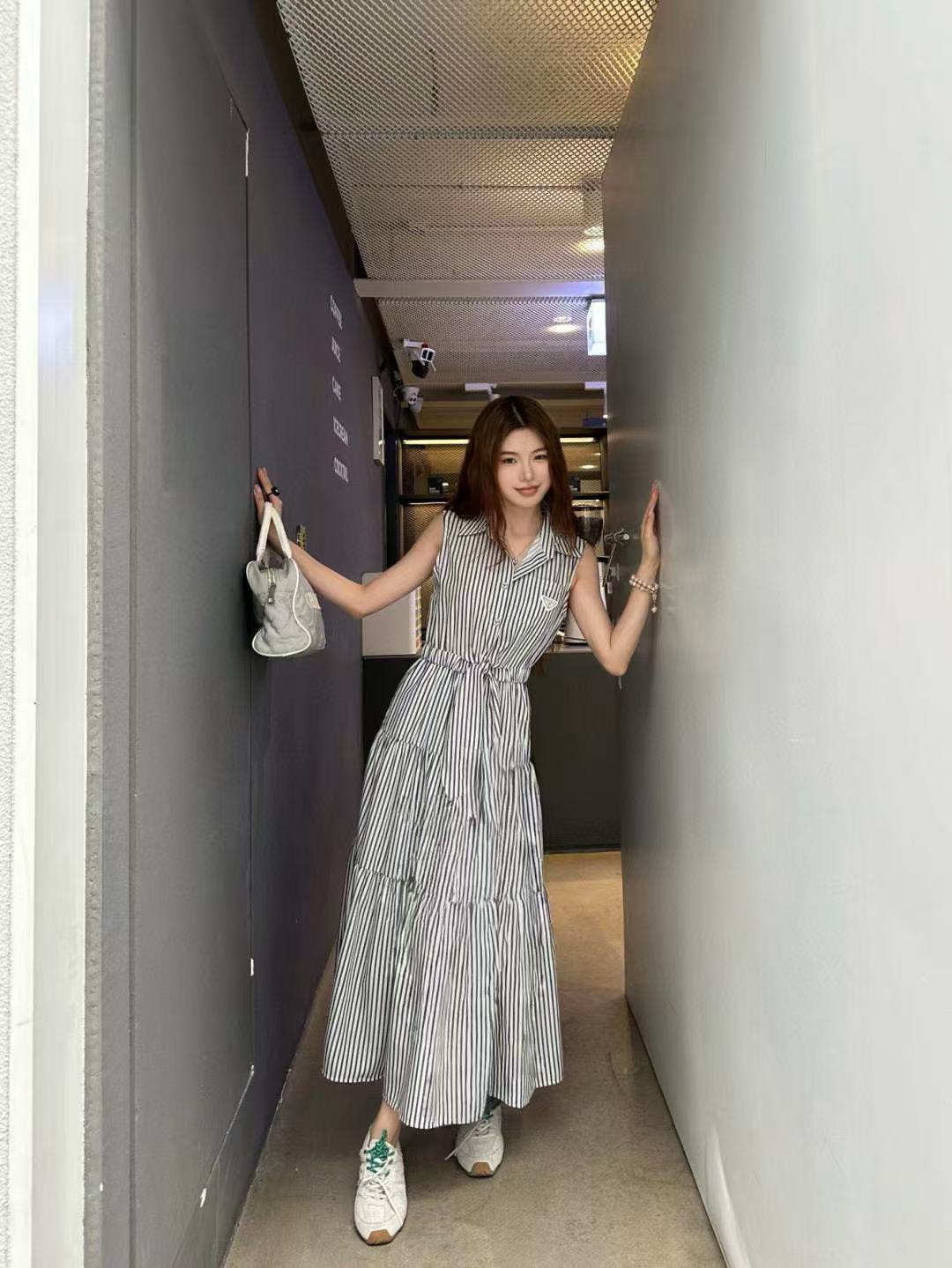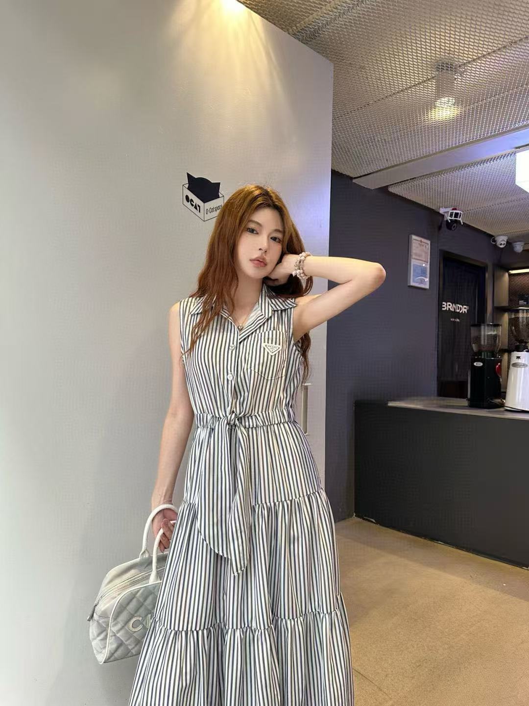 PR4DA ストライプ トライアングル ロゴ ノースリーブ ドレス【50%割引+送料無料】